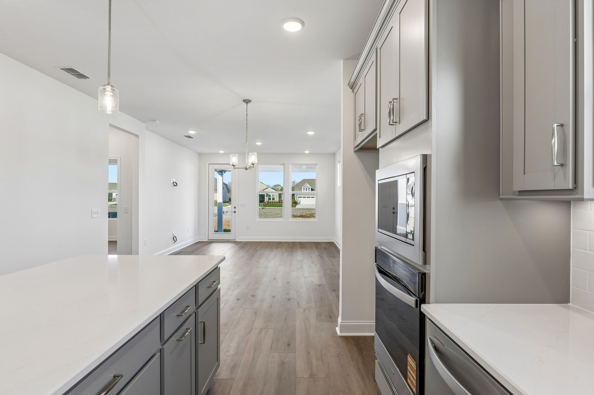 - Built-In Electric Oven, Cooktop, Dishwasher, Disposal, Microwave, Stainless Steel Appliance(s)