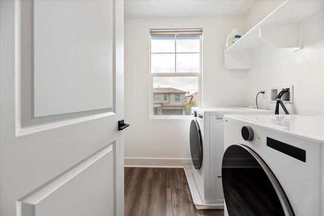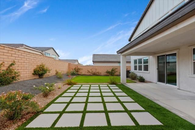 PRICE REDUCTION! Located in the gated community of Aguila at Terra Lago in North Indio, this upgraded newer-build home offers modern desert living with a flexible floor plan, energy-efficient features, and a peaceful setting on a quiet interior street.The layout includes a private office with French doors and a closet, conveniently located next to a full bathroom with shower, making it ideal as a guest bedroom, private workspace, or multi-generational living space. The kitchen features Shaker-style cabinetry, granite countertops, stainless steel appliances, and upgraded flooring throughout the main living areas. Custom window treatments include motorized solar shades for tall windows that never require recharging.Energy-efficient upgrades include fully paid solar panels with bird proofing and a tankless water heater for added convenience and long-term savings. The professionally landscaped backyard offers a covered patio, concrete hardscaping, lush grass, fruit trees, and proper drainage, creating an inviting outdoor space for relaxing or entertaining.Upstairs, a spacious loft provides flexible living space ideal for a media room, playroom, or secondary lounge. The primary suite features dual walk-in closets, dual vanities, a spa-style bath, and beautiful views of the Indio Hills from the primary bathroom window.A move-in-ready home offering modern comfort, efficiency, and flexible living in one of North Indio's desirable gated communities.