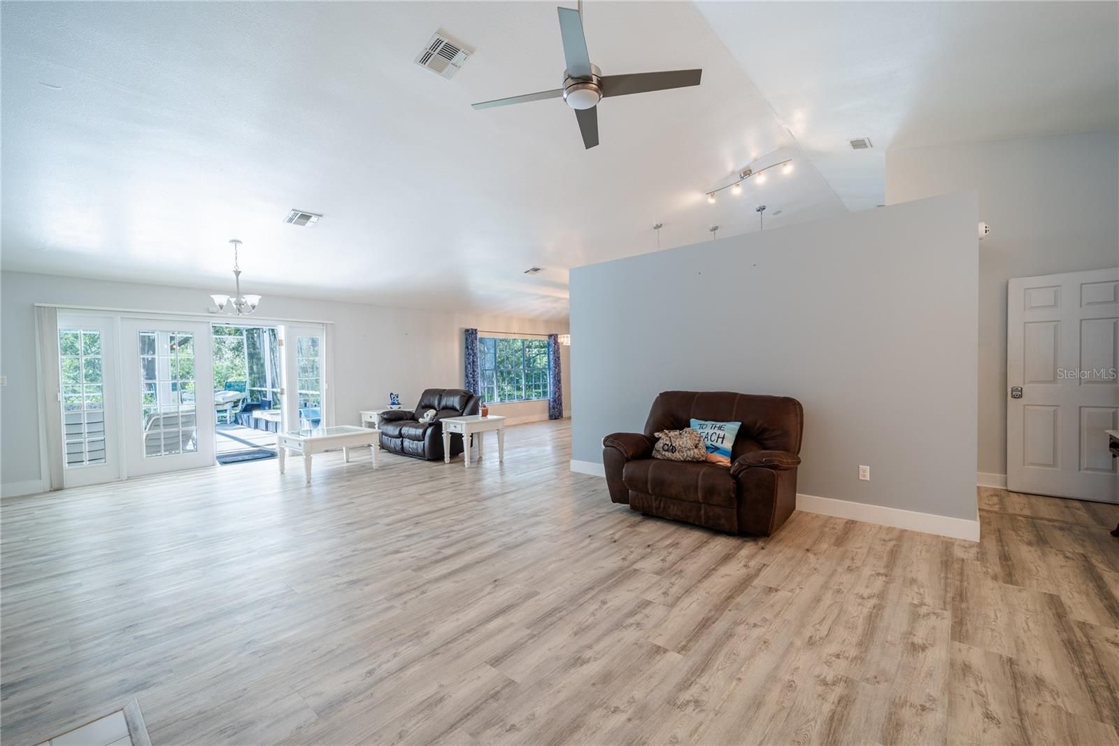 - Ceiling Fan(s), Eat-in Kitchen, High Ceilings, Kitchen/Family Room Combo, Living/Dining Room, Open Floorplan, Split Bedrooms, Walk-In Closet(s)