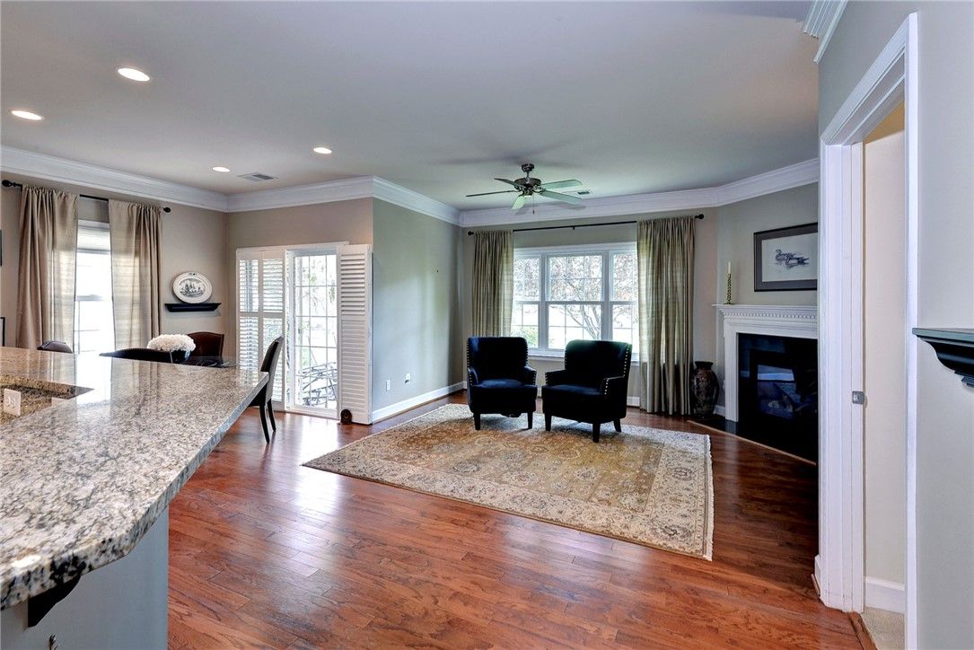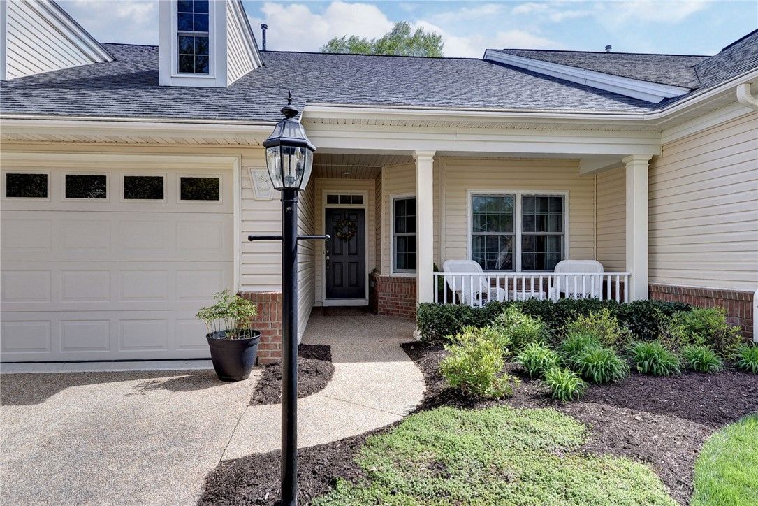 Welcome Home to this absolutely delightful "Abby" with loads of updates and charm! Perfectly designed and a convenient one level floor plan without an inch of wasted space. The foyer offers a nice buffer from main living area and with plenty of space for furniture accents & wall art. An upscale kitchen with warm tone cabinetry, generous granite counter space and Kitchen Aid appliances opens perfectly to the dining and family room areas. A flex area off the kitchen is perfect for an office or breakfast nook. Enjoy peaceful outdoor time on the covered front or back porch. Some of the extras: NEW Roof, Rheem HVAC (2023), Anderson Windows, Leaf Guard Gutters and more! You can't beat the location...close proximity to clubhouse, amenities, front gate and all that Williamsburg has to offer. Time to enjoy resort style living in this top rated 55+ community.