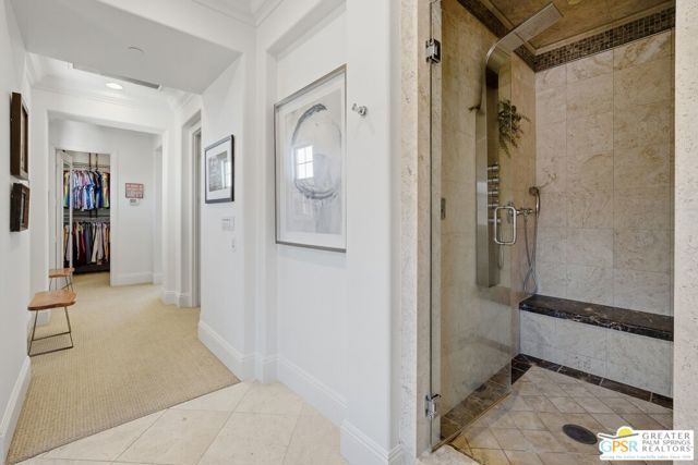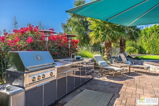 Amazing Escena private residence that fells like your own personal Resort! This 4 bedroom 4 bath gracious home sits on a lg corner lot with golf course and spectacular mountain views. The outdoor entertaining spaces truly reflect the Resort like feel with a beautiful pool and spa, built-in fire pit, outdoor kitchen center, lounging and dining spaces and your own putting green to sharpen your golf skills! All this with the stunning mountain views surrounding the space. Once inside you will feel the outdoors come into the home that is filled with natural light and almost every room affords the mountain views. Architectural details highlight the home that has been lovingly updated and cared for by the current owners. The home is one of the largest in Escena and the sq footage flows beautifully with comfortable living spaces highlighted by lots of storage, built-ins and designer details that will astound you. An attached Casita with a separate entrance is perfect for guests and the home has paid for solar and lush professional landscaping to enhance this stunning home. Let's not forget that your home sits above the 7th hole of the Nicklaus designed Escena Golf Course, so wake up for a round of golf and come home and live the Palm Springs dream in your own private Resort!