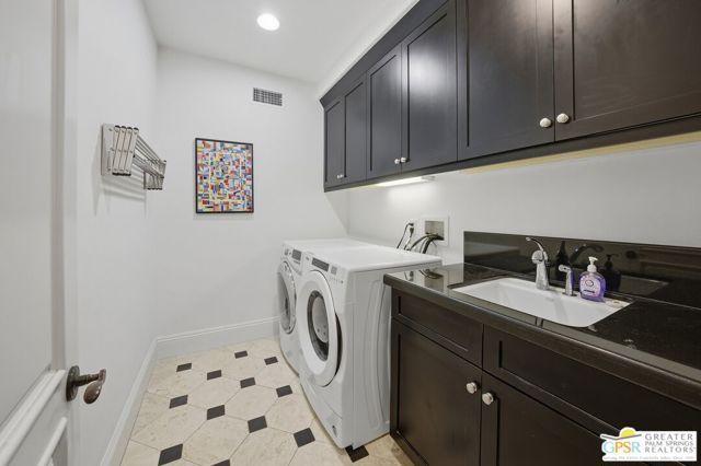 Amazing Escena private residence that fells like your own personal Resort! This 4 bedroom 4 bath gracious home sits on a lg corner lot with golf course and spectacular mountain views. The outdoor entertaining spaces truly reflect the Resort like feel with a beautiful pool and spa, built-in fire pit, outdoor bar-b-que, lounging and dining spaces and your own putting green to sharpen your golf skills! All this with the stunning mountain views surrounding the space. Once inside you will feel the outdoors come into the home that is filled with natural light and almost every room affords the mountain views. Architectural details highlight the home that has been lovingly updated and cared for by the current owners. The home is one of the largest in Escena and the sq footage flows beautifully with comfortable living spaces highlighted by lots of storage, built-ins and designer details that will astound you. An attached Casita with a separate entrance is perfect for guests and the home has paid for solar and lush professional landscaping to enhance this stunning home. Let's not forget that your home sits above the 7th hole of the Nicklaus designed Escena Golf Course, so wake up for a round of golf and come home and live the Palm Springs dream in your own private Resort!