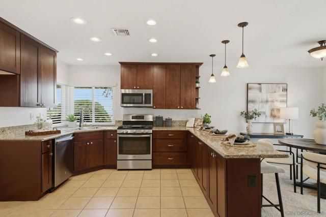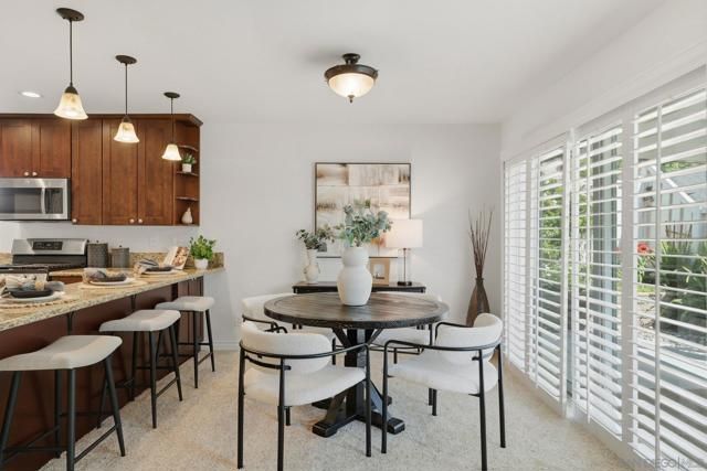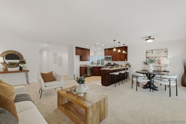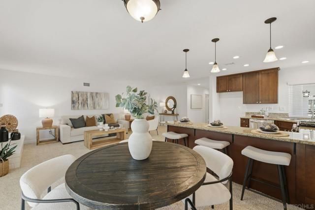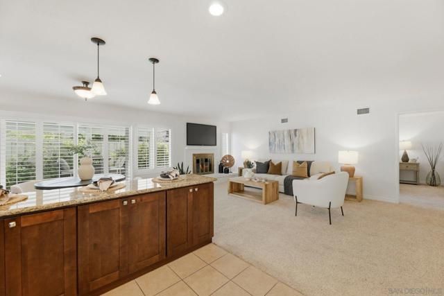 Welcome home to effortless living in this immaculate Oceanside single story! Located in the exceptional 55+ community of Pacifica, this low maintenance home lives spaciously and sits in a serene yet lifestyle-focused neighborhood. Immediately greeted by an inviting great room with a fireplace, open concept floor plan, and newer windows and slider dressed with shutters, this pristine 3 bedroom, 2 bathroom, 1417 ESF home's layout flows easily. At the heart of the home, the renovated kitchen with a large peninsula opens up to the living and dining areas, offering plenty of space for both daily life and entertaining. A slider seamlessly invites the indoors out to a covered patio and peaceful, private backyard with lush plants and vibrant flowers. The spacious primary suite features a walk-in closet and ample cabinetry in the attached bathroom, and both bathrooms match the tasteful design of the kitchen. With a 2-car garage, laundry, plentiful storage, updates throughout, and newer HVAC system, this home offers both comfort and ease. Located close to conveniences yet tucked away, Pacifica features amenities like a pool, spa, clubhouse, tennis courts, shuffle board, sauna, a park, social activities and more, all within a beautifully manicured community that makes life and homeownership simple with exterior maintenance and more covered by the HOA. Come experience a wonderful new dawn on Dawn Ln.