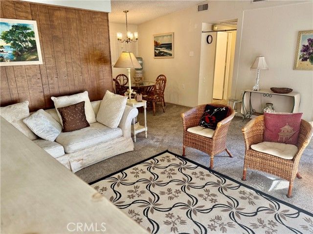 You will fall in LOVE with this stunning Home! This single level cottage style home offers an inviting layout with a wonderful versatility and a location designed for enjoyment. Large front patio offers exceptional outlook to a lush landscape, trees, sunsets & community. With an open floor plan, this home provides a seamless flow that makes everyday living & entertaining enjoyable! Filled with natural light, the great room flows into the kitchen, a welcoming space for both everyday moments and gatherings, conversation, and hosting, truly the heart of this home. Take pleasure in the dining area that looks out to the shared garden space filled with lush foliage and beautiful roses. Spacious living room with elegant carpeting thru out entry, hallway, living room, dining room and both bedrooms. Upgrades include a Stacked washer/dryer & Central heat & Air Conditioning. Enjoy all of the incredible amenities of the resort style living in Laguna Woods Village. 27-hole championship golf course, 9-hole executive par 3 courses, tennis, paddle tennis, pickle ball, lawn bowling, 2 fitness centers, 7 clubhouses, 5 swimming pools, equestrian center, horse stables, gardening, art studio, shuffleboard courts, craft and hobby workshops, game rooms, billiard rooms, world-class woodshop, over 200 clubs and organizations. Plus, free bus transportation around the community, nearby shopping, restaurants, and bus trips. Shopping, dining and community events are close by while the neighborhood's central position in Orange County provides easy access to coastal destination, business center, and top schools. Combing a sought-after location with a versatile floor plan and an inviting outdoor setting, this home stands out as one of the best values in the area. This Home is more than just a house, its an opportunity to create the lifestyle you have been envisioning in a community know for its comfort, convenience and charm. Beautiful Laguna Beach is 6 miles away!