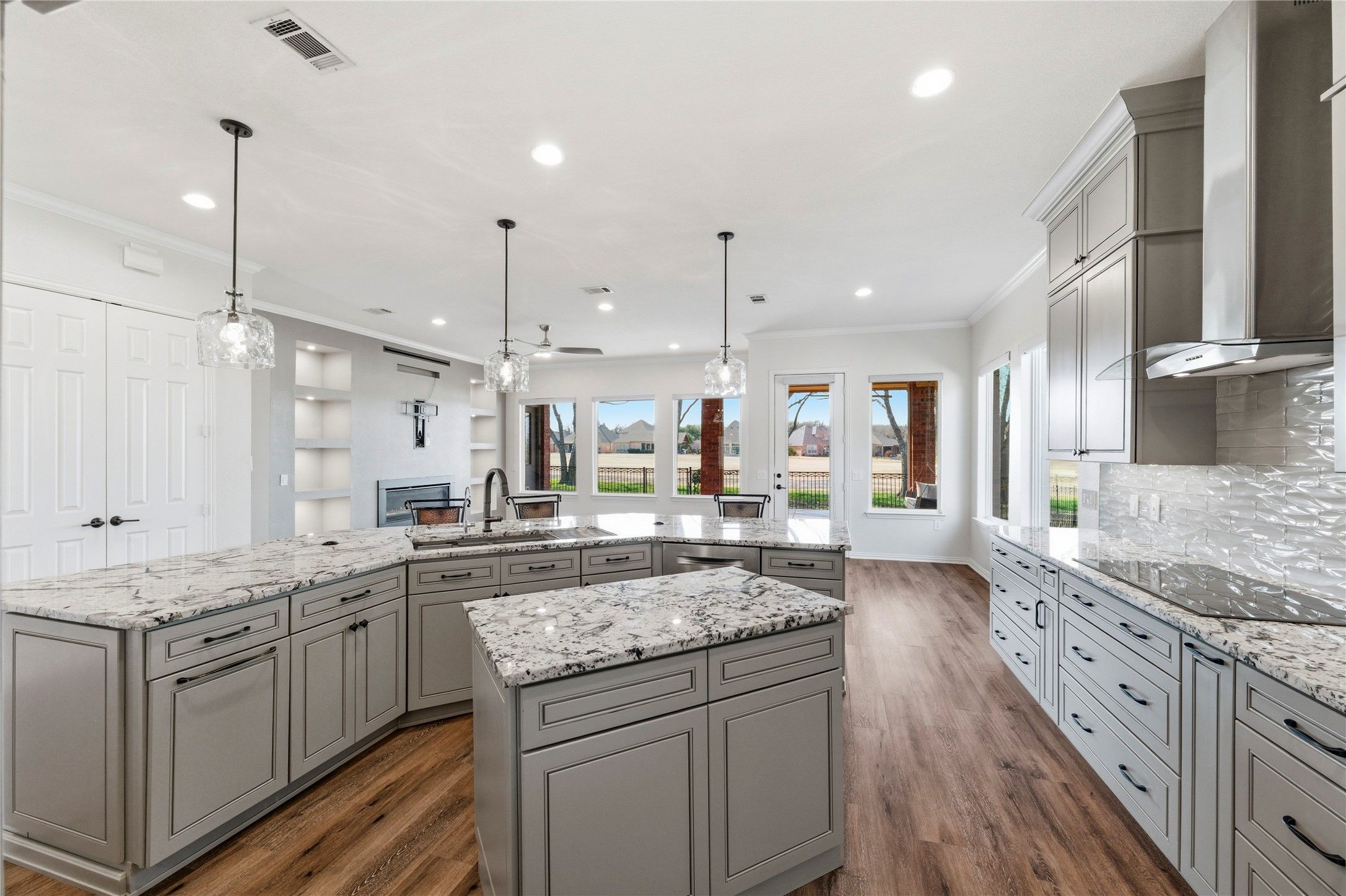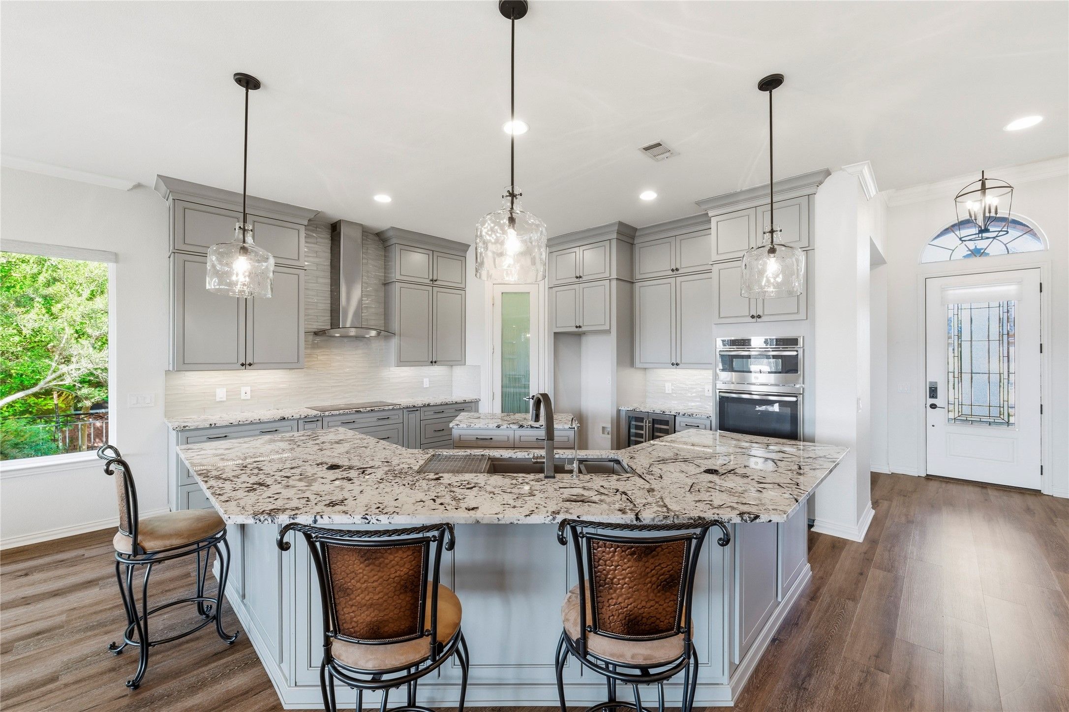 - Chandelier, Dry Bar, Decorative/Designer Lighting Fixtures, Granite Counters, High Speed Internet, Kitchen Island, Open Floorplan, Pantry, Cable TV, Wired for Data, Walk-In Closet(s), Wired for Sound