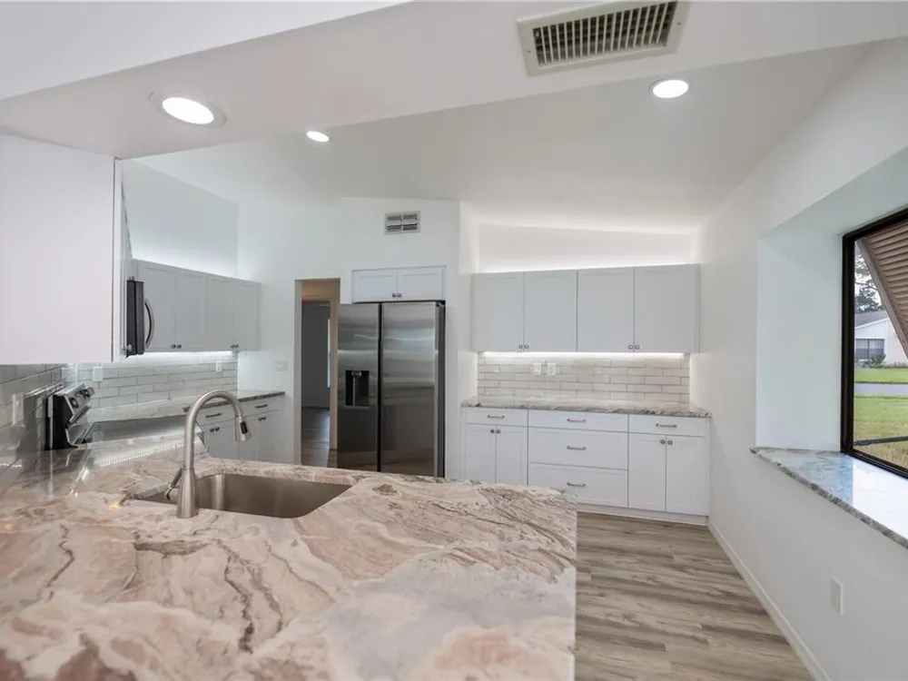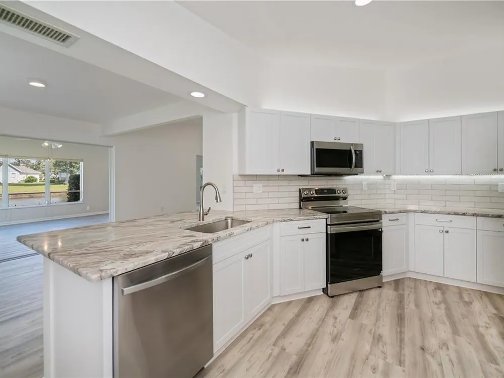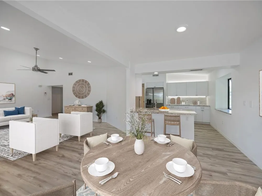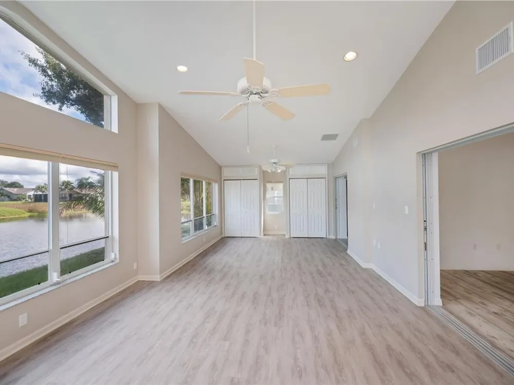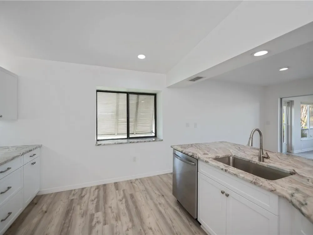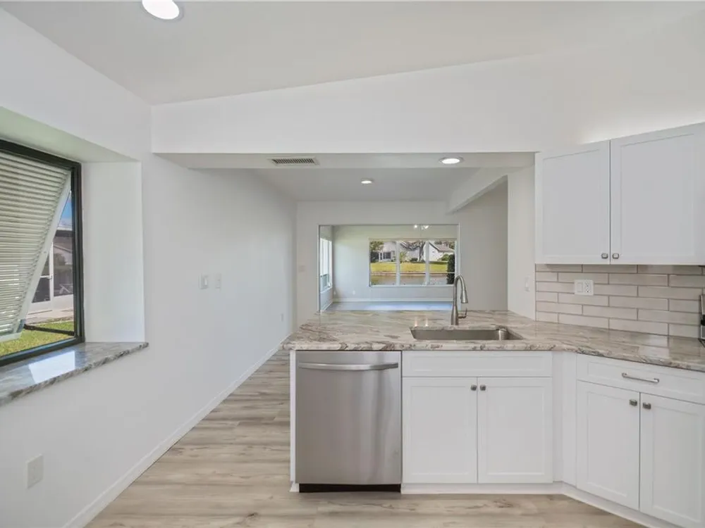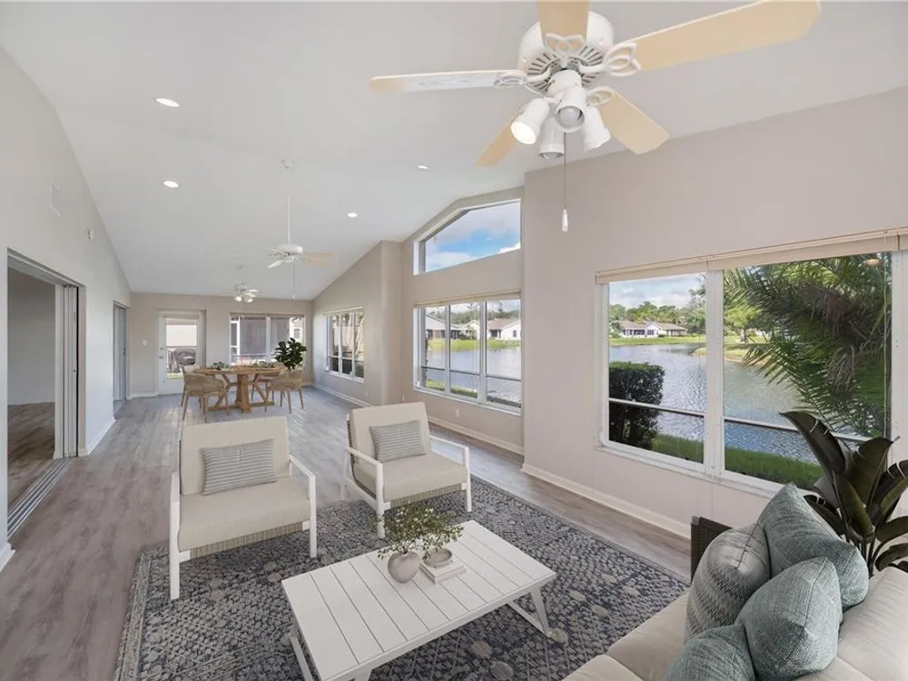 Welcome to Park Forest – Englewood’s Premier 55+ Gated Community! Step into this impeccably updated and move-in ready home offering an impressive 2,309 square feet of living space with breathtaking 180° lake views from the moment you walk through the door. Designed for comfort, style, and easy living, this residence perfectly blends modern updates with tranquil Florida charm. Inside, you’ll find luxury 22mil lifeproof rigid-core coastal vinyl plank flooring, fresh paint inside and out, and vaulted ceilings that enhance the home’s airy, open feel. The updated kitchen is a true showstopper featuring granite countertops, subway tile backsplash, soft-close cabinetry with upper and lower lighting, walk-in pantry, recessed lighting, and new stainless steel appliances. Even the kitchen sink offers stunning lake views—making every chore a pleasure. The spacious Florida room (41’ x 15’) is an ideal retreat for year-round enjoyment. Relax and unwind while taking in the serene lakefront scenery—osprey, ducks, turtles, herons and many more, bring the outdoors to life in your own backyard sanctuary. The master bedroom suite offers private access to the Florida room through pocket sliders, a large walk-in closet, and a beautifully updated en-suite bath with a modern barn door, dual sinks, granite counters, a second walk-in closet and a stylishly tiled shower. The guest bedrooms and bathroom have also been tastefully remodeled, ensuring every inch of this home reflects quality and care. Recent updates include a NEW ROOF (2022), new garage door (2025), and an indoor laundry closet for added convenience. At Park Forest, you’ll enjoy an active, maintenance-free lifestyle with a wide range of amenities and activities. Residents can participate in cards, crafts, coffee hours, bocce, billiards, water aerobics, Texas Hold ’Em, and more. The community offers five pickleball courts (one convertible to tennis), a clubhouse with pool and hot tub, shuffleboard, gazebo, and craft room—all designed to foster connection and fun. Your HOA fee covers lawn care, irrigation, roof replacement, and exterior painting, ensuring you spend less time on maintenance and more time enjoying life. The community is pet-friendly (up to two small pets, 30 lbs each) and golf cart friendly with 120-day minimum rental restrictions. Perfectly situated just 2 minutes from Dearborn Street, you’re moments away from local shops, restaurants, and the seasonal Thursday Farmer’s Market. Englewood Beach is only 7 minutes away, Manasota Beach is just 13 minutes, and Publix is right around the corner. Experience the very best of Florida living—modern comfort, lakefront tranquility, and a vibrant community lifestyle await you at Park Forest. Don’t wait—schedule your private showing today and see why this home is the perfect fit for your next chapter!