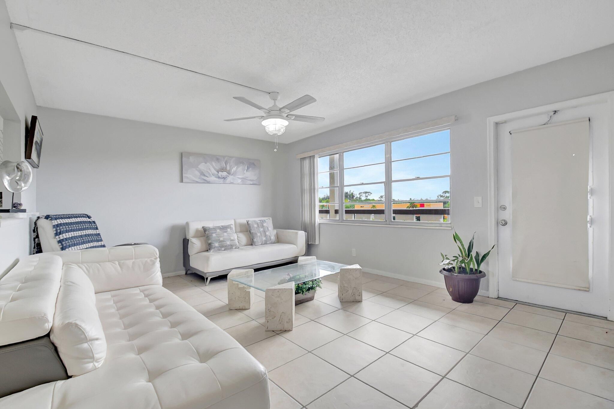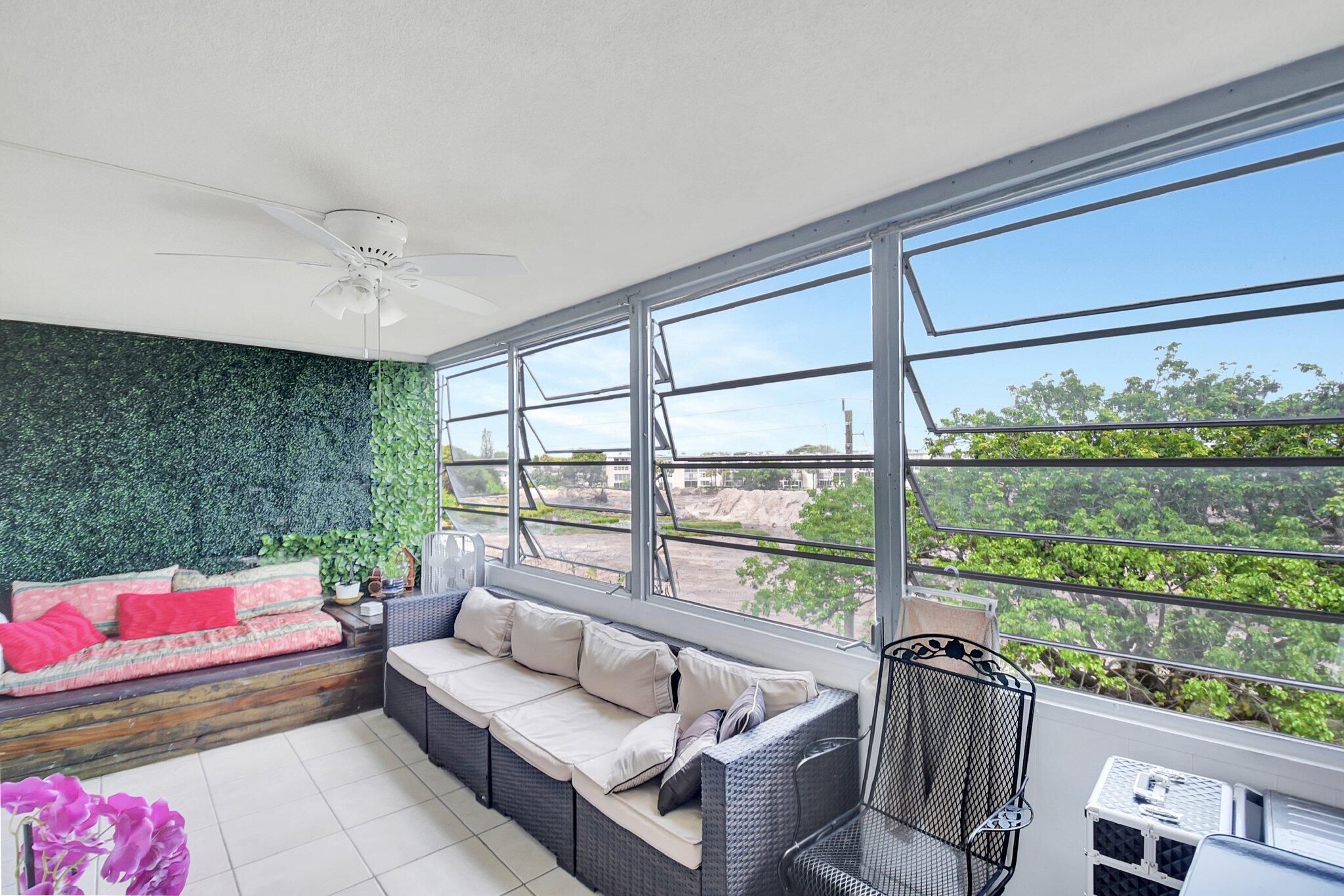 Charming 1-bedroom, 1.5-bath condo located on the 4th floor in the highly desirable Century Village community in West Palm Beach. Offering 792 sq ft of total space (702 sq ft under air), this bright and airy unit features tile flooring throughout and a fully renovated kitchen with granite countertops, stylish tiled backsplash, upgraded cabinetry, and stainless steel appliances. The enclosed porch provides a versatile space that can serve as a cozy guest room or a relaxing sitting area with views of the lush, tree-lined surroundings. The building is conveniently situated right next to the pool, with two laundry rooms on each floor and a trash chute for added convenience. Unit owners must be a minimum 55 years of age. A minimum monthly income of $2,200 for a single resident and $2,350 per couple is required for residency. No rentals. No pets (To qualify for an emotional support animal, an applicant must prove that they have a disability related need for a support animal, by submitting an ESA recommendation letter from a licensed health care. Century Village offers an incredible range of amenities including live shows, dancing, bingo, sailing, fitness classes, an indoor heated pool, resistance pool, yoga and weight rooms, woodworking shop, billiards, tennis, shuffleboard, bocce ball, and more. A community courtesy bus is also available to take you to nearby destinations. Please note: Rentals are not permitted in this building. Seller financing is available.