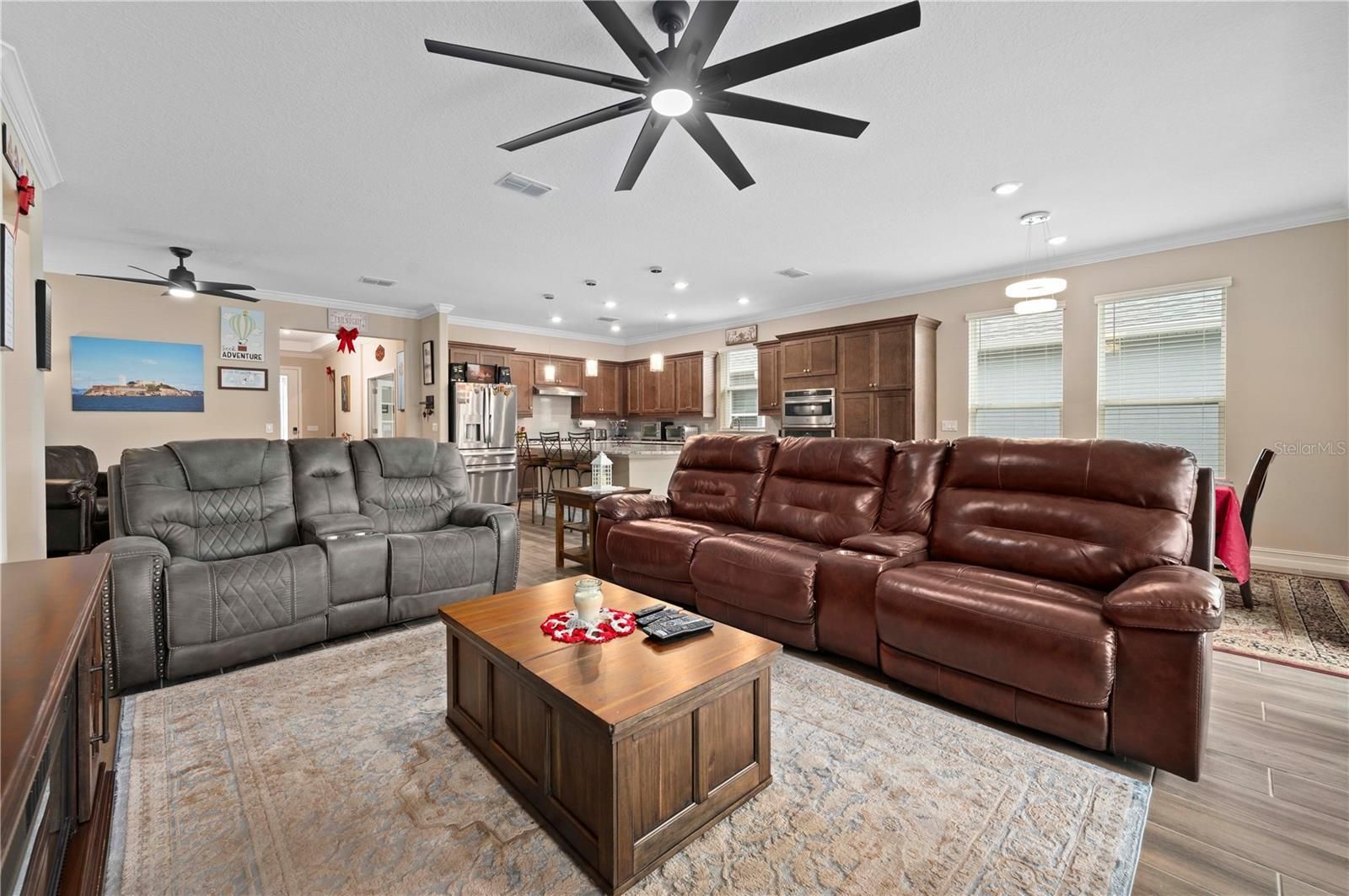 - Ceiling Fan(s), High Ceilings, Kitchen/Family Room Combo, Open Floorplan, Solid Surface Counters, Solid-Wood Cabinets, Stone Counters, Thermostat, Walk-In Closet(s)