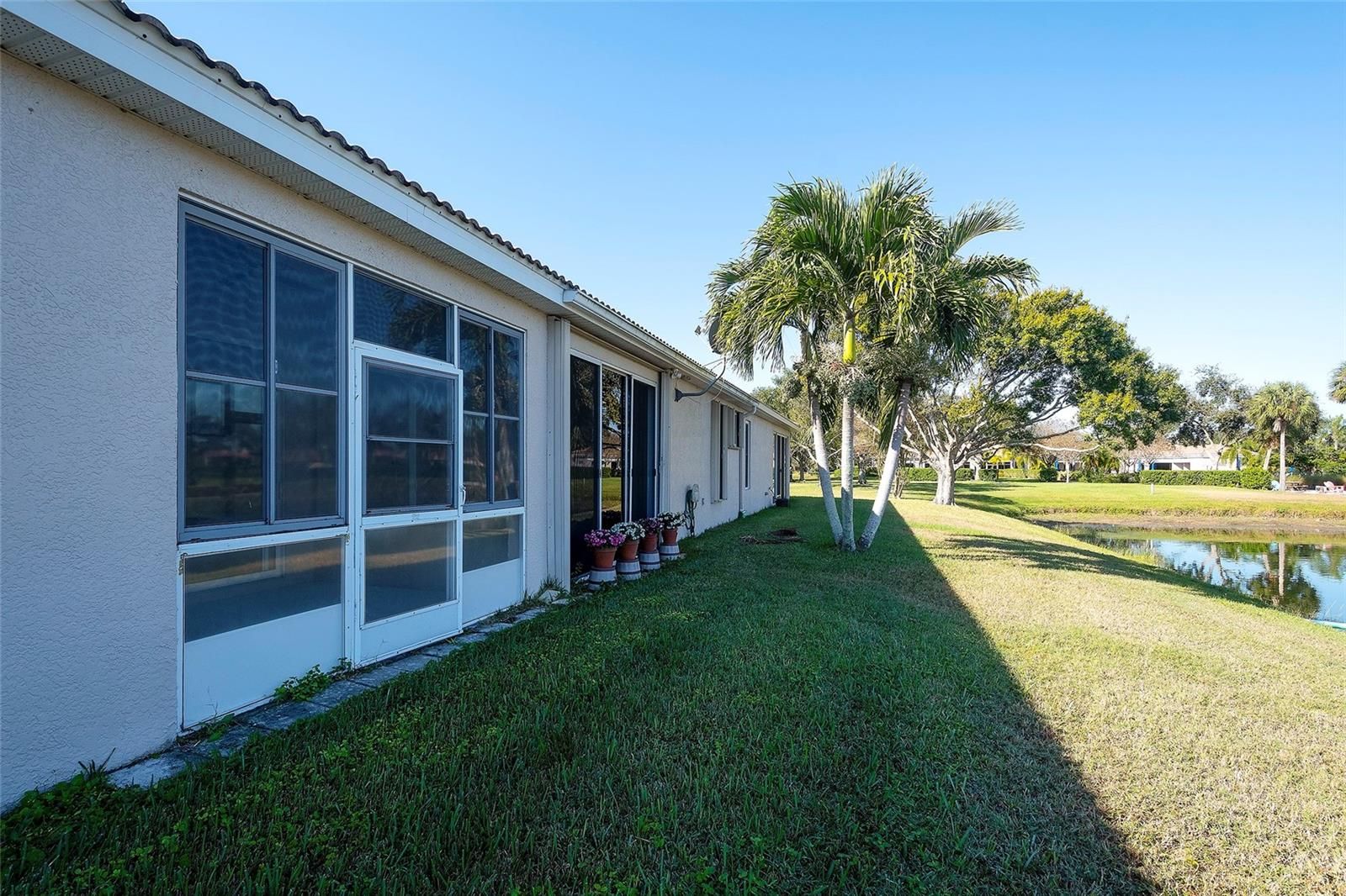 ESTATE OPPORTUNITY>>>>>NEW ROOF ( $30,000) seller will complete or escrow for closing so relax and know you will be assured of this comfort for years to come! ( current roof does not leak but because this is an attached villa, all roofs will be replaced together per community covenants) This 2 bedroom, 2 bath, PLUS den, with screened lanai and tranquil lake view is located in the gated community of Lakeridge Falls. It's a must see and must have! Priced to sell, neat and clean, bring your personal style and make it your own! AC (2023) under warranty, for added peace of mind. Primary bedroom features lanai access, large walk in closet with custom shelving and full en-suite. The guest bedroom and den are split plan and have direct access to the remodeled guest bath featuring a newly installed Kohler walk in bath ( $24,000) that can be a real life saver, if needed. Home is light and bright with a lovely view. Kitchen features Whirlpool appliances, wood cabinetry, breakfast bar and easy access to your two car garage. Storage cabinets and extended length in garage allows for all your "extras". Lakeridge Falls is a 55+ ,guard gated community, that is beautifully landscaped, neat & clean. This villa is situated close to the resident exit so you will enjoy the easy in and out for everyday errands. Social activities to keep your dance card full include enjoying the updated clubhouse, billiards, bocce, card games, fitness, resort pool & spa, walking trails around lush landscaped paths and tranquil community lakes. Plus it's own sandy beach that is just steps away from your front door. Very conveniently located to University Parkway, with and abundance of shopping, restaurants, the new Mote Aquarium, I 75 and SRQ airport. This is convenience, price and location all in one. Don't miss out on this opportunity! Come see it today!