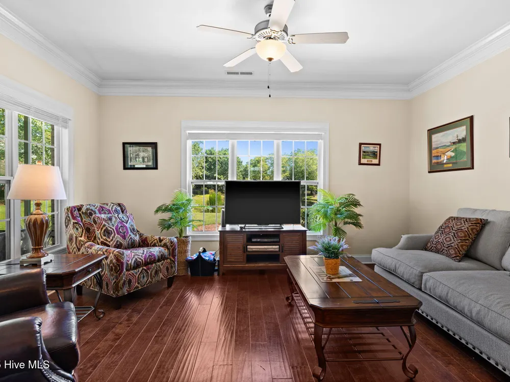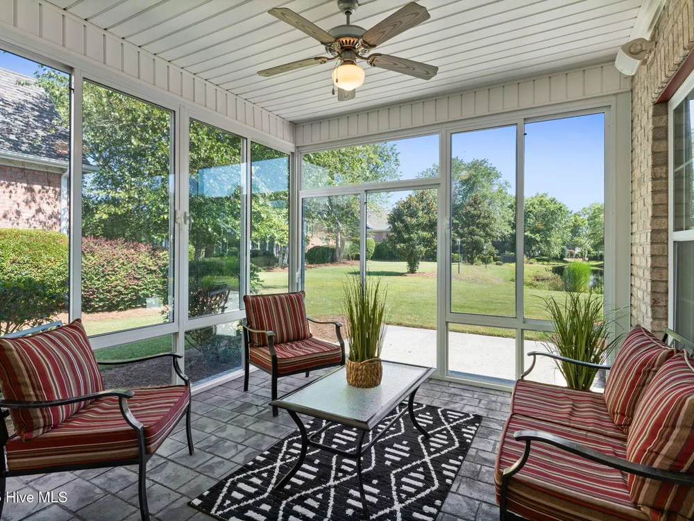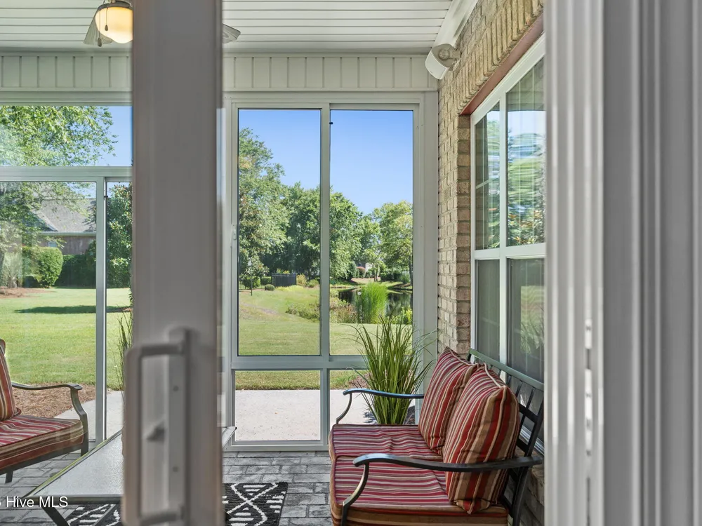 The all-brick former model home in the Regency Lakes section of the Player's Club offers peaceful pond views and luxurious coastal living. The open floor plan features a spacious living room with fireplace and built-ins, a stylish kitchen with stainless steel appliances, and a sunroom, patio and firepit--all with tranquil water views. Plantation shutters add timeless charm throughout.Upstairs, a large bonus room/4th bedroom includes a full bath and closet. Enjoy walking-distance access to the Player's Club pool, tennis, croquet, and more.St. James Plantation offers 81 holes of golf, four clubhouses, multiple restaurants, resort pools, tennis, pickleball, marina, kayak launch, and a private beach club on Oak Island.