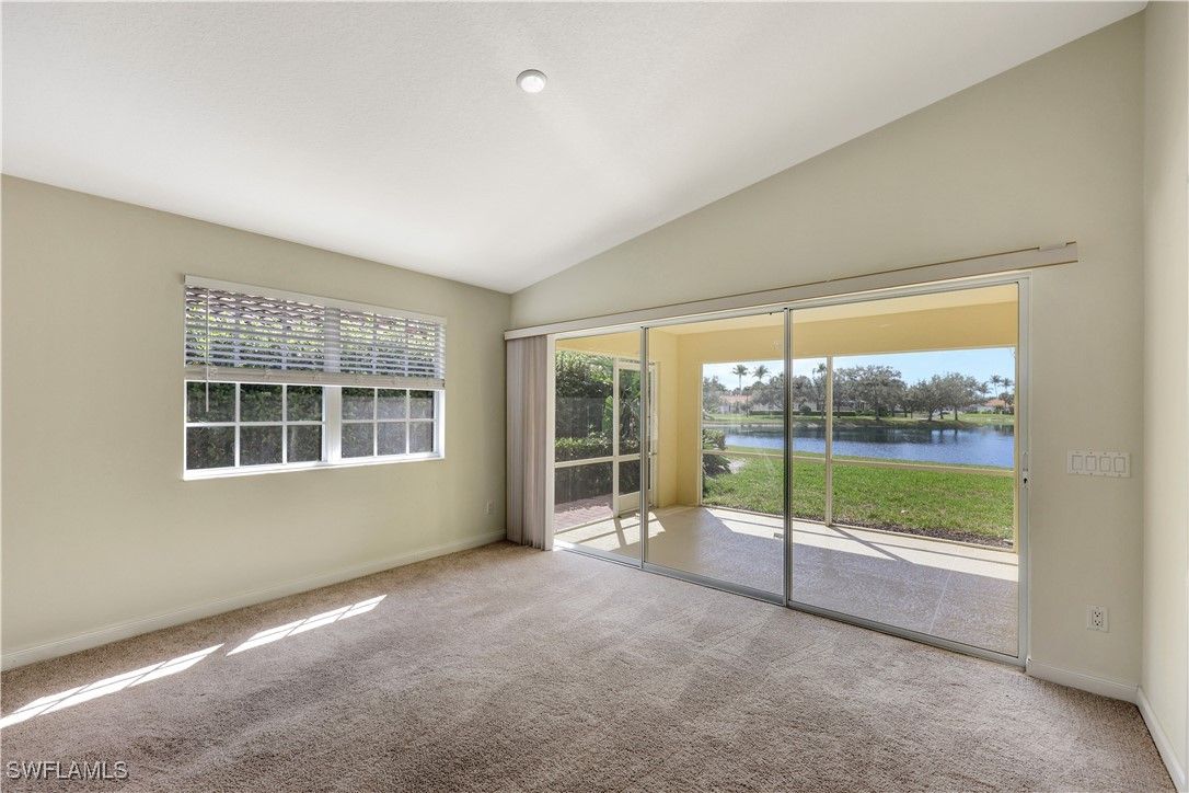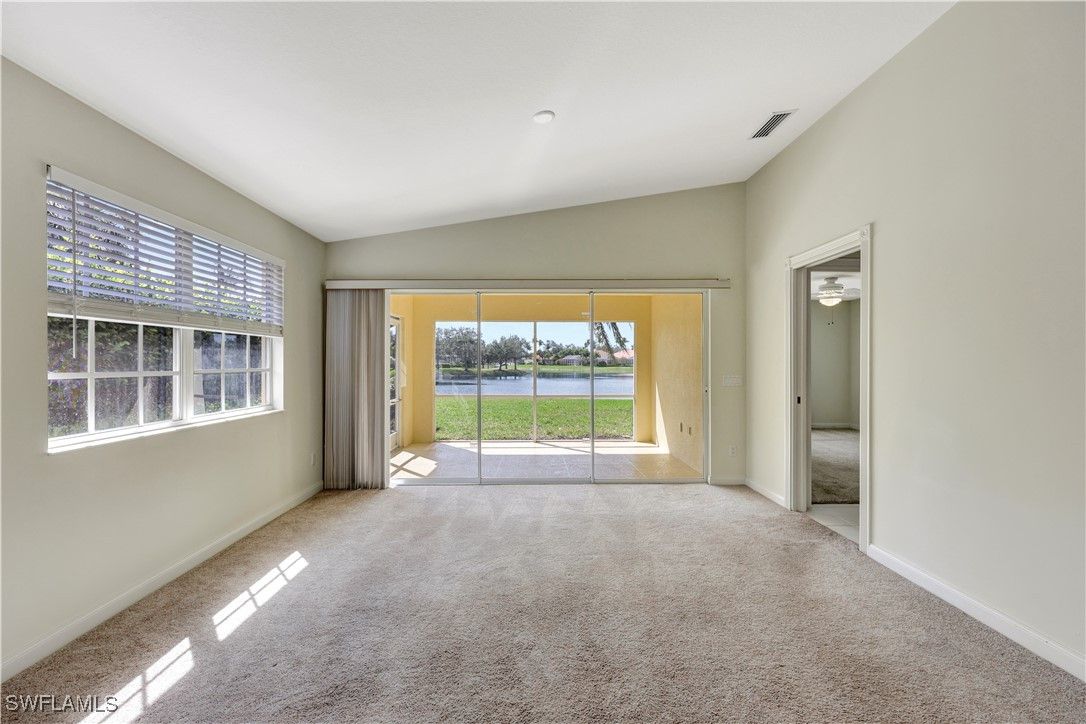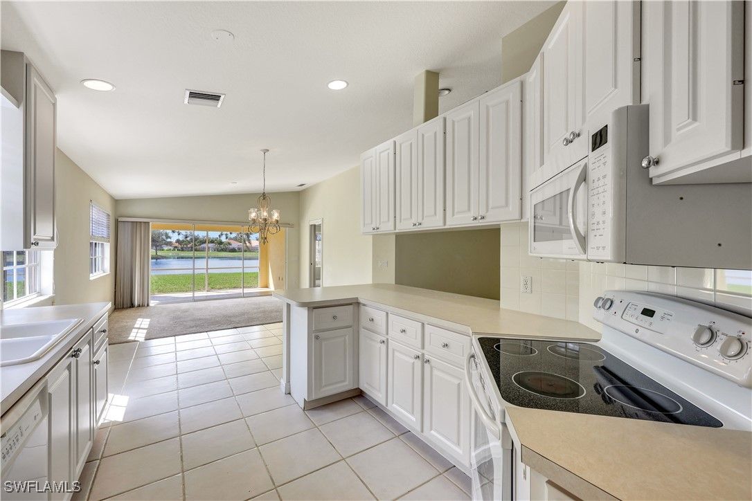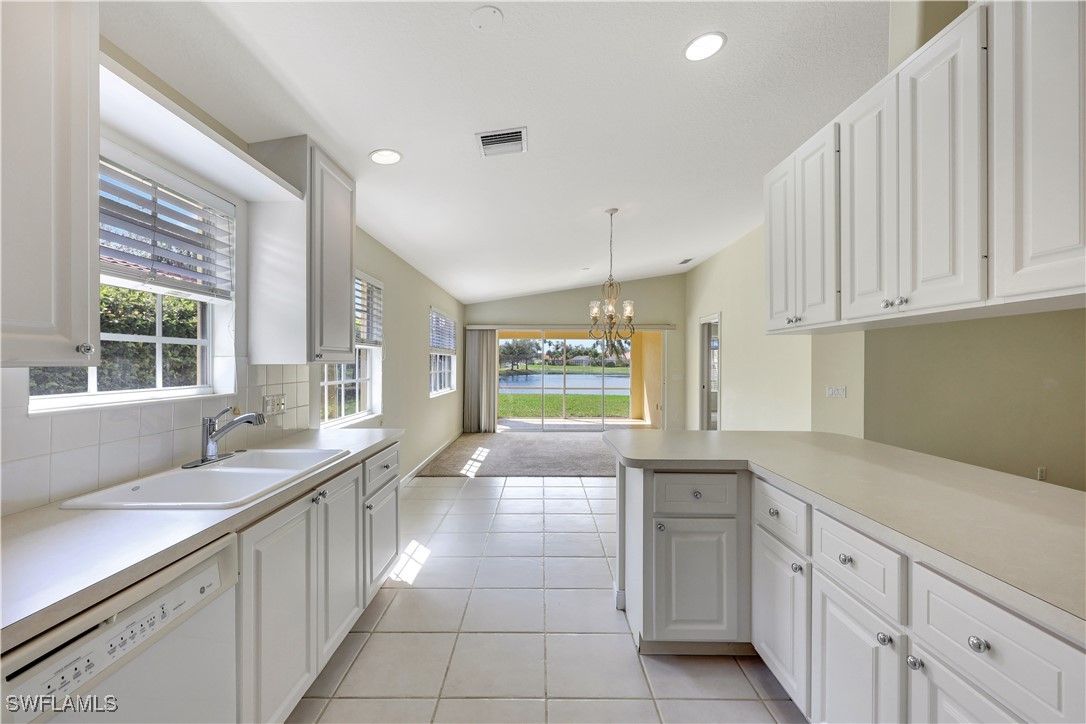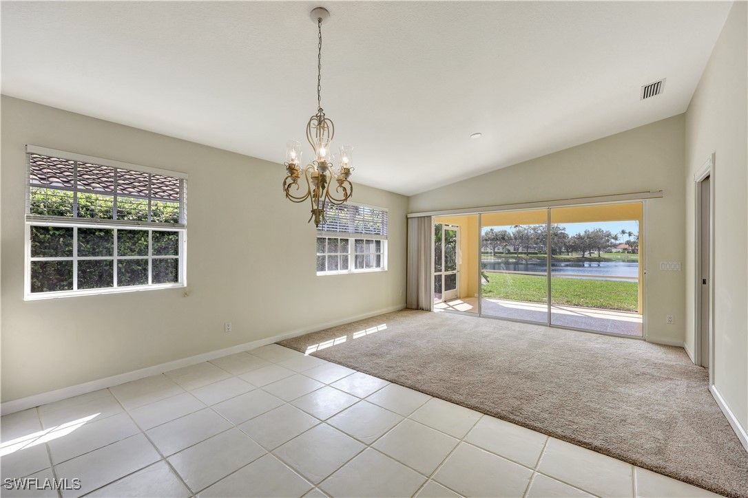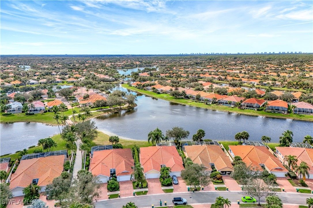 Sunshine beams into the kitchen of this 2 Bedroom and 2 Bath home located just a short walk over a few bridges to the Towncenter with tons of Amenities including 2 Pools. This popular Open Floor Plan Villa with an attached 2 Car Garage is ready for you to move in and add your personal touch! This easy-care Villa has tranquil lake and bridge views. The popular Open concept Kitchen is perfect for entertaining, and the screened porch is where you want to be to watch our glorious Naples sunset over the tranquil lake. Roof replaced in 2022, New A/C and Water Heater in 2023. LOW FEES include Amenities Galore, Landscape Care and HDTV and High-Speed Internet. Relax and enjoy the Naples lifestyle, come and see for yourself what Resort Living is like.