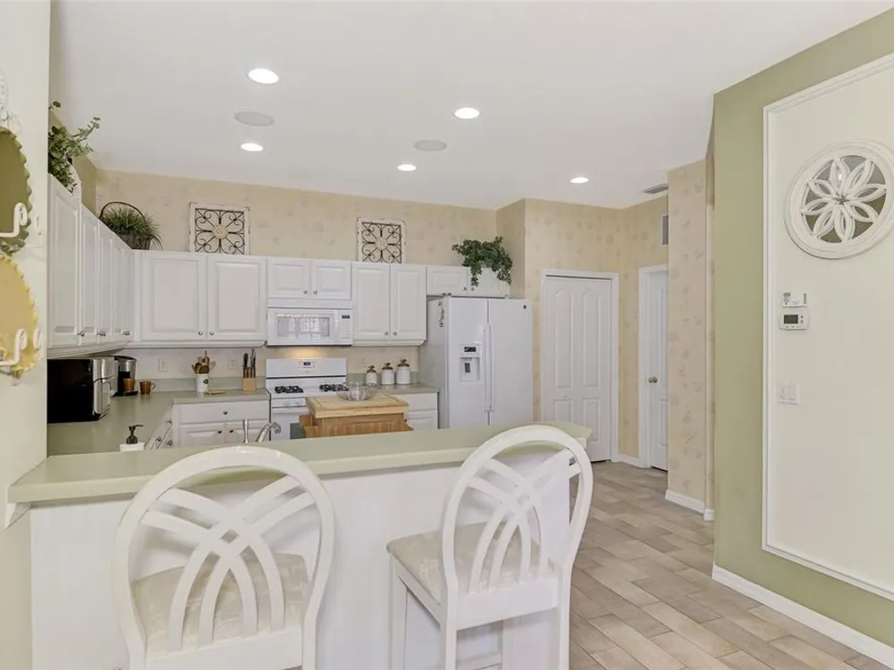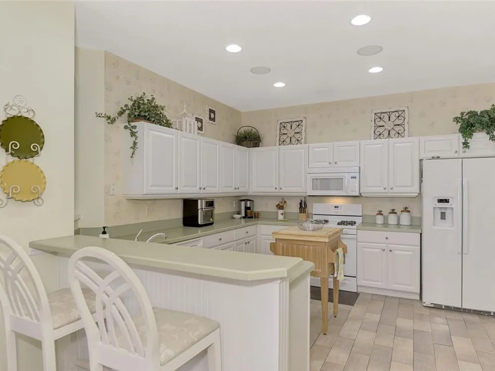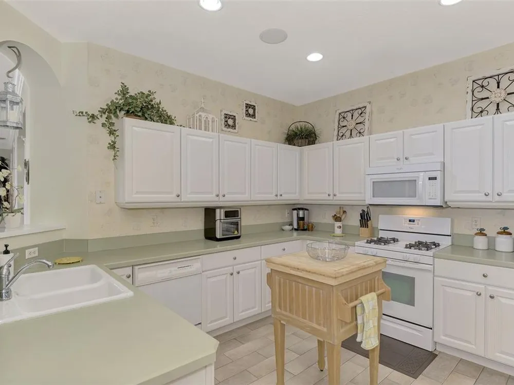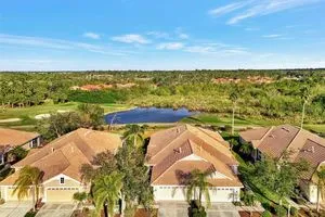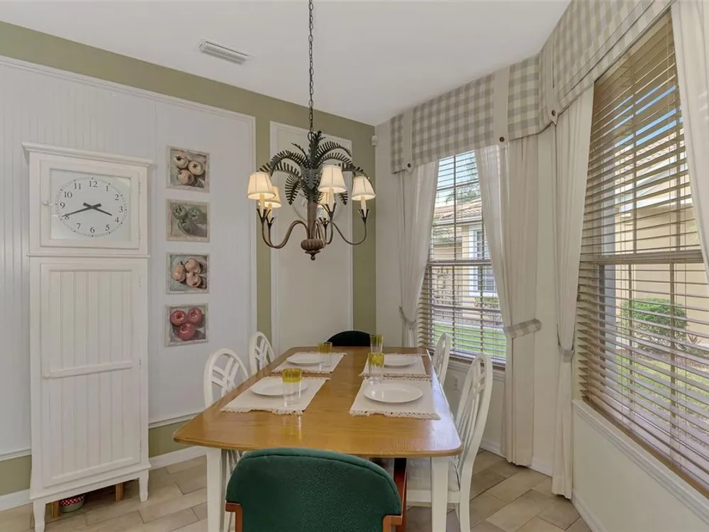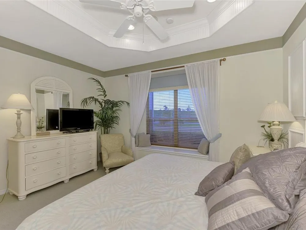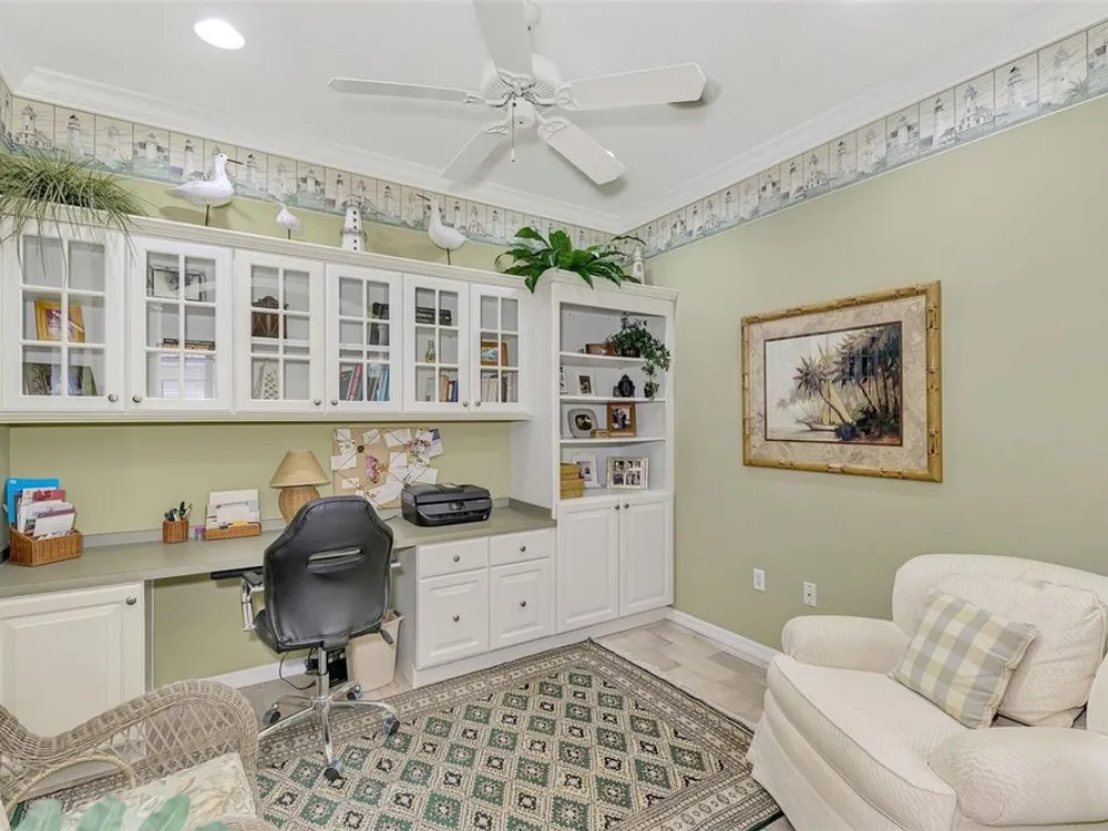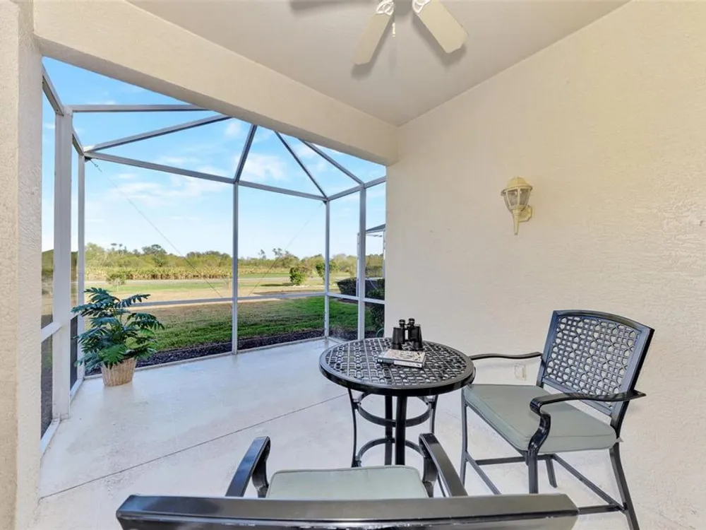 HERON CREEK GOLF & COUNTRY CLUB *TURNKEY FURNISHED *Paired Villa 2BED 2BATH +DEN with panoramic GOLF VIEW (#4 Oaks)! Available for Immediate Occupancy! This former Model is oozing with Coastal Charm, boasts over 1500 sq feet of well-designed living space and is perfectly suited for both seasonal escapes and year-round living! The desirable Bimini floor plan features a spacious open concept great room, versatile DEN/office, split bedroom plan for privacy, a fabulous Island kitchen w/sun filled dining nook and a spacious extended lanai overlooking the lush fairway! From the moment you walk through the beautiful leaded glass door you can’t help but appreciate the chic coastal casual décor and design. This villa surely shows like a model but lives like a home …it is stylish yet comfortable and inviting. Design and décor features include classic crown molding, shiplap and decorative millwork, custom window valances and drapes, decorative lighting and fans, stunning sand washed tile plank flooring throughout the living areas, tray ceilings, unique architectural details and niches, artistic wall treatments and perfectly suited furnishings and coordinating décor! The well-appointed Kitchen has abundant cabinetry and workspace, a NATURAL GAS range and is fully equipped with dinnerware, small appliances & pots and pans. Linens and Towels are also included for both bedrooms so all you really need is your suitcase! This villa could also be a great investment opportunity used as a seasonal rental (MIN RENTAL 3 MONTH). The den features a custom built in desk and workstation perfect for a home office. The Primary suite is bright and cheerful with a large double window and features a great window seat with hidden storage. The ensuite bath has dual vanities, a spacious walk-in shower, clothes closet, separate linen closet and has a tubular skylight that brings in abundant natural light. Guests can enjoy privacy in their own bedroom with adjacent full bath at the front of the home. This beautiful villa is ready to warm your heart just in time for Valentines Day! Heron Creek offers exceptional amenities including a 21,000 sq ft clubhouse, 27 holes of Championship golf Arthur Hills design, resort style pool & spa, a robust social activity calendar, fitness center, Tennis courts & formal & casual dining options! Club Membership is required with 3 membership levels offered beginning at $268/month *NO CDD FEES * LOW HOA FEES include lawn care, trimmings, mulching, irrigation, Cable HIGH-SPEED INTERNET &Gated entry, conveniently located w/easy access to I-75 & US-41, Cocoa Plum Shopping, Myakkahatchee Creek trails, WELLEN PARK, Braves Stadium, COSTCO & new SMH health