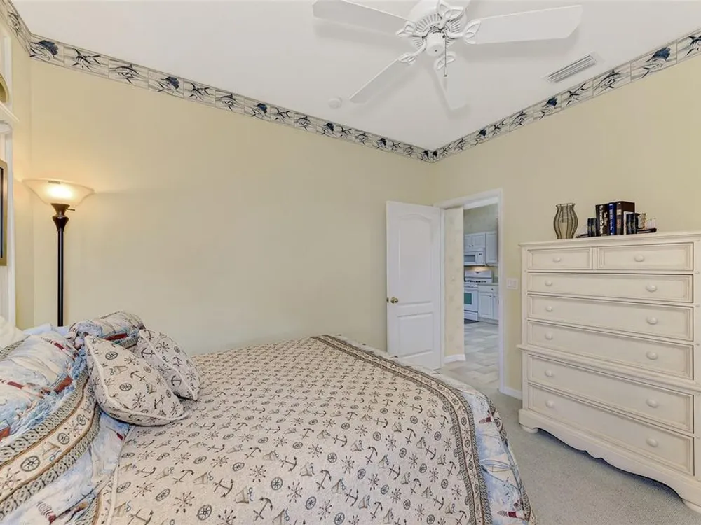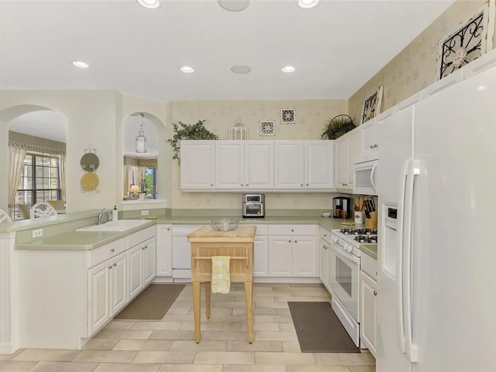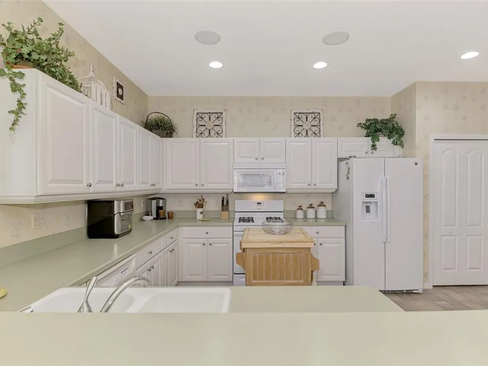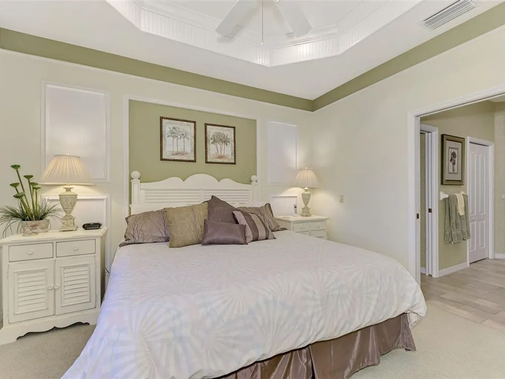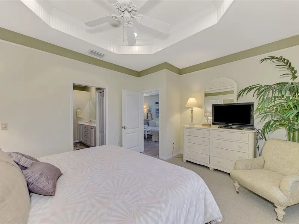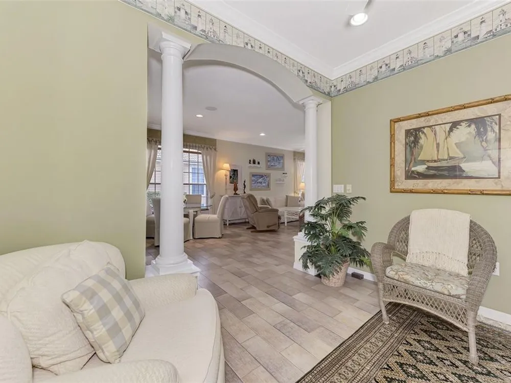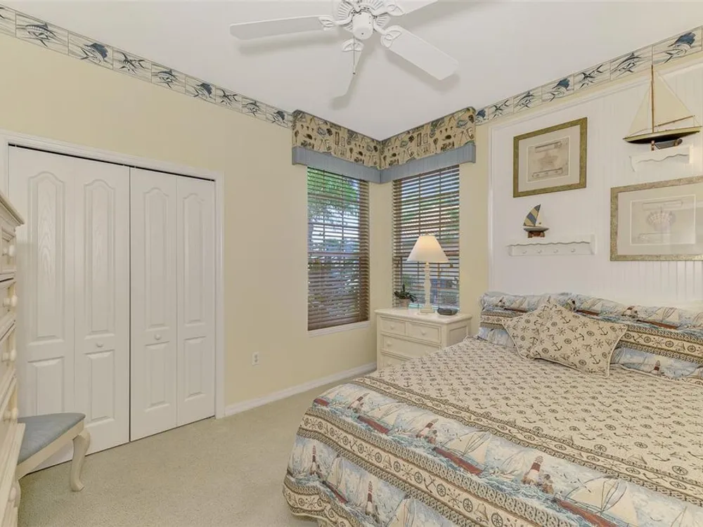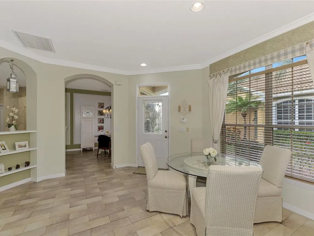 HERON CREEK GOLF & COUNTRY CLUB *TURNKEY FURNISHED *Paired Villa 2BED 2BATH +DEN with panoramic GOLF VIEW (#4 Oaks)! Available for Immediate Occupancy! This former Model is oozing with Coastal Charm, boasts over 1500 sq feet of well-designed living space and is perfectly suited for both seasonal escapes and year-round living! The desirable Bimini floor plan features a spacious open concept great room, versatile DEN/office, split bedroom plan for privacy, a fabulous Island kitchen w/sun filled dining nook and a spacious extended lanai overlooking the lush fairway! From the moment you walk through the beautiful leaded glass door you can’t help but appreciate the chic coastal casual décor and design. This villa surely shows like a model but lives like a home …it is stylish yet comfortable and inviting. Design and décor features include classic crown molding, shiplap and decorative millwork, custom window valances and drapes, decorative lighting and fans, stunning sand washed tile plank flooring throughout the living areas, tray ceilings, unique architectural details and niches, artistic wall treatments and perfectly suited furnishings and coordinating décor! The well-appointed Kitchen has abundant cabinetry and workspace, a NATURAL GAS range and is fully equipped with dinnerware, small appliances & pots and pans. Linens and Towels are also included for both bedrooms so all you really need is your suitcase! This villa could also be a great investment opportunity used as a seasonal rental (MIN RENTAL 3 MONTH). The den features a custom built in desk and workstation perfect for a home office. The Primary suite is bright and cheerful with a large double window and features a great window seat with hidden storage. The ensuite bath has dual vanities, a spacious walk-in shower, clothes closet, separate linen closet and has a tubular skylight that brings in abundant natural light. Guests can enjoy privacy in their own bedroom with adjacent full bath at the front of the home. This beautiful villa is ready to warm your heart just in time for Valentines Day! Heron Creek offers exceptional amenities including a 21,000 sq ft clubhouse, 27 holes of Championship golf Arthur Hills design, resort style pool & spa, a robust social activity calendar, fitness center, Tennis courts & formal & casual dining options! Club Membership is required with 3 membership levels offered beginning at $268/month *NO CDD FEES * LOW HOA FEES include lawn care, trimmings, mulching, irrigation, Cable HIGH-SPEED INTERNET &Gated entry, conveniently located w/easy access to I-75 & US-41, Cocoa Plum Shopping, Myakkahatchee Creek trails, WELLEN PARK, Braves Stadium, COSTCO & new SMH health