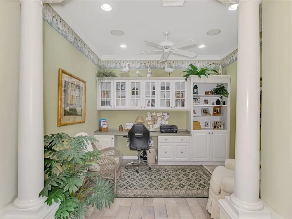 - Built-in Features, Ceiling Fan(s), Chair Rail, Crown Molding, Eat-in Kitchen, High Ceilings, Living/Dining Room, Open Floorplan, Solid Surface Counters, Split Bedrooms, Tray Ceiling(s), Walk-In Closet(s), Window Treatments
