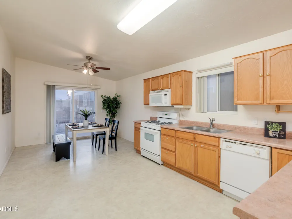 **Equity Opportunity in 55+ Resort Community** Located in a vibrant 55+ resort community, this home offers great potential with **owned solar**, spacious open floor plan, interior laundry, and block-wall backyard fencing providing additional privacy. The home has a solid foundation ready for your personal touch. With a little cosmetic updating, you will have instant equity in a well-established community. Community amenities include a pool, spa, clubhouse with group activities, pickleball, bingo, potlucks, media center, and exercise facility, plus a full-time office staff Monday-Friday. Love where you live!