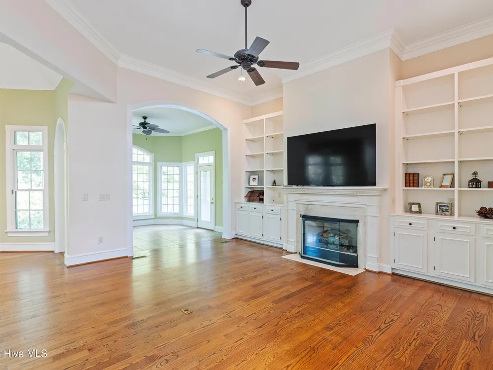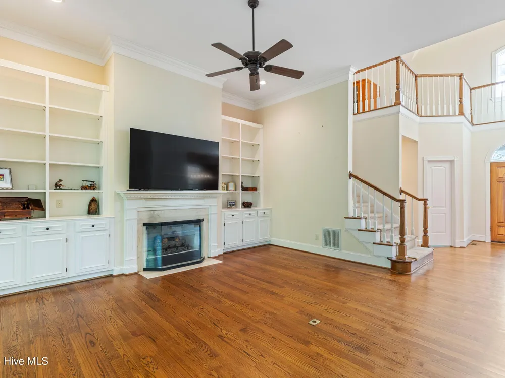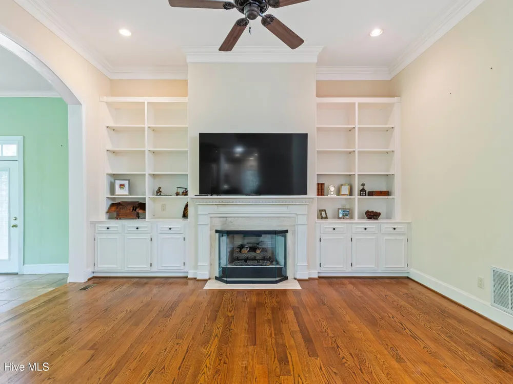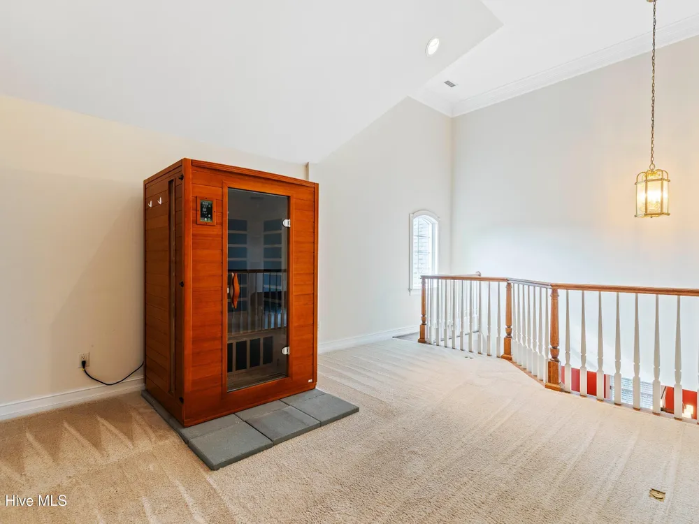 - Bookcases, Entrance Foyer, Walk-In Closet(s), Vaulted Ceiling(s), Sauna, Pantry, Master Downstairs, Kitchen Island, High Ceilings, Gas Log, Ceiling Fan(s)