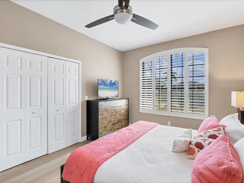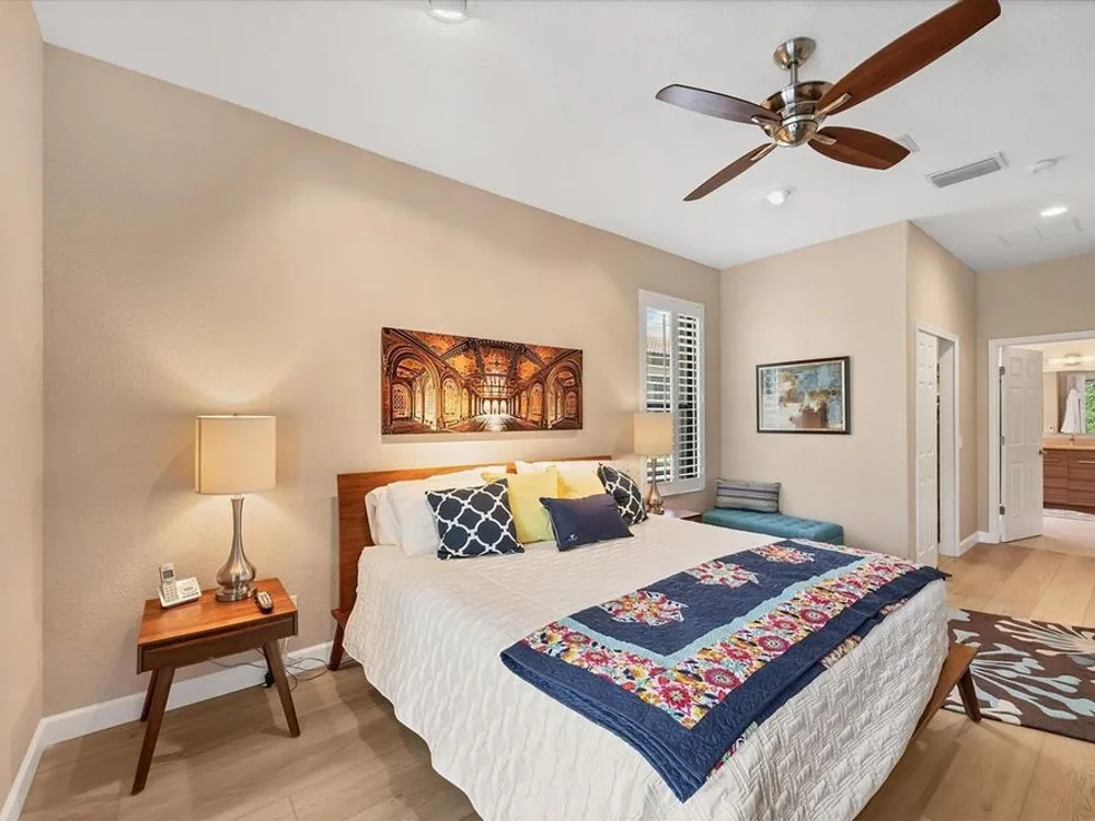 - Built-in Features, Ceiling Fan(s), Eat-in Kitchen, Open Floorplan, Main Level Primary, Solid Surface Counters, Split Bedrooms, Walk-In Closet(s), Window Treatments