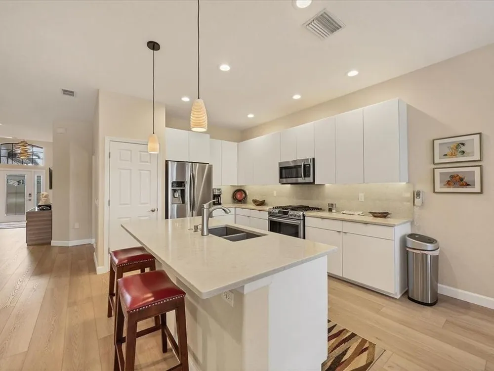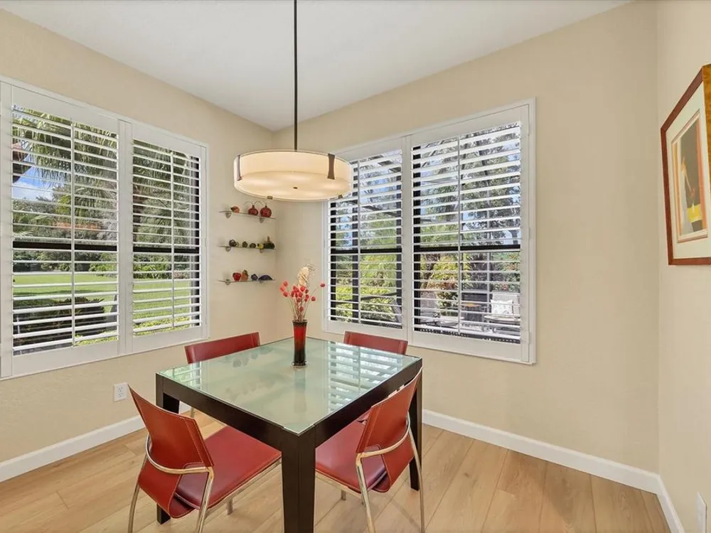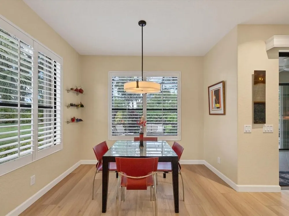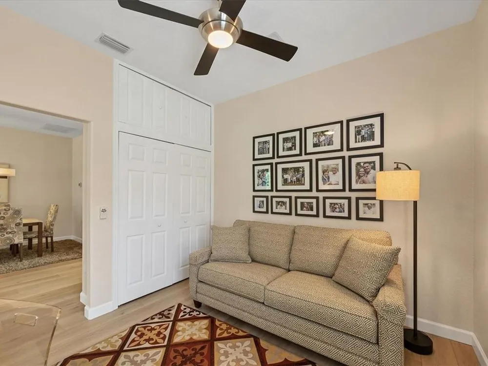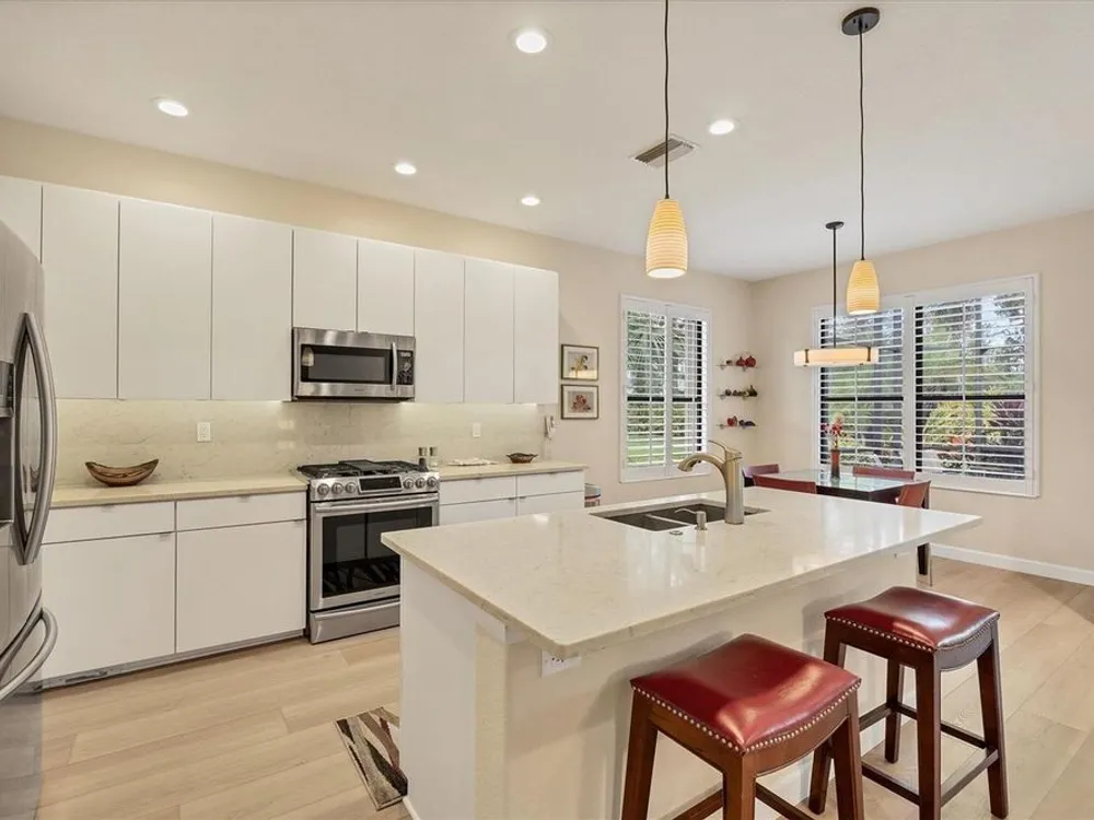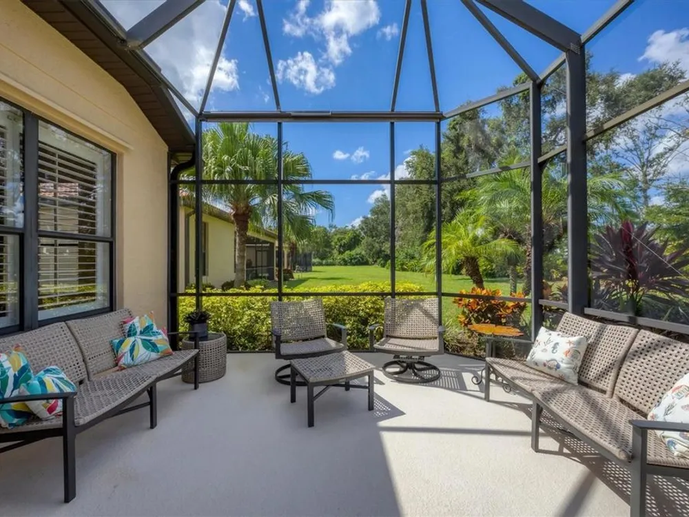 Incredible location just off University at Tuttle, this Lakeridge Falls home checks all the boxes. A 55+ gated community with a 24-hour guard for peace of mind. A home on a cul-de-sac offering lots of guest parking and an interior refresh you will not find anywhere in the Palm Aire zip code. Inside, nothing has been overlooked. This home is an entertainer’s dream. While tax records state it is two bedrooms, a simple door addition to the den and you will have a third bedroom for family visits! Luxury vinyl plank flooring throughout; all new kitchen appliances, cabinets, and countertop/ backsplash. The primary bath was re-imagined and has double sinks and tons of storage; now featuring a makeup desk and linen closet. The 4 ft extended garage readily fits two vehicles AND a hobby bench. This spectacular home is being offered furnished with some seller exclusions. Lakeridge Falls has many clubs, a heated pool with lap lanes and a hot tub and Bocce. Access to Tennis, pickleball, world class golf is available via a membership in the Palm Aire Country Club. This home has accordion hurricane shutters for insurance savings and protection. Outside the gates, it is minutes to world class shopping, dining and all the cultural attractions of Sarasota!