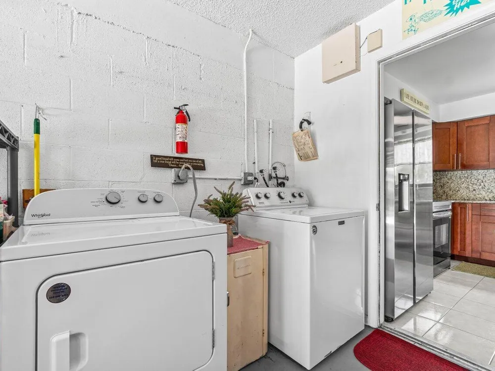 - Dishwasher, Dryer, Microwave, Electric Range, Refrigerator, Washer, Electric Water Heater