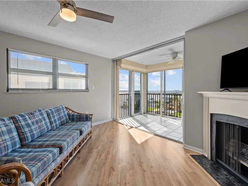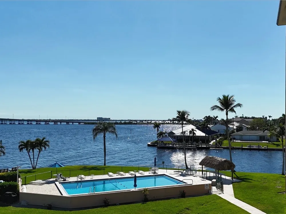 Seller Financing Available – Don’t Miss This Rare Opportunity! Step into the lifestyle you deserve at River Towers, a vibrant 55+ waterfront community where panoramic views of the Caloosahatchee River and city skyline create an unforgettable backdrop. This rare PENTHOUSE-level END UNIT is one-of-a-kind — no amount of remodeling can recreate the million-dollar views and location this condo offers. Flexible Seller Financing makes this dream home more accessible than ever! Whether you’re looking to simplify the buying process or seize an exceptional investment opportunity, this is your chance to own a slice of Southwest Florida paradise without traditional lending hurdles. From the moment you walk in, you’re greeted by an open, sunlit living area with an electric corner fireplace and triple-panel pocket sliders that invite the outdoors in. Step onto your private lanai with unobstructed southwestern exposure, perfect for enjoying morning coffee or evening wine while soaking in the sweeping river and city views. The kitchen is equipped with upgraded countertops and brand-new stainless steel appliances. A private split-bedroom floor plan ensures comfort and privacy for you and your guests. Both bedrooms feature en-suite baths. The primary suite includes a spacious walk-in closet, lanai access, and striking views. The second bedroom offers versatility with built-in cabinetry and a Murphy bed — ideal as a guest room, office, or hobby space. The water heater was replaced summer of 2025. River Towers residents enjoy a laidback, maintenance-free lifestyle with water, sewer, basic cable, and exterior upkeep included. Amenities include a waterfront pool updated with new pavers, shuffleboard courts, assigned parking and storage, and boat docks with Gulf access, allocated by the Dock Committee. Tucked away at the end of a serene peninsula surrounded by canals and riverfront, this location is truly covetable. Plus, you’ll be just steps from the soon-to-be-revealed $16 million transformation of Jaycee Park, expected Fall 2025. Whether you’re seeking a seasonal getaway or year-round waterfront living, this penthouse condo with seller financing available is an exceptional find. Schedule your private showing today and start living the SWFL lifestyle you’ve been dreaming of!