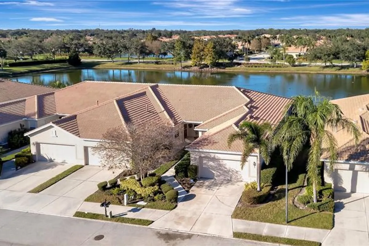 Welcome to this beautifully maintained 2-bedroom, 2-bath villa with a den/study and a 2-car garage, perfectly positioned for serene lake views from both the front and back of the home. Located in the highly desirable 55+ gated community of Lakeridge Falls, this villa offers a peaceful, maintenance-free lifestyle with abundant wildlife, birds, and ducks that can be enjoyed from your front sitting area or the spacious glass-enclosed back patio. Just 6 miles from fine dining, theater, and the Arts in vibrant Downtown Sarasota. A large foyer welcomes you upon entry. French doors lead to the study/den, which can also serve as a versatile third bedroom. Inside, you’ll find high ceilings, plantation shutters on every window and slider, and a bright open layout with multiple dining options—an eat-in kitchen, breakfast bar, or a large family-style dining area. Sliding doors from the great room open to the Florida room, and the primary bedroom also features sliders leading directly to the Florida room, creating a seamless indoor-outdoor living experience. A separate laundry room with a full-size washer and dryer adds convenience. Major updates completed in 2025 include a new roof, whole-home electrical surge protector, and water heater. Additional features include hurricane shutters and a whole-home water filtration system for added comfort and peace of mind. Lakeridge Falls is a pet-friendly, guard-gated community offering an active lifestyle and exceptional amenities. Six-month rentals are allowed once a year, making this an excellent seasonal or full-time home. Ideally located near University Town Center Mall, Detwiler’s Farm Market, SRQ/Bradenton Airport, I-75, and just a short drive to Lido Beach. This villa effortlessly blends convenience, comfort, and natural beauty—don’t miss your chance to experience the lifestyle behind the gates of Lakeridge Falls!