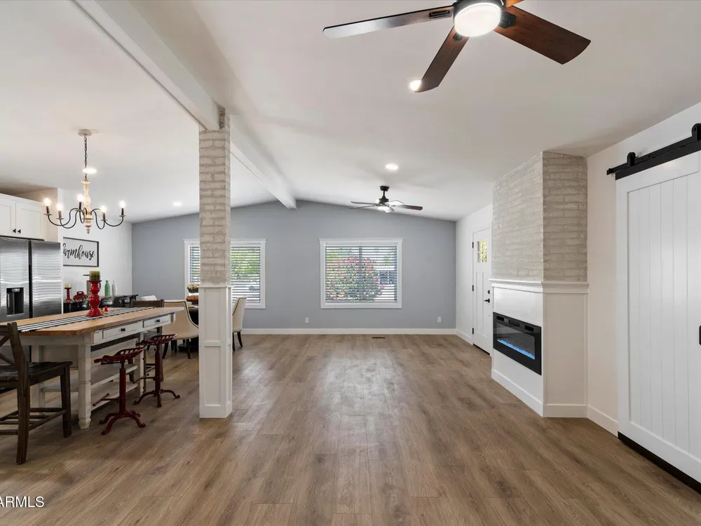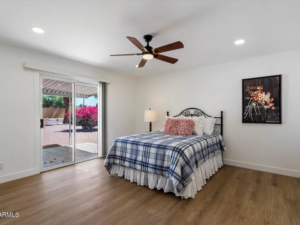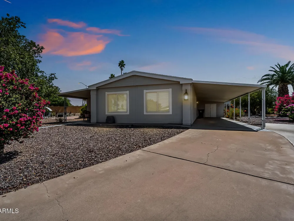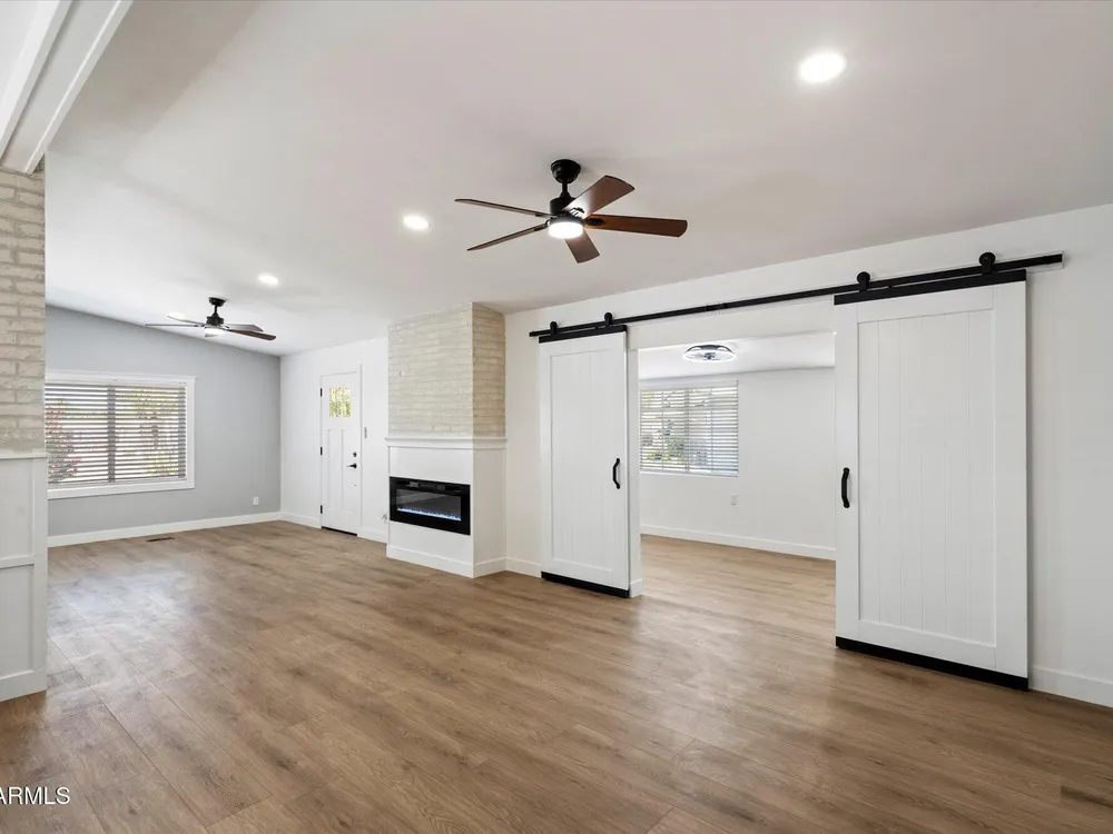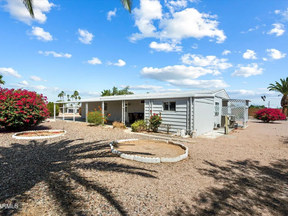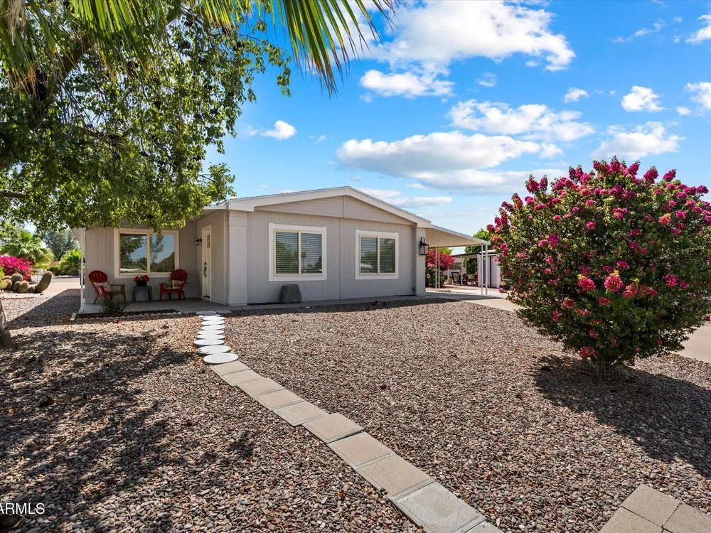 Start your next chapter in style and comfort! SECURE YOUR IDEAL AZ HOME IN TIME FOR THE UPCOMING SEASON! Tucked away in the vibrant 55+ active adult lifestyle community of Fountain of the Sun, this STUNNING & FULLY REMODELED home is TURN-KEY, MOVE-IN READY & provides the perfect blend of modern elegance and relaxed comfort. Positioned on an oversized lot & offering rare outdoor space- where you OWN the land, the entire home has been fully transformed in 2024 with no expense spared! The light & bright, open-concept floor plan is designed for both entertaining and everyday living. Features include: vaulted ceilings, Luxury plank Vinyl flooring, crown molding, custom electric fireplace, barn doors, custom lighting t/o, drywall & flat textured walls (NO panelling), new dual paned windows & int/ext paint. Stunning custom kitchen w/ white soft-close Shaker Cabinets, new hardware, quartz counters, upgraded stainless steel appliances, custom range hood & an amazing walk-in pantry. Custom bathrooms w/ quartz surround shower & raised vanities. Primary suite has a separate exit to a private patio. Secondary guest quarters w/ additional living space & a sep. entrance. New electrical & plumbing. This welcoming 55+ community boasts resort-style amenities including a heated pool, clubhouse, fitness center, an exceptional 18-hole executive golf course, and a full calendar of activities. & events. Close to shopping, restaurants & freeways - Don't miss this opportunity to start living your ideal AZ lifestyle!