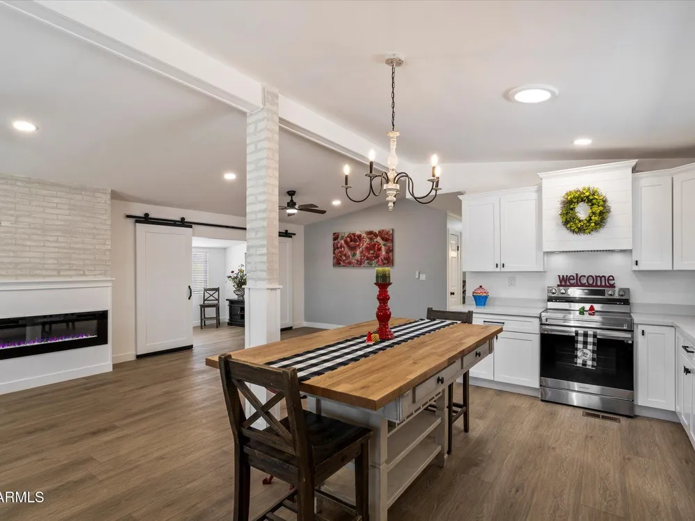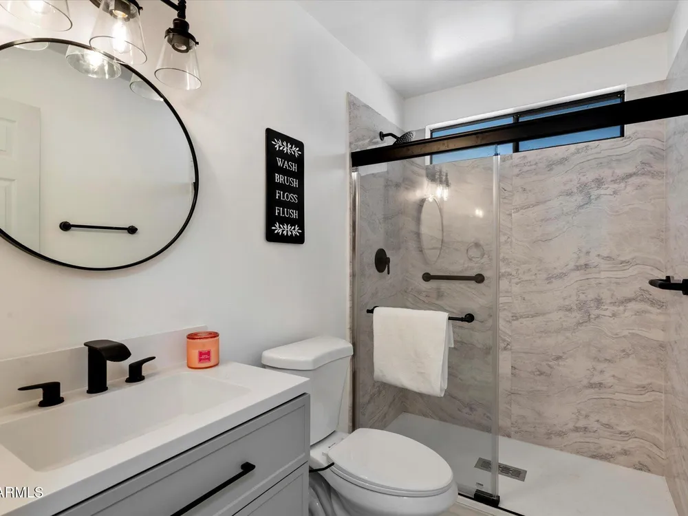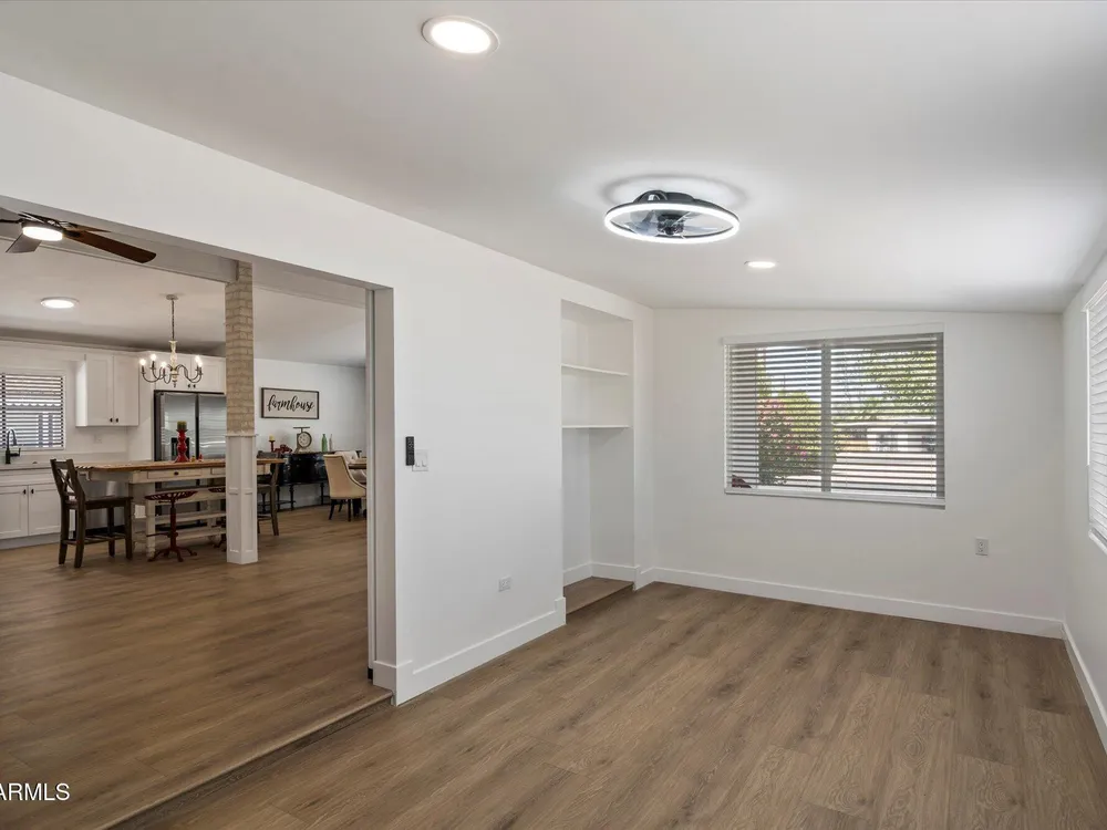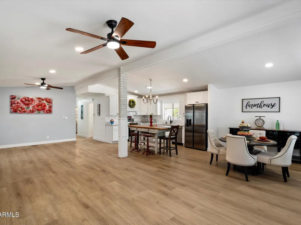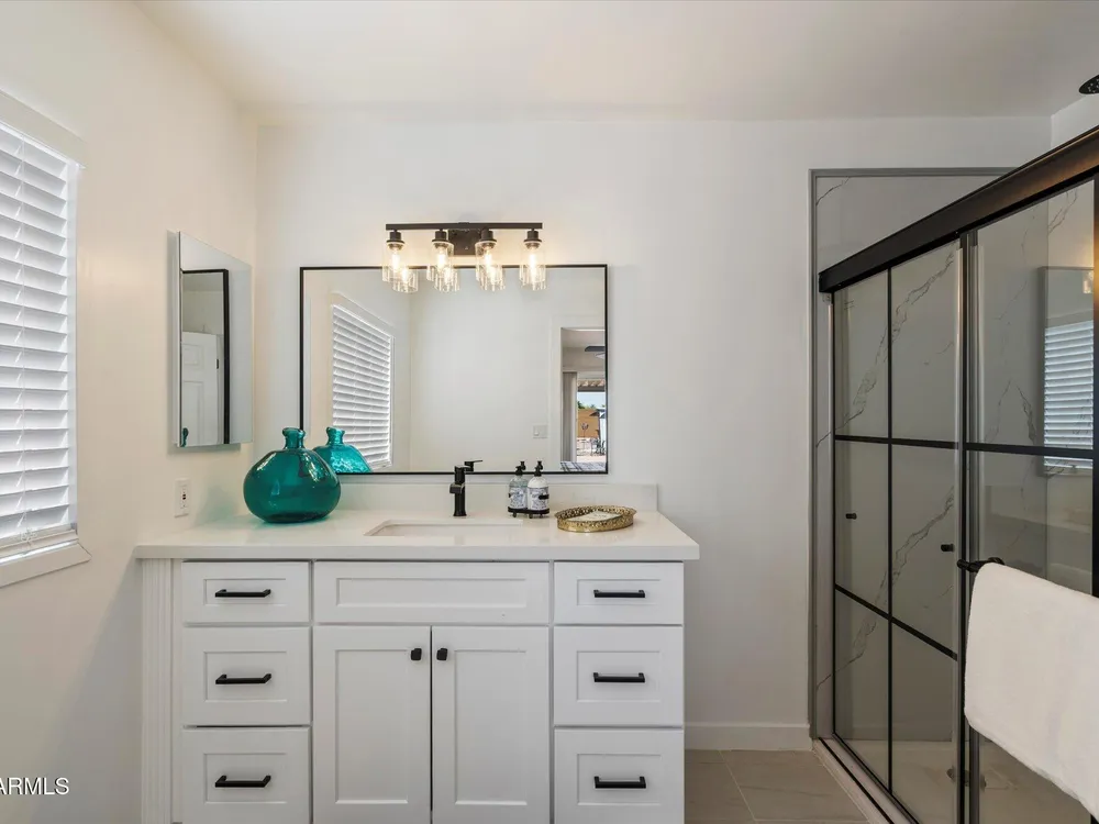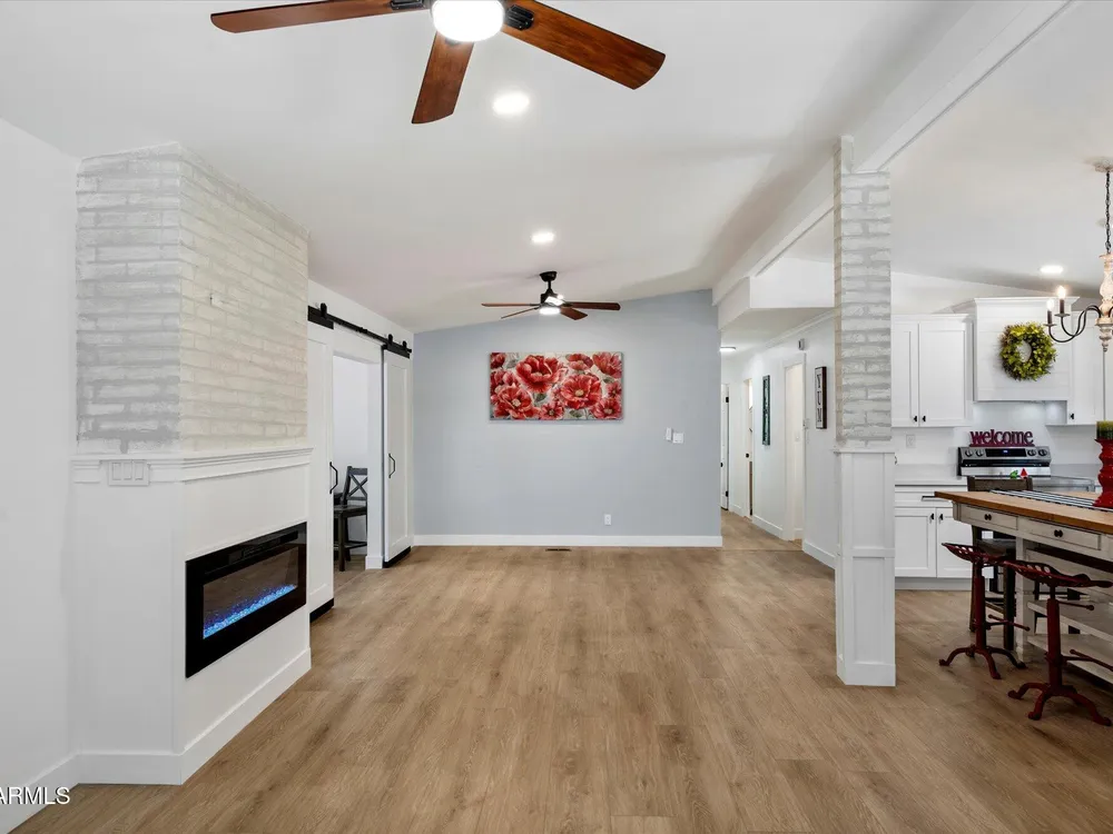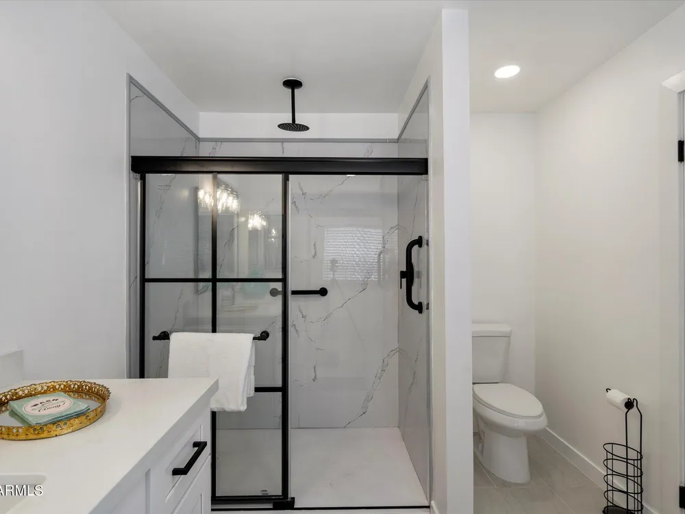 Start your next chapter in style and comfort! SECURE YOUR IDEAL AZ HOME IN TIME FOR THE UPCOMING SEASON! Tucked away in the vibrant 55+ active adult lifestyle community of Fountain of the Sun, this STUNNING & FULLY REMODELED home is TURN-KEY, MOVE-IN READY & provides the perfect blend of modern elegance and relaxed comfort. Positioned on an oversized lot & offering rare outdoor space- where you OWN the land, the entire home has been fully transformed in 2024 with no expense spared! The light & bright, open-concept floor plan is designed for both entertaining and everyday living. Features include: vaulted ceilings, Luxury plank Vinyl flooring, crown molding, custom electric fireplace, barn doors, custom lighting t/o, drywall & flat textured walls (NO panelling), new dual paned windows & int/ext paint. Stunning custom kitchen w/ white soft-close Shaker Cabinets, new hardware, quartz counters, upgraded stainless steel appliances, custom range hood & an amazing walk-in pantry. Custom bathrooms w/ quartz surround shower & raised vanities. Primary suite has a separate exit to a private patio. Secondary guest quarters w/ additional living space & a sep. entrance. New electrical & plumbing. This welcoming 55+ community boasts resort-style amenities including a heated pool, clubhouse, fitness center, an exceptional 18-hole executive golf course, and a full calendar of activities. & events. Close to shopping, restaurants & freeways - Don't miss this opportunity to start living your ideal AZ lifestyle!