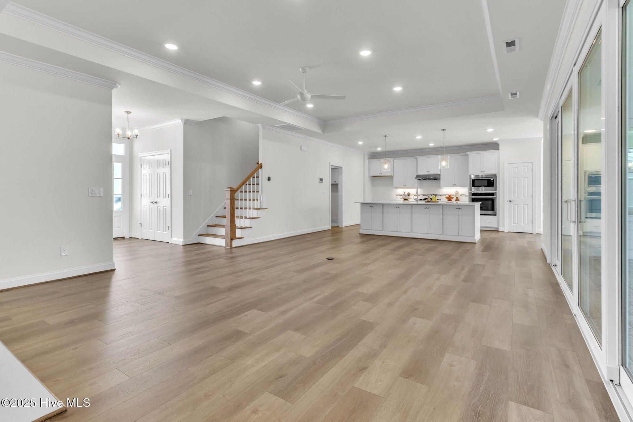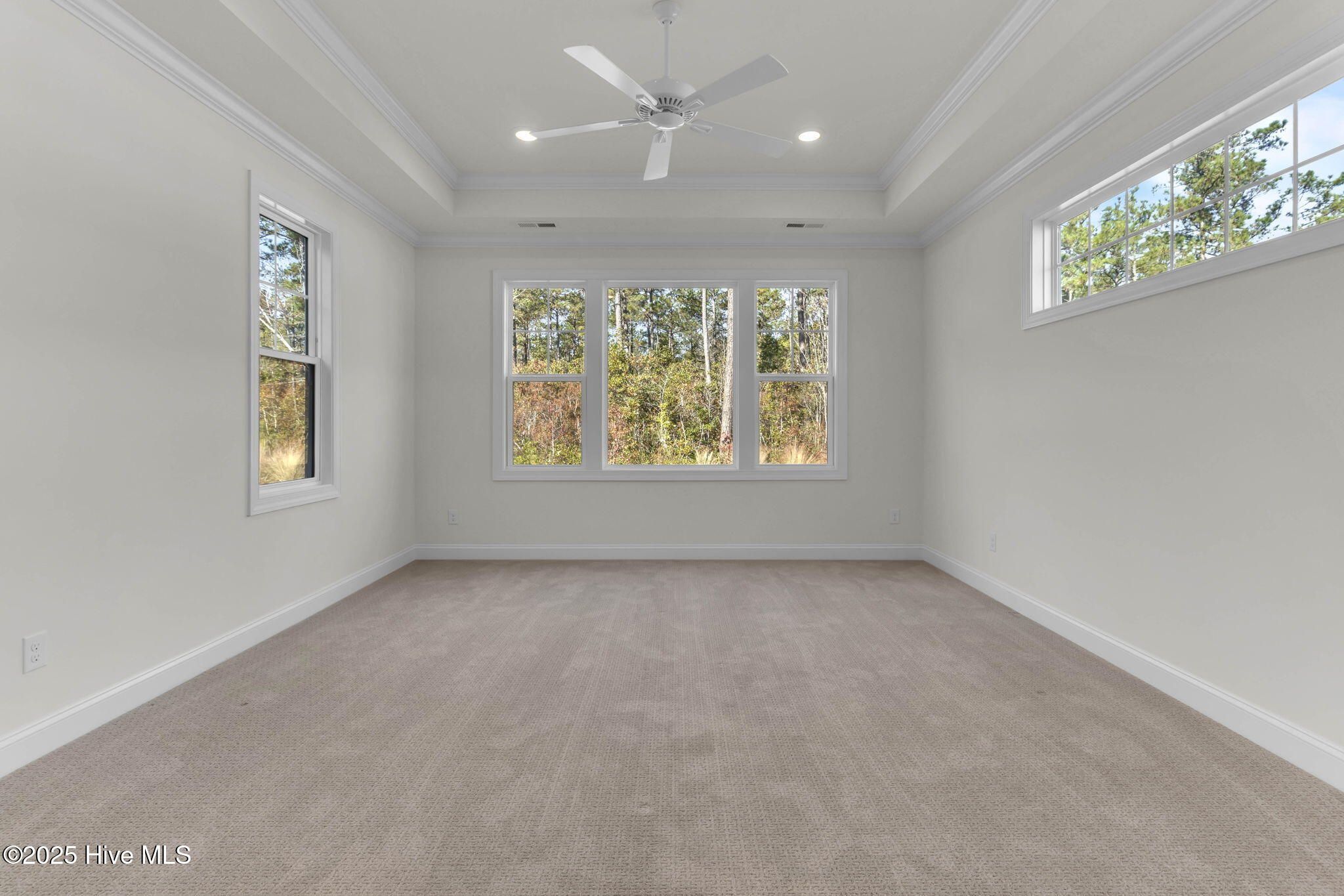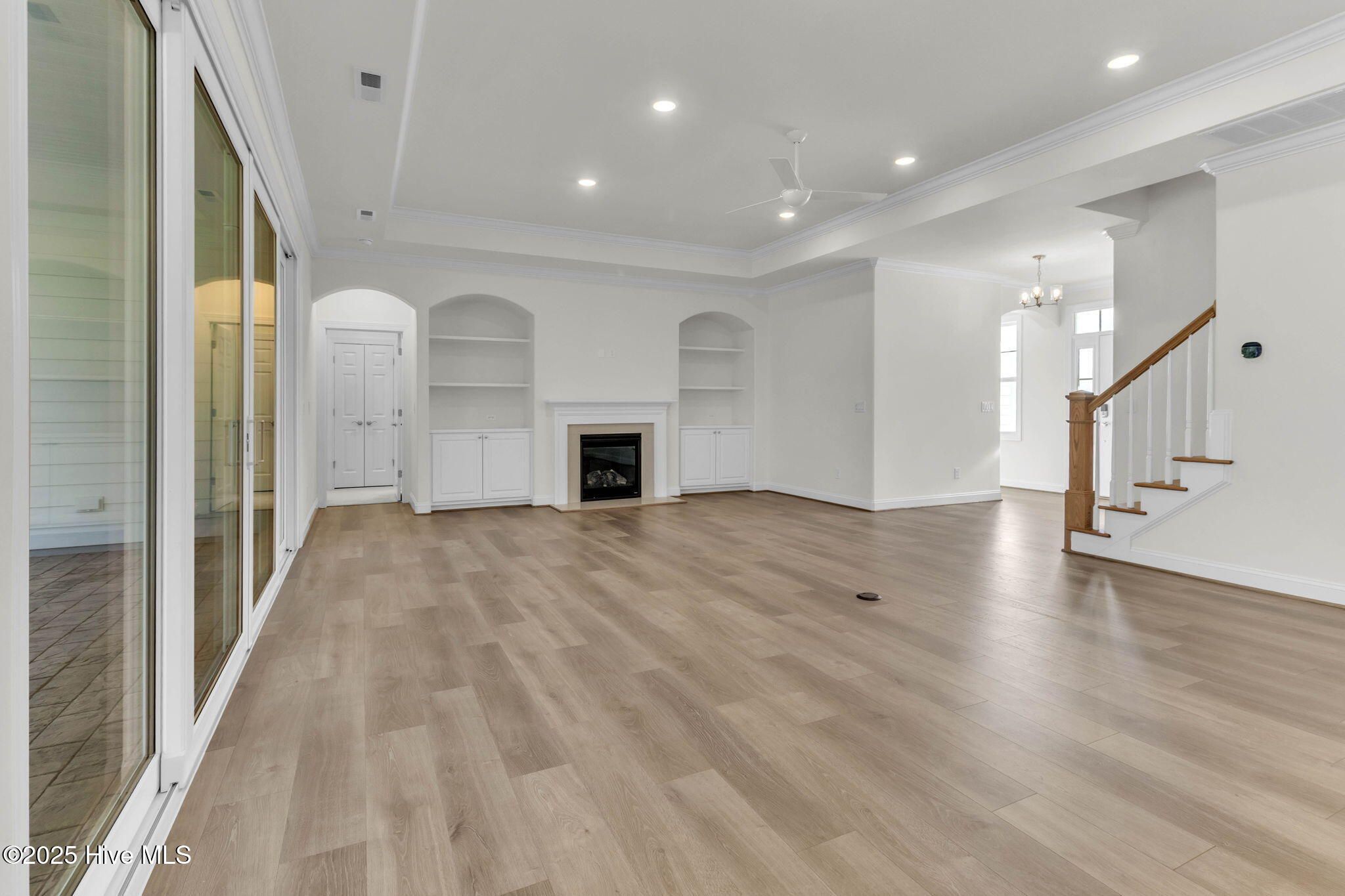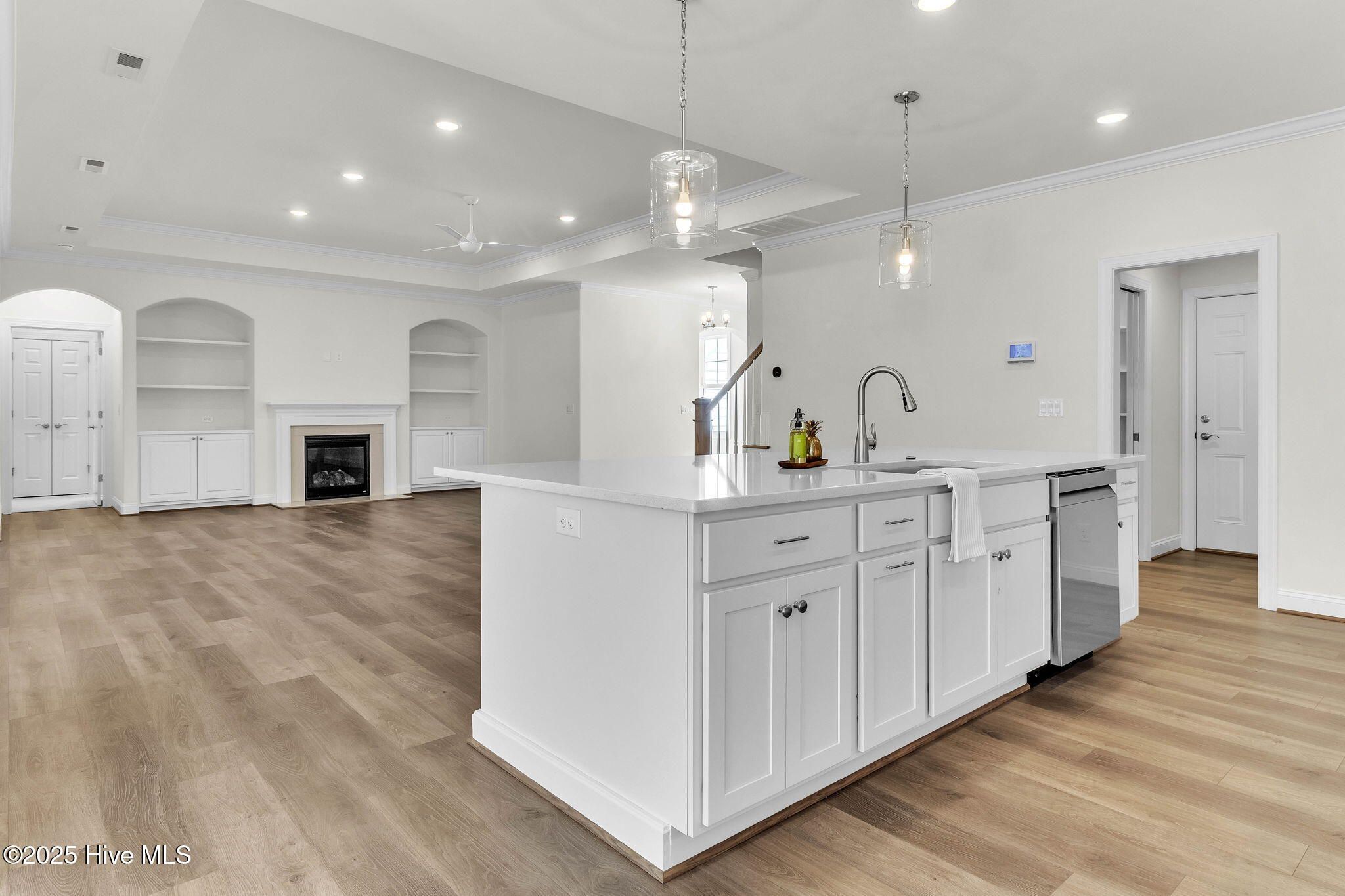 - Master Downstairs, Walk-In Closet(s), Tray Ceiling(s), High Ceilings, Solid Surface Counters, Bookcases, Kitchen Island, Ceiling Fan(s), Pantry, Walk-In Shower