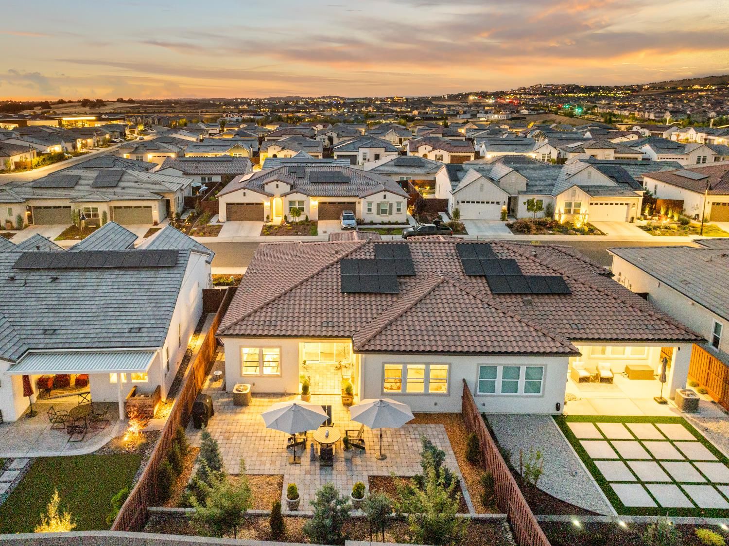 Welcome to a stunning modern retreat in the premier Regency 55+ community at Folsom Ranch where resort living meets everyday elegance. Behind the gates, enjoy a vibrant lifestyle with a gorgeous clubhouse, sparkling pools and spa, pickleball courts, a full fitness center, and activities designed for connection and fun. Built in 2022 with over $160K in designer upgrades plus $30K in professional landscaping, this home with solar radiates sophistication. Step inside to soaring 10 foot ceilings, rich oak hardwood floors, and sleek marble bathrooms. The spacious primary suite feels like a private spa escape with marble flooring, dual sinks, and an oversized walk in shower. The gourmet kitchen dazzles with 3 inch quartz countertops, a 6 burner KitchenAid gas range, built in stainless refrigerator, apron front sink, abundant cabinetry, and a large island that seats six. The expansive great room flows effortlessly for relaxing or entertaining. Step outside to a serene, low maintenance backyard with no rear neighbors. The paver patio, mature landscaping, and covered California room offer a dreamy backdrop for morning coffee or sunset cocktails. Blending luxury, comfort, and convenience, just moments from Folsom's finest shopping, dining, recreation, & HWY 50, this solar home invites you.