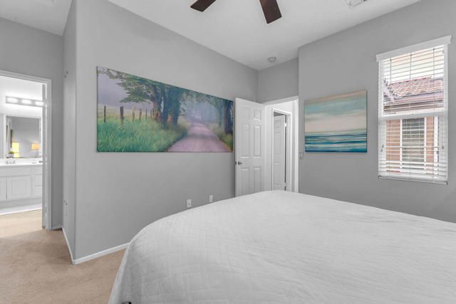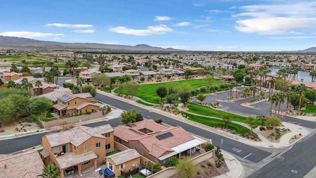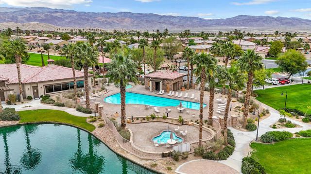 Located in the highly desirable Terra Lago community, this single-level, move-in ready home stands out with modern luxury upgrades and an unbeatable lifestyle setting. The open and spacious great room floor plan is built for both everyday living and entertaining, featuring a stone-backed fireplace with custom mantle and hearth, formal dining space, breakfast nook, and a versatile 4th bedroom or office option that opens through French doors into a private, gated courtyard entry.The master bath is fully remodeled and feels like a personal spa retreat, complete with a dual headed shower, rain shower, custom controls, premium lighting, and high-end fixtures throughout. The space also includes a 4'x7' custom sauna built directly into the master bath, creating a true luxury experience at home. The master closet has been fully built out with custom shelving and additional storage. The half bath is also remodeled with modern hardware, upgraded lighting, and an elevated design.Major upgrades include owned solar, a whole-house water filtration system, low-maintenance landscaping with artificial turf, a well-maintained garden with custom landscape lighting, an Alumawood-covered patio showcasing mountain views, lattice window covers, tandem garage storage, a custom built shed with double-gate access, and a recently refreshed and painted exterior.Terra Lago offers resort-style amenities including a clubhouse, pool, spa, fitness center, and social spaces, all within walking distance. Privacy, luxury, convenience, and lifestyle come together in one of the best communities in the desert. This home is truly a standout inside of it.