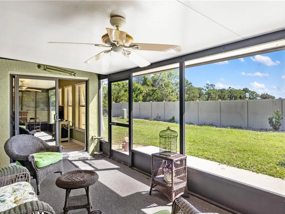 This beautifully maintained and furnished home in the Park Forest 55+ community offers a welcoming blend of comfort, style, and Florida charm. Featuring two bedrooms, two bathrooms, a spacious den, and a two-car garage, the layout is thoughtfully designed with split bedrooms for privacy and flexibility. Bahama shutters add a touch of tropical elegance while enhancing storm protection and curb appeal. Inside, the home is tastefully furnished and move-in ready, with a bright Florida room that invites natural light and a screened lanai perfect for enjoying morning coffee or evening breezes. The landscaping is well-kept, creating a serene outdoor setting that complements the home’s inviting interior. Residents enjoy the convenience of using golf carts throughout the community to visit neighbors or access the pool, spa, and clubhouse for social events and relaxation. Located just minutes from the Gulf Coast’s beautiful beaches, the property also offers easy access to shopping, dining, and medical services, with Venice and Sarasota only a short drive away. This home delivers an active, accessible lifestyle in one of Southwest Florida’s most desirable communities. Home located in an X Flood zone.