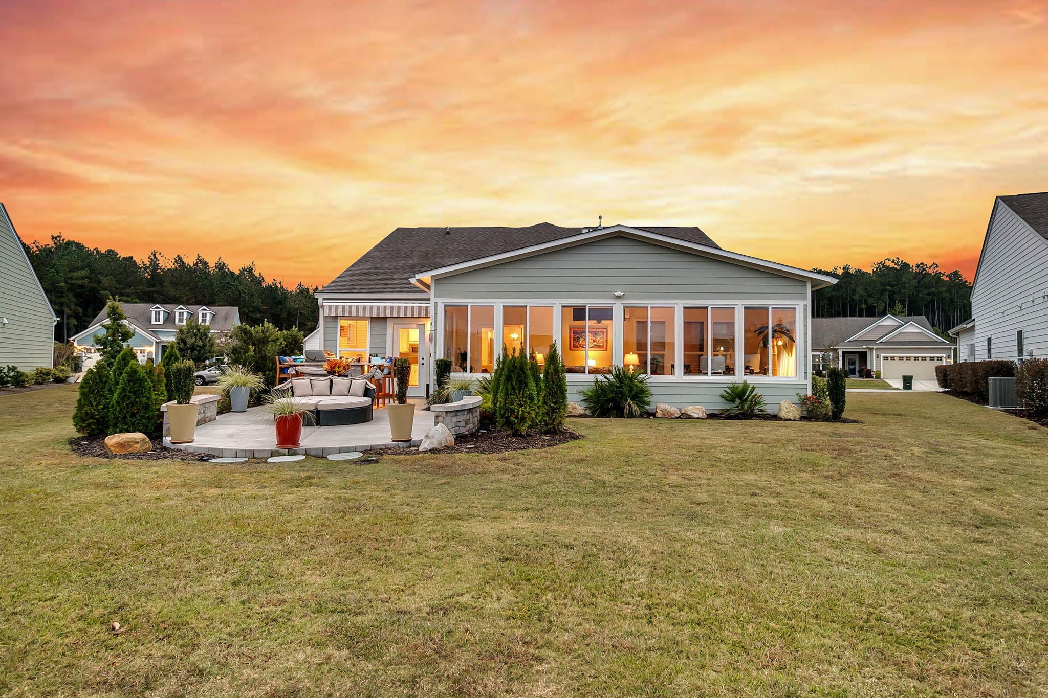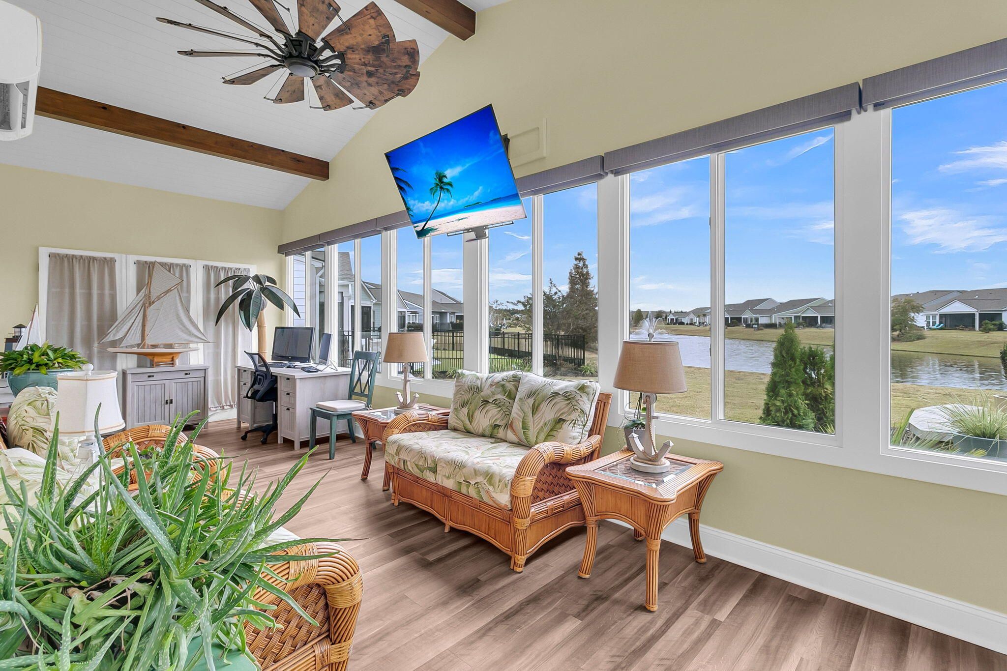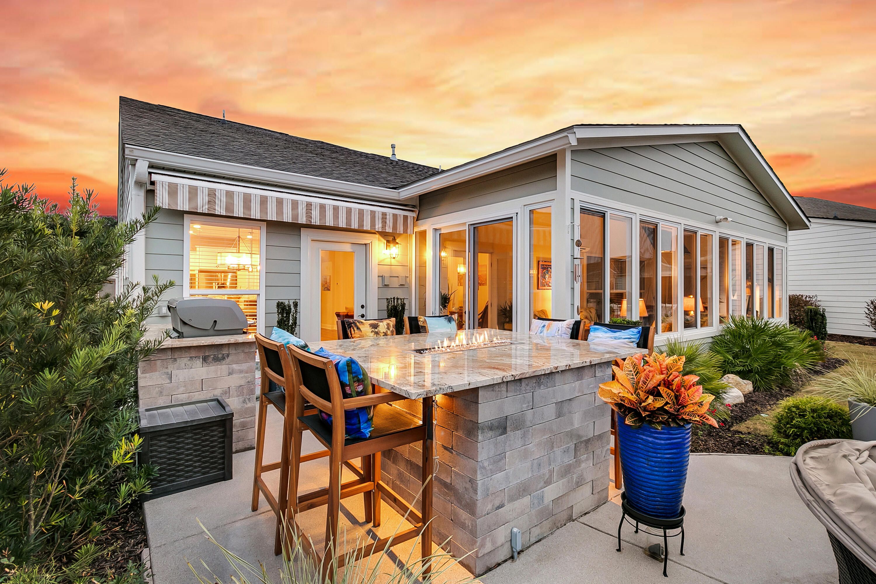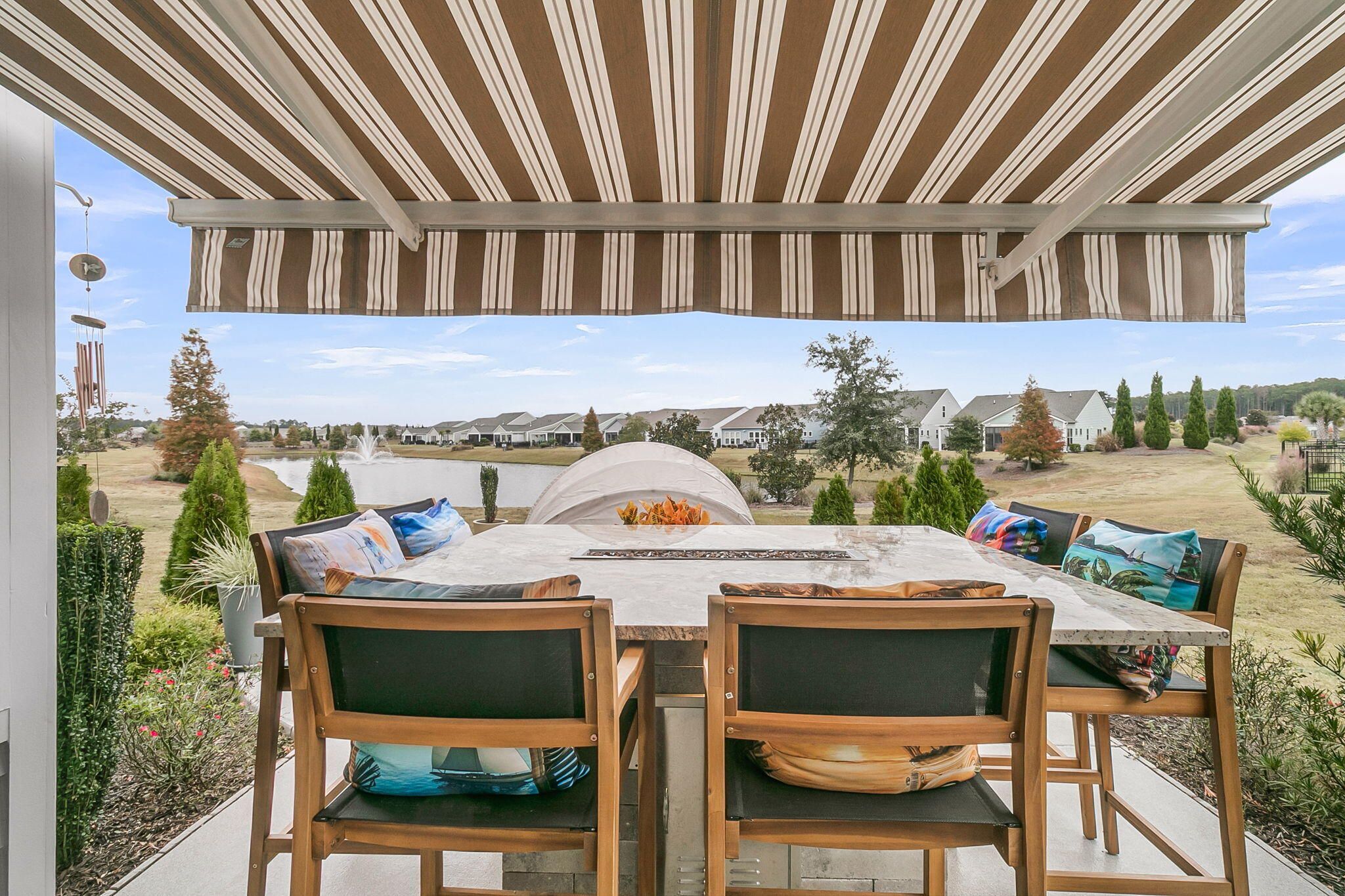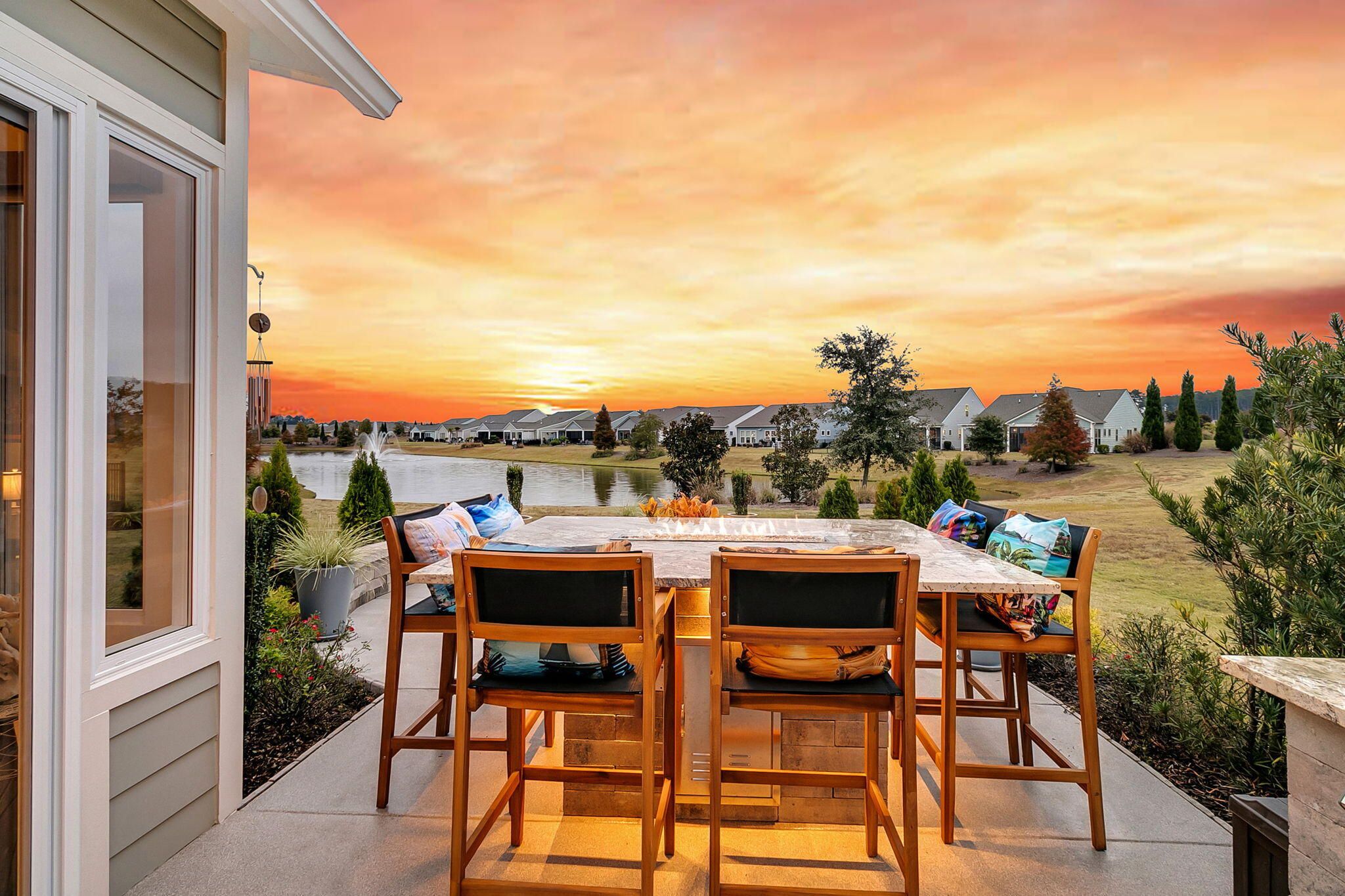 Welcome to 428 Hidden Meadow Lane, nestled on an oversized lagoon homesite within Charleston's highly desired Active Adult 55 plus community, Del Webb Nexton. Crafted with meticulous attention to detail, this Abbeyville floor plan is perfectly maintained by the current homeowners. Complete with 2 bedrooms, 2 bathrooms plus office/den, sunroom/Four Seasons room, this beautiful home sits on an ideal homesite with additional space between homes on a tranquil lagoon and within close proximity to the amenities! Upon arrival you will notice the curb appeal highlighted with professional landscaping and a full front porch with plenty of room for seating. This is the home you are proud to invite guests to visit immediately upon moving in! Step inside to a thoughtfully designed home and prepare....to be impressed! As you enter the home, you will notice a defined foyer complete with Luxury Vinyl Plank flooring and charming archway. Off the foyer, you will find the second bedroom and bath tucked away, offering your guests plenty of privacy, this is a true ''split floor plan'' with the primary bedroom on one side of the home and second bedroom on the other. Also located off the foyer, is a den/office/flex room with glass French doors. The kitchen is complete with upgraded white cabinets, granite countertops, double wall ovens, electric cooktop, built-in microwave, and subway tile backsplash. The kitchen also features a table top height center island with pendant lights and room for 3 to 4 bar stools. The kitchen overlooks the great room with a cozy corner gas fireplace and dining area. The dining area could be dressed up or down, it works as a formal dining room or eat-in kitchen depending on your preference. A 27'.5" x 9'.5" sunroom with vaulted ceiling was added in 2021. This space doubles as a sunroom and screened-in porch complete with mini-split HVAC system and sliding windows with screens, this space can be enjoyed year-round! A sliding glass door leads you to an exterior space ideal for entertaining friends and family and enjoying the outdoors. Exterior living at its best with a retractable motorized awning, outdoor kitchen, gas fire pit table, and raised patio with breathtaking lagoon views! Back inside, Luxury Vinyl Plank flooring continues throughout the home, including the bedrooms and office/den (no carpet). Tile flooring in the bathrooms and oversized laundry room. The laundry room is conveniently located next to the primary bedroom with an additional closet that can be used for extra storage or as a second pantry. The primary bedroom suite features an upgraded bathroom with dual sinks, granite countertops, framed mirrors, walk-in shower with subway tile surround plus built-in seat, and a large walk-in closet. Storage won't be an issue in this home; the two-car garage is finished with an epoxy coated floor and includes a 24'.6" x 13'.8" walk-up attic space accessible by a fixed stairway located at the back of the garage. The exterior was repainted in 2024, all appliances including the refrigerator, washer and dryer, all window treatments, ceiling fans, and attached lighting are included. With over $72,000 in aftermarket improvements, this home is move-in ready and designed for immediate enjoyment of the active adult lifestyle at Del Webb Nexton. Be part of the Charleston area's premier 55+ lifestyle community, Del Webb Nexton. Just a short golf cart ride to two grocery stores, restaurants, wine bars, spas, and so much more! Only five minutes to charming historic downtown Summerville and 25 minutes to Charleston! A 27,000 square foot amenities center with indoor and outdoor pools, sport courts, and fitness center, plus a full-time lifestyle director with clubs and planned community events. Skip the hassle of building and the additional move-in costs. Homesites like this one are unique and shouldn't be missed! Please schedule your showing today and see for yourself why this home is the perfect place to start your next chapter, you will not be disappointed!