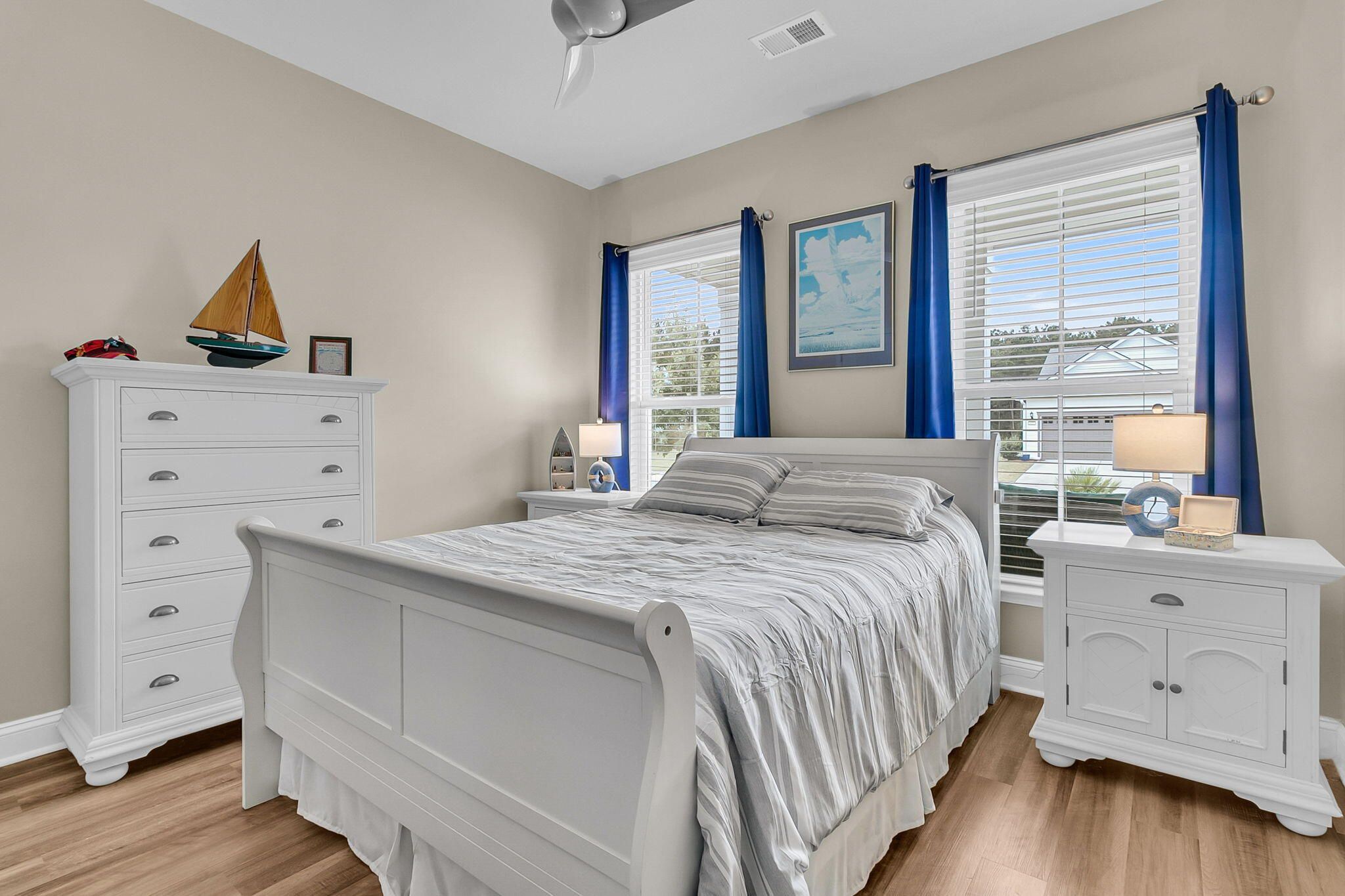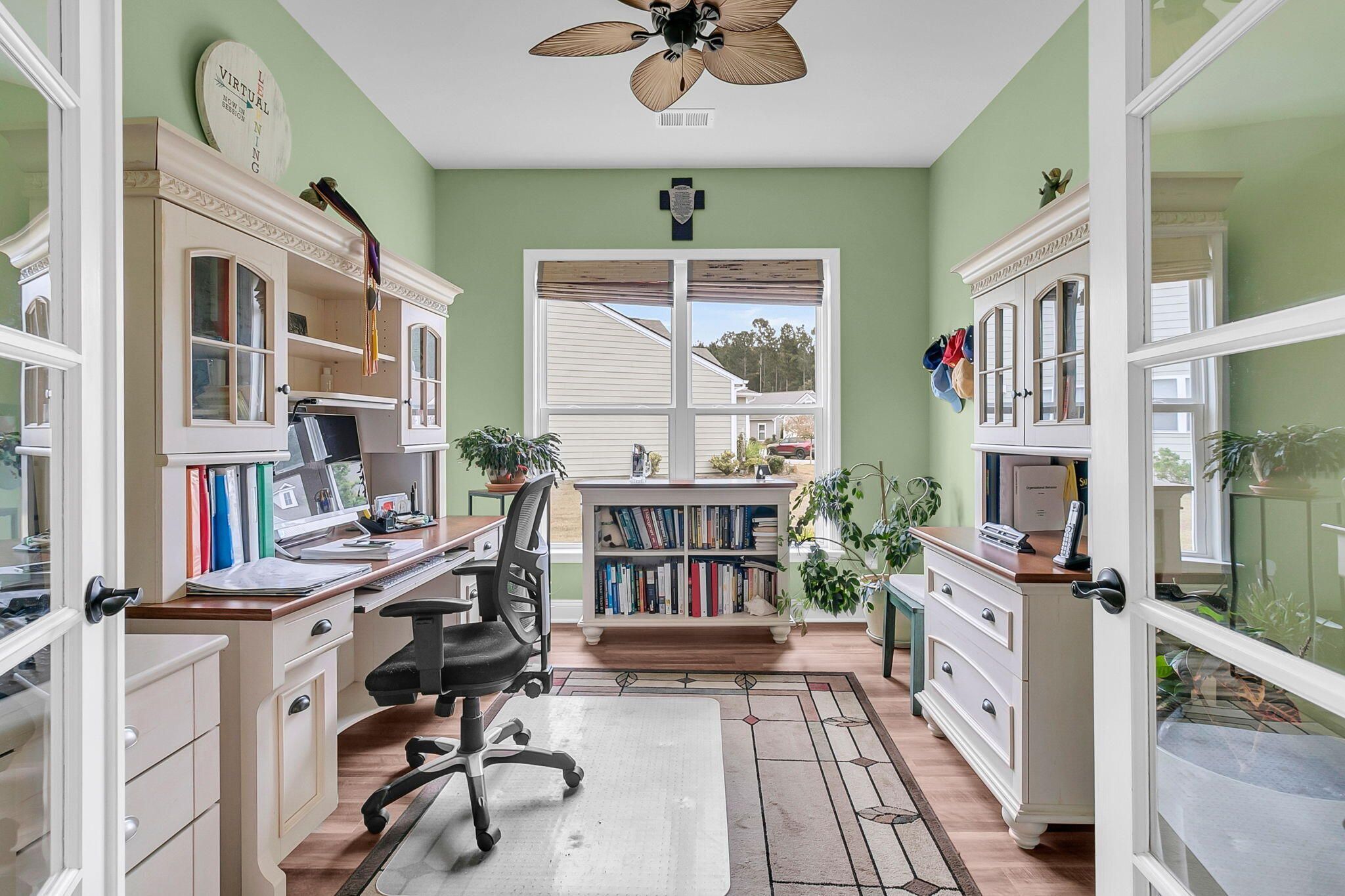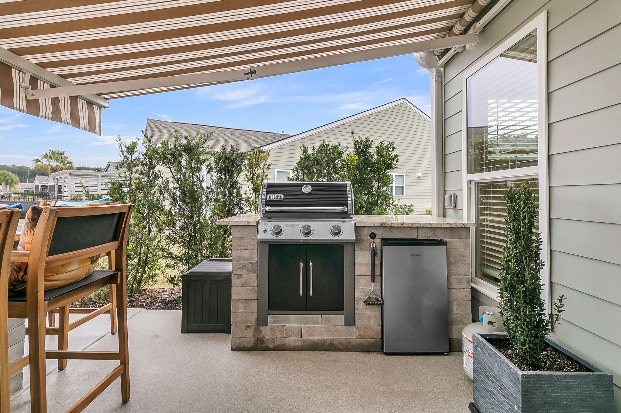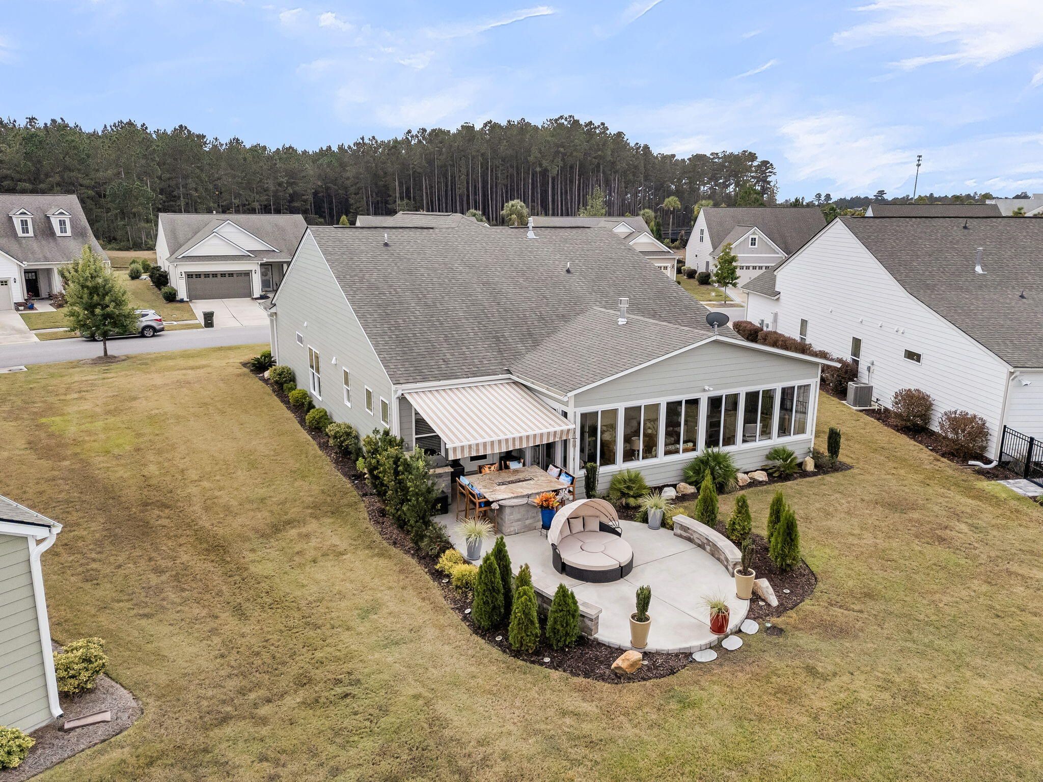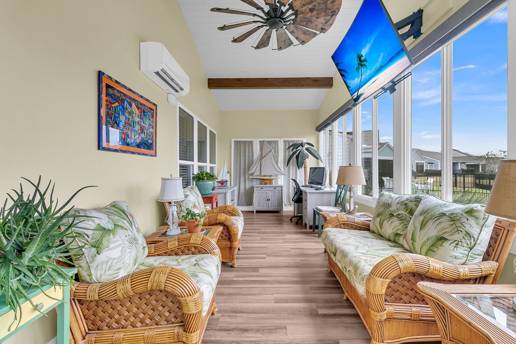 Welcome to 428 Hidden Meadow Lane, nestled on an oversized lagoon homesite within Charleston's highly desired Active Adult 55 plus community, Del Webb Nexton. Crafted with meticulous attention to detail, this Abbeyville floor plan is perfectly maintained by the current homeowners. Complete with 2 bedrooms, 2 bathrooms plus office/den, sunroom/Four Seasons room, this beautiful home sits on an ideal homesite with additional space between homes on a tranquil lagoon and within close proximity to the amenities! Upon arrival you will notice the curb appeal highlighted with professional landscaping and a full front porch with plenty of room for seating. This is the home you are proud to invite guests to visit immediately upon moving in! Step inside to a thoughtfully designed home and prepare....to be impressed! As you enter the home, you will notice a defined foyer complete with Luxury Vinyl Plank flooring and charming archway. Off the foyer, you will find the second bedroom and bath tucked away, offering your guests plenty of privacy, this is a true ''split floor plan'' with the primary bedroom on one side of the home and second bedroom on the other. Also located off the foyer, is a den/office/flex room with glass French doors. The kitchen is complete with upgraded white cabinets, granite countertops, double wall ovens, electric cooktop, built-in microwave, and subway tile backsplash. The kitchen also features a table top height center island with pendant lights and room for 3 to 4 bar stools. The kitchen overlooks the great room with a cozy corner gas fireplace and dining area. The dining area could be dressed up or down, it works as a formal dining room or eat-in kitchen depending on your preference. A 27'.5" x 9'.5" sunroom with vaulted ceiling was added in 2021. This space doubles as a sunroom and screened-in porch complete with mini-split HVAC system and sliding windows with screens, this space can be enjoyed year-round! A sliding glass door leads you to an exterior space ideal for entertaining friends and family and enjoying the outdoors. Exterior living at its best with a retractable motorized awning, outdoor kitchen, gas fire pit table, and raised patio with breathtaking lagoon views! Back inside, Luxury Vinyl Plank flooring continues throughout the home, including the bedrooms and office/den (no carpet). Tile flooring in the bathrooms and oversized laundry room. The laundry room is conveniently located next to the primary bedroom with an additional closet that can be used for extra storage or as a second pantry. The primary bedroom suite features an upgraded bathroom with dual sinks, granite countertops, framed mirrors, walk-in shower with subway tile surround plus built-in seat, and a large walk-in closet. Storage won't be an issue in this home; the two-car garage is finished with an epoxy coated floor and includes a 24'.6" x 13'.8" walk-up attic space accessible by a fixed stairway located at the back of the garage. The exterior was repainted in 2024, all appliances including the refrigerator, washer and dryer, all window treatments, ceiling fans, and attached lighting are included. With over $72,000 in aftermarket improvements, this home is move-in ready and designed for immediate enjoyment of the active adult lifestyle at Del Webb Nexton. Be part of the Charleston area's premier 55+ lifestyle community, Del Webb Nexton. Just a short golf cart ride to two grocery stores, restaurants, wine bars, spas, and so much more! Only five minutes to charming historic downtown Summerville and 25 minutes to Charleston! A 27,000 square foot amenities center with indoor and outdoor pools, sport courts, and fitness center, plus a full-time lifestyle director with clubs and planned community events. Skip the hassle of building and the additional move-in costs. Homesites like this one are unique and shouldn't be missed! Please schedule your showing today and see for yourself why this home is the perfect place to start your next chapter, you will not be disappointed!