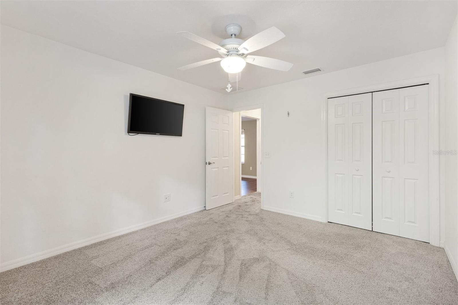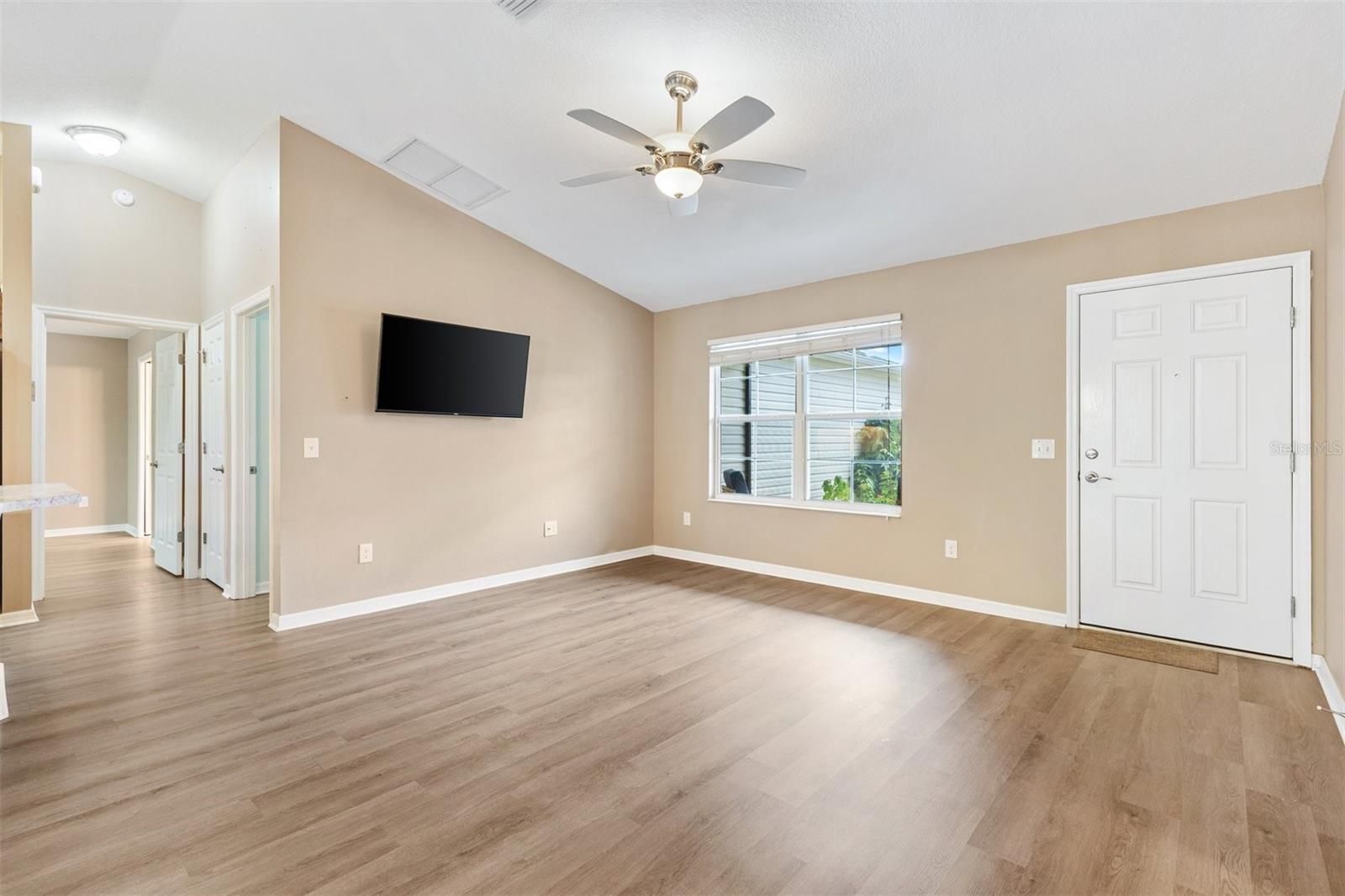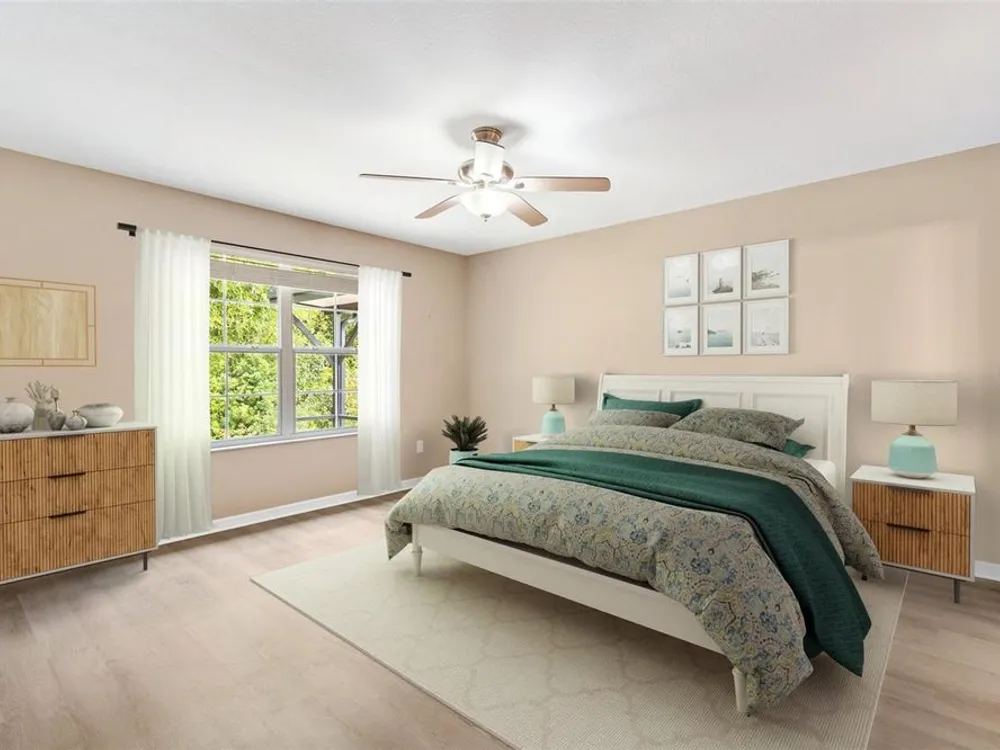 - Ceiling Fan(s), Living/Dining Room, Open Floorplan, Main Level Primary, Split Bedrooms, Thermostat, Walk-In Closet(s)