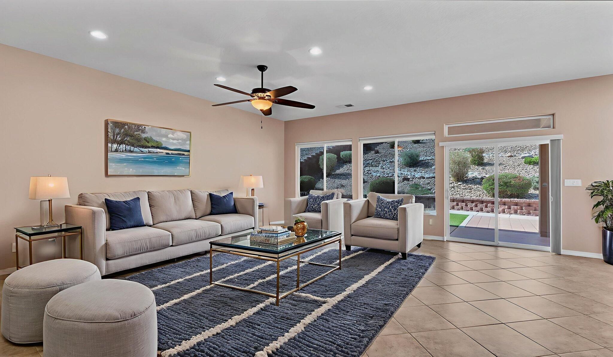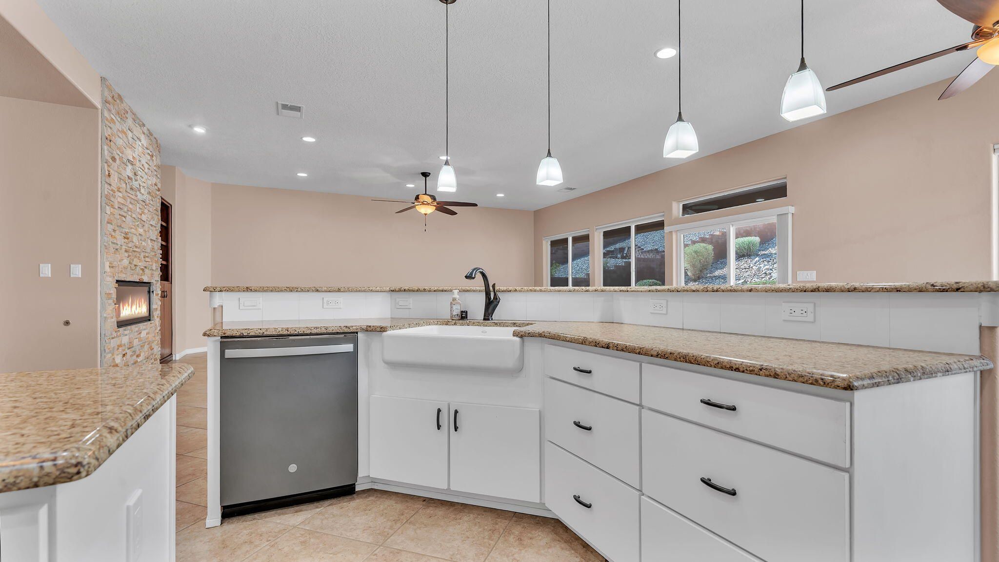 OFFERED BELOW APPRAISED VALUE! Experience unparalleled luxury and instant equity in this meticulously designed 2,969 sq. ft. estate, perfectly positioned on a premium view lot adjacent to open space for rare privacy. Located in a coveted, award-winning 55+ resort community, this home blends high-end sophistication with everyday functionality. The expansive open concept floor plan is anchored by a striking great room featuring a 54'' linear gas fireplace, which flows seamlessly into a gourmet chef's kitchen complete with granite countertops, double ovens, a large social island, and a sun-drenched breakfast nook. For those working from home, a dedicated executive office with custom built-ins offers a quiet, professional workspace. The primary suite serves as a true sanctuary, featuring
