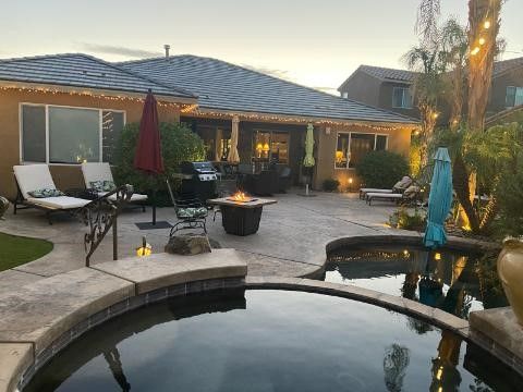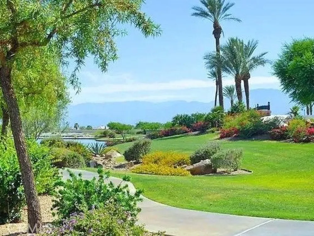 MOTIVATED SELLER!!! Looking for a total turn key, this is it! Beautiful tropical resort, 3 bed, 2 bath home. Gorgeous pebble tech salt water pool, extra deep spa with custom stone spillway. Great views of Terra Lago golf course and lake with mountains as back drop. Ample backyard seating areas with propane fire table, outdoor TV and ceiling fan. Patio has gas stub for possible bbq island. There is a 3 car tandem garage with dedicated A/C. 3rd car could easily be converted to a 4th bedroom or lot is large enough to build a stand alone casita ADU. House is equipped with pest control tubes within walls with outside access for pest control company. House was built with double insulation in attic. Crown molding. Electrical has been upgraded to 50 amp service for RV plug in. Community has a Golf Course in it's back yard, Clubhouse, Lap Pool & Kids Pool with change rooms and showers, Community Spa, pool table, patio area overlooking the 3 acre lake. Included in the monthly HOA dues is Direct cable tv as well as 5G internet. Close to casino's, Palm Springs, pickleball courts, hiking trails, Coachella Fest, Stagecoach, Acrisure Arena and many more attractions.
