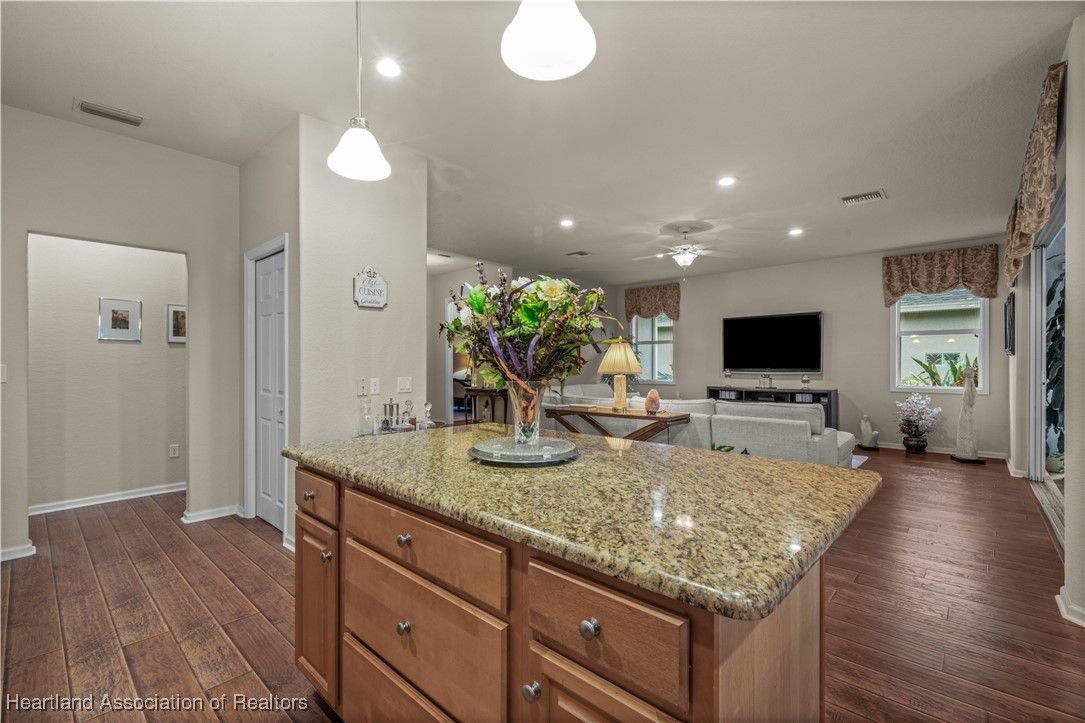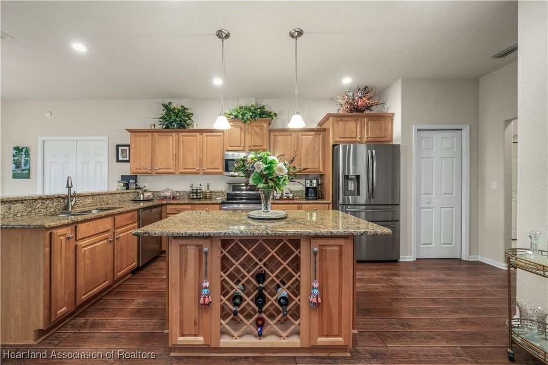 This furnished 3-bedroom, 2-bath 2-car garage home located in the sought-after Highlands Ridge community, you'll enjoy a peaceful neighborhood and fantastic opportunity to live in a vibrant community with access to excellent amenities and a beautiful golf course setting. The property is available fully furnished, allowing for an easy and seamless move-in. Just bring your personal belongings and start enjoying your new home. The interior of this home is designed with both style and functionality in mind. The kitchen features stunning granite countertops and modern stainless-steel appliances, making it a chef's delight. The open-concept living area is perfect for entertaining guests or relaxing with family. The Florida room provides a tranquil space to enjoy the beautiful Florida weather year-round. Whether you're sipping your morning coffee or unwinding after a long day, this room offers a peaceful retreat. Some Florida wildlife seen throughout the community are white-tail deer, Osceola turkeys, bald eagles and ospreys. You will find plenty other activities available in the community such as two swimming pools and one spa. Other amenities include a media center, library, tennis, and gym which has cardio and strength training equipment. Centrally located in the center of Florida to have access to beaches within an hour and a half.