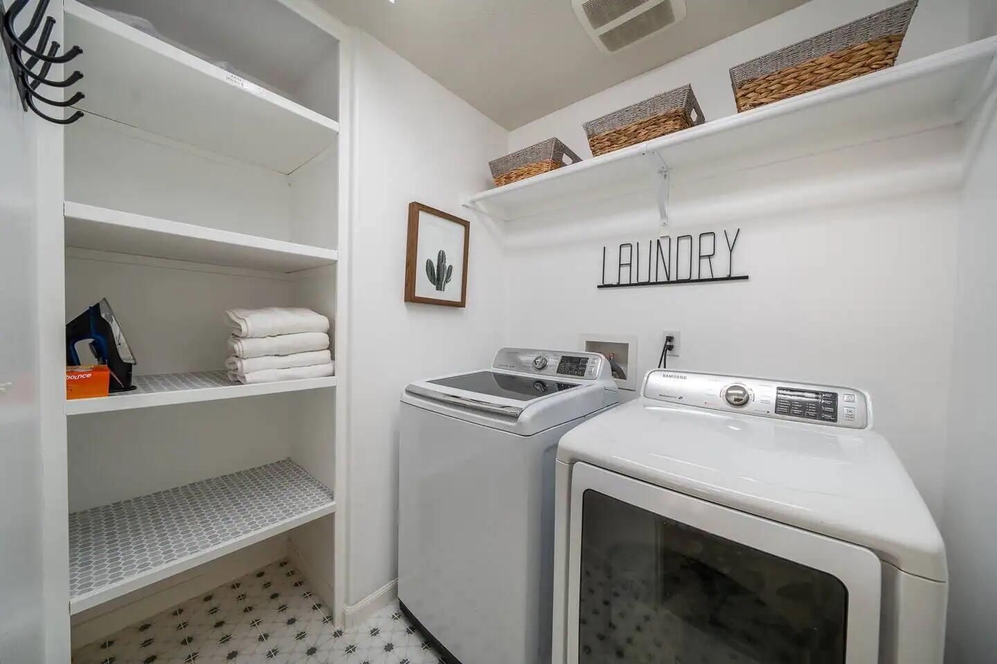 - Dishwasher, Disposal, Dryer, Exhaust Fan, Gas Cooktop, Gas Oven, Microwave Oven, Refrigerator, Washer