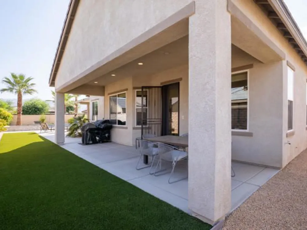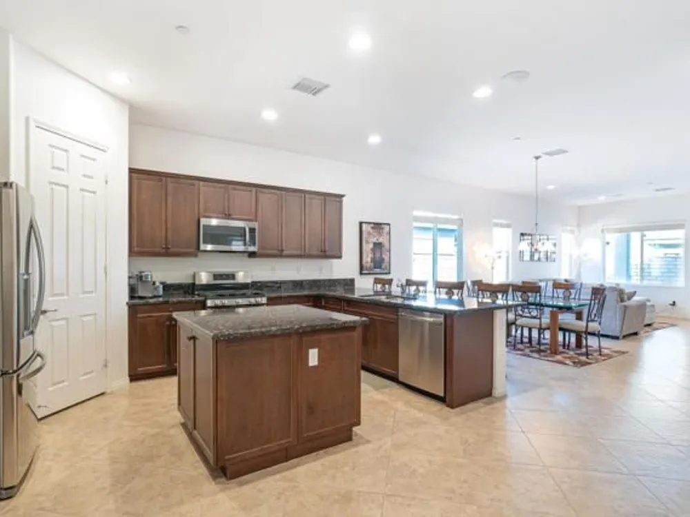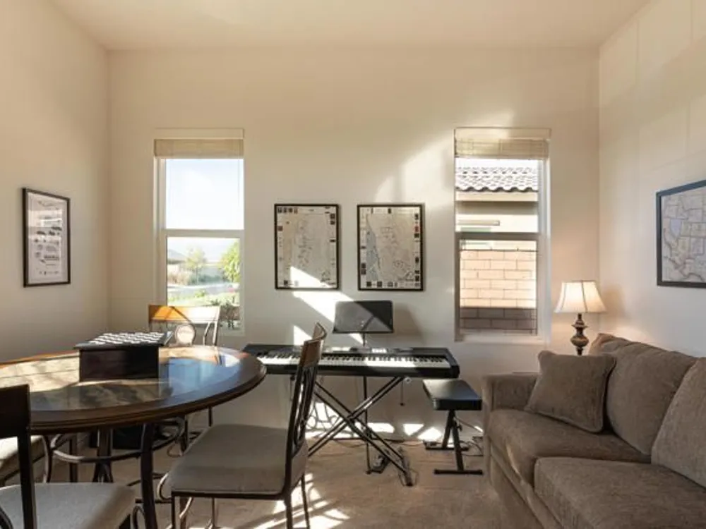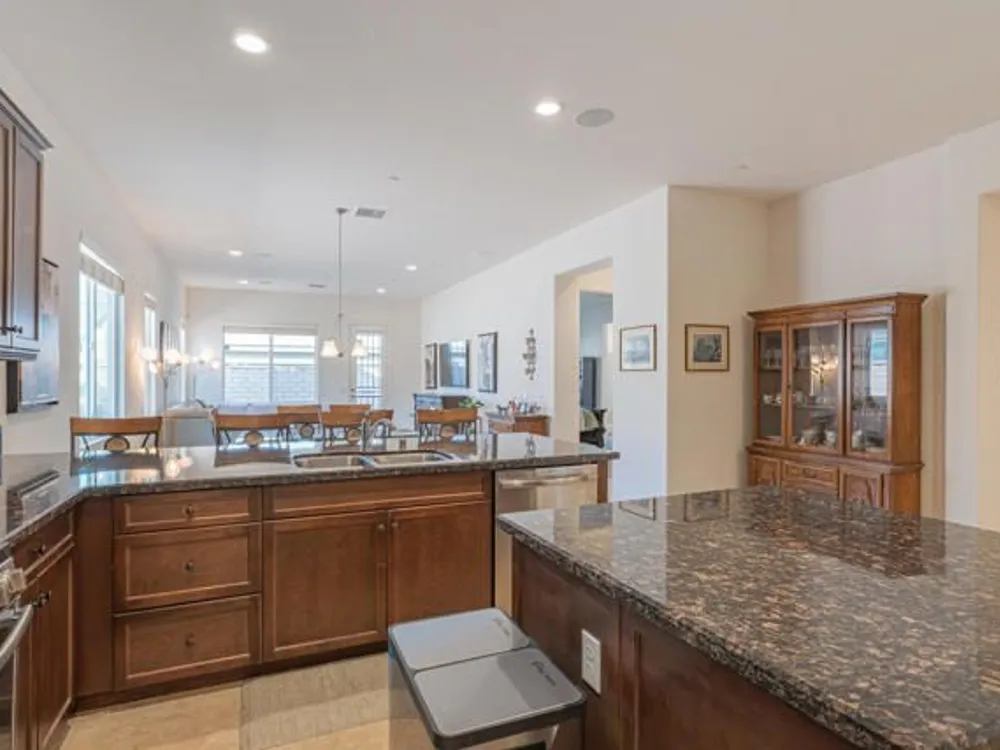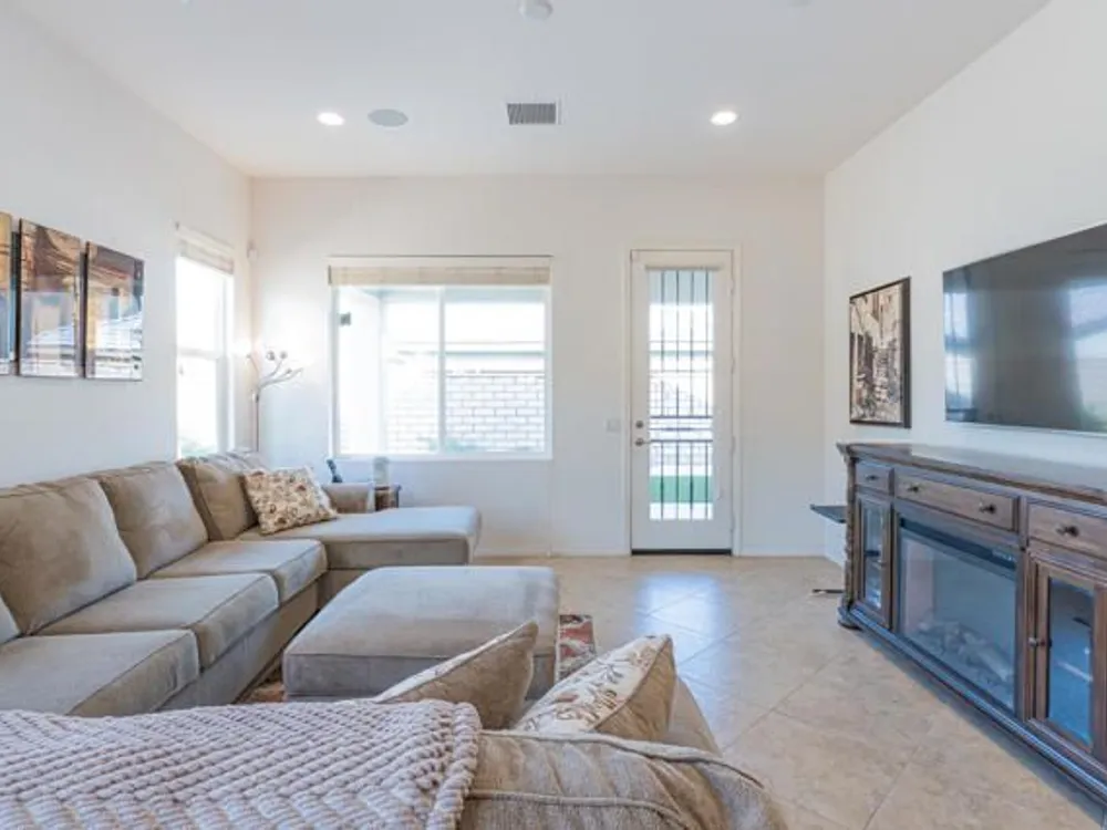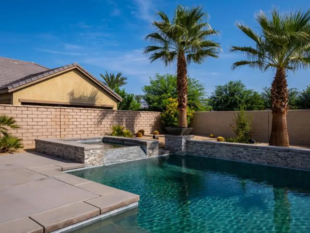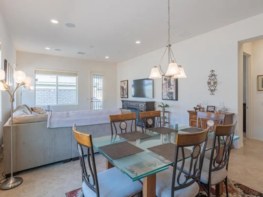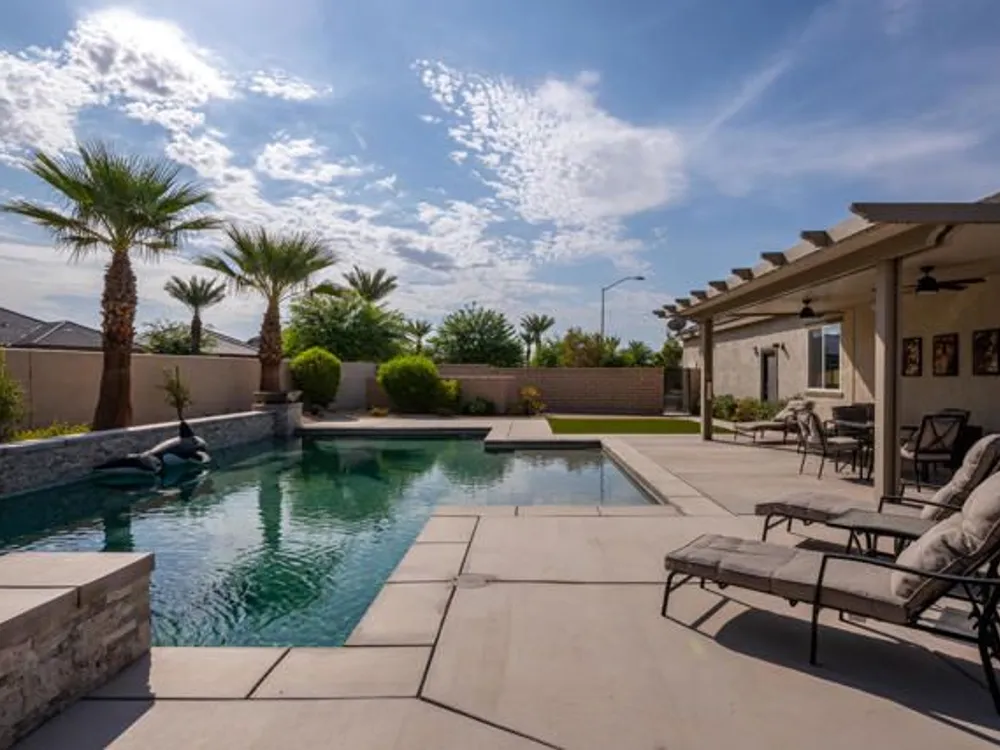 Welcome to 42897 Cusino Ct, a stunning desert retreat tucked at the end of a quiet cul-de-sac on an oversized 12,000 sq. ft. lot in a desirable 55+ community. This spacious home offers two living rooms and a versatile flex space that can serve as a bedroom, office, or hobby room. The kitchen is designed with both style and function in mind, featuring granite countertops, a central island with bar seating, and an open flow to the dining and living areas--ideal for entertaining. The primary suite is a private retreat with a walk-in closet, double vanity, soaking tub, and walk-in shower. Outdoor living is unmatched with two covered patios, custom misting systems, turf landscaping, and a resort-style custom pool with overflow spa, all framed by sweeping north and west-facing views that capture the desert sky and sunsets. A convenient laundry room with utility sink completes the home, which is offered fully furnished and move-in ready for your next desert chapter.