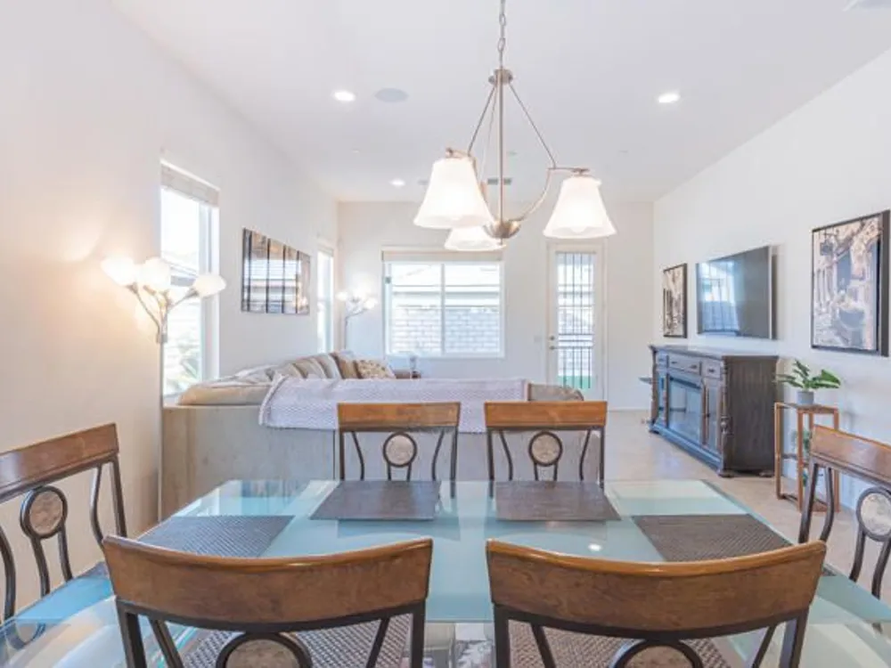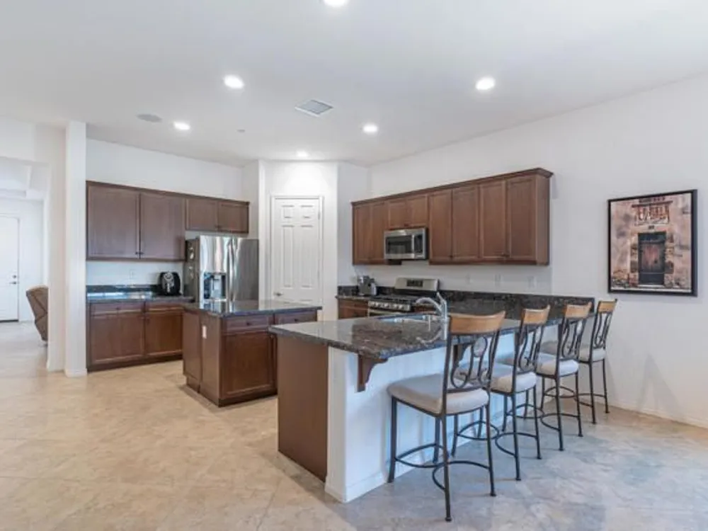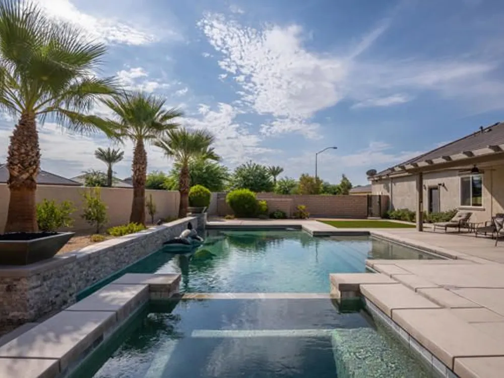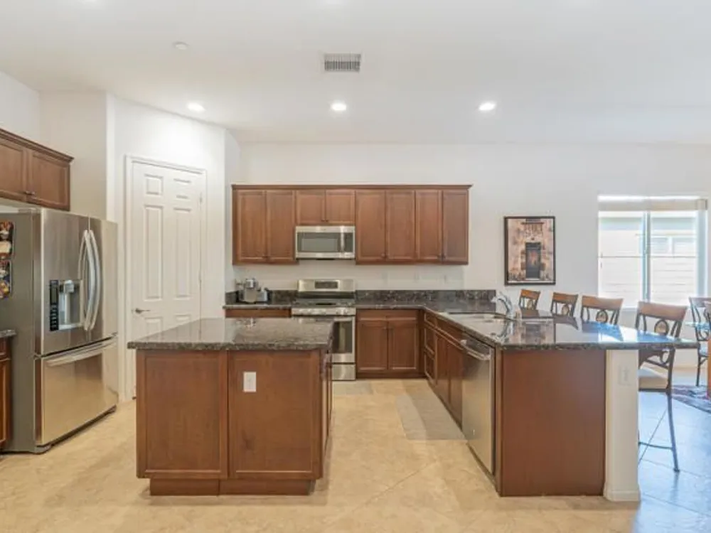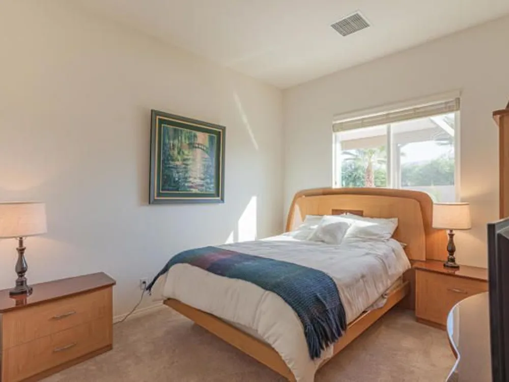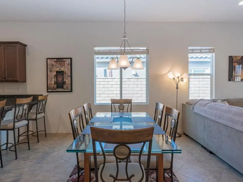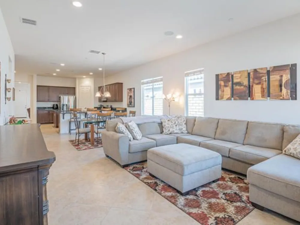 Welcome to 42897 Cusino Ct, a stunning desert retreat tucked at the end of a quiet cul-de-sac on an oversized 12,000 sq. ft. lot in a desirable 55+ community. This spacious home offers two living rooms and a versatile flex space that can serve as a bedroom, office, or hobby room. The kitchen is designed with both style and function in mind, featuring granite countertops, a central island with bar seating, and an open flow to the dining and living areas--ideal for entertaining. The primary suite is a private retreat with a walk-in closet, double vanity, soaking tub, and walk-in shower. Outdoor living is unmatched with two covered patios, custom misting systems, turf landscaping, and a resort-style custom pool with overflow spa, all framed by sweeping north and west-facing views that capture the desert sky and sunsets. A convenient laundry room with utility sink completes the home, which is offered fully furnished and move-in ready for your next desert chapter.