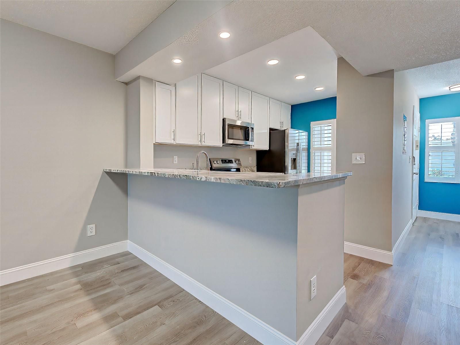 One or more photo(s) has been virtually staged. REDUCED TO SELL STUNNING, REMODELED CONDO WITH GOLF & WATER VIEWS IN THE PLANTATION GOLF & COUNTRY CLUB MAINTENANCE FREE! WORRY FREE! Your Association fee includes maintenance on the building (from the drywall out), exterior insurance including wind, maintenance on the grounds, a maintained community pool with clubhouse, pest control, reserves for capital expenditures, sewer, trash, water. ******************************************************************************************************************** Step into luxury with this beautifully remodeled condo, featuring top-to-bottom updates and modern design. Every detail has been carefully selected to create a stylish and functional living space. Plus, enjoy peace of mind knowing that the roof, all kitchen appliaces, A/C, water heater and washer/dryer were replaced in 2024/2025. The brand-new kitchen is a chef’s dream, with stainless steel appliances, granite countertops, custom cabinetry, and a unique coffee bar with elegant glass shelving—perfect for your morning routine. Waterproof luxury vinyl flooring flows throughout the home, providing both durability and contemporary style. Both bathrooms have been renovated, featuring granite countertops, contemporary fixtures, and designer finishes that add a spa-like feel. The primary suite offers a one-of-a-kind walk-through closet, outfitted with custom shelving and a built-in shoe rack, as well as an ensuite bathroom and direct access to the Florida room, creating a private retreat. The second bedroom features sliding glass doors leading to a charming garden patio, perfect for enjoying a quiet moment outdoors. For those who love indoor-outdoor living, this condo also offers a spacious Florida room and a private patio, where you can relax and take in the breathtaking golf course and water views. Whether you're enjoying your morning coffee or unwinding in the evening, this space is perfect for soaking in the beauty of your surroundings. Move-in ready and designed for comfort, this exceptional condo is a must-see. Schedule a private showing today and experience modern elegance at its best!