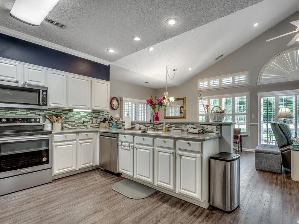 This turnkey 4-bedroom, 3-bath home overlooks Eastport golf course in the desirable Rivergate community, a 55+ community located in Little River. The home features a spacious garage, a first-floor primary suite(full bath, walk-in closet), and 2 additional downstairs bedrooms and bath, plus a bonus room/fourth bedroom with a full bath upstairs. The open-concept kitchen flows seamlessly into the dining area and living room, which boasts vaulted ceilings for an airy feel, gas fireplace,..... Rivergate is conveniently located off Highway 17, offering easy access to all that the quaint, fishing village of Little River has to offer. Walk out you back door to the golf course or take a 10 minute ride to the sandy shores of the Atlantic ocean. The community provides a pool, exterior maintenance, pest control, trash removal, cable/internet and lawn care, making for easy, low-maintenance living. A fantastic price for a home of this size(over 2,200 square feet), location and condition? Don't miss out