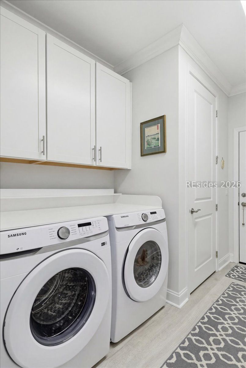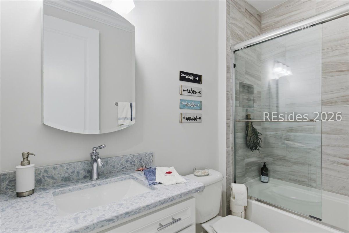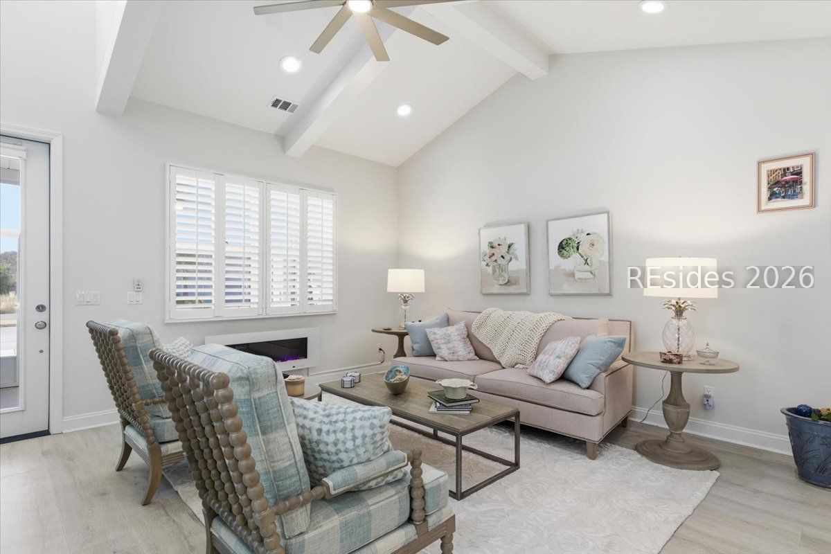 Perfectly positioned and beautifully upgraded, this Camellia Cottage stands apart in Latitude Margaritaville Hilton Head. The home faces the street with open green space, not another cottage, creating a more spacious, private feel rarely found. Inside, enjoy quartz countertops, upgraded cabinetry with pull-out drawers, enhanced trim, designer ceiling details, and upgraded appliances, plus an instant hot water heater at the kitchen sink. Upgraded LVP flooring flows through the main living areas with tile baths and no carpet anywhere. A whole-house water filtration system adds comfort. Located in a completed section of the community, with no construction traffic and close to amenities, this turnkey, move-in-ready home also features a screened lanai and epoxy floor coatings in the garage and on the porch.