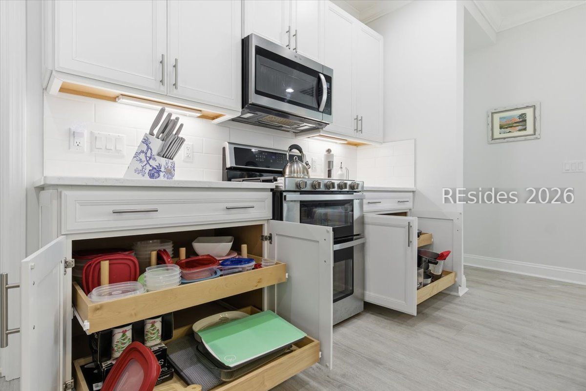 - Dryer, Dishwasher, Disposal, Gas Range, Microwave, Refrigerator, Washer, Tankless Water Heater, Water Purifier