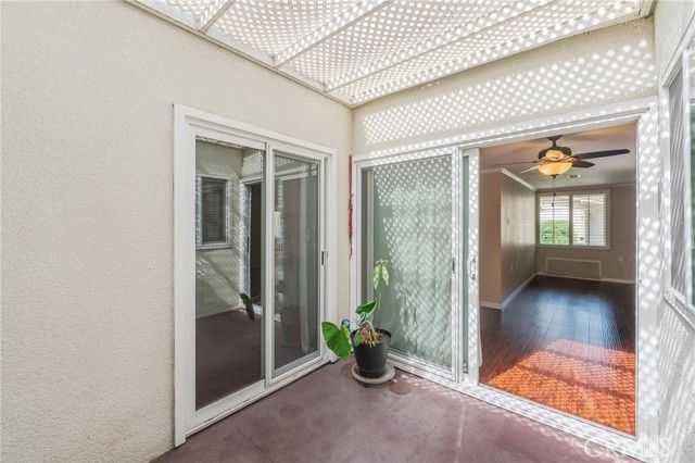 Welcome to your opportunity to create a stunning, turn-key home in the vibrant, resort-like community of Laguna Woods Village. This highly desirable Madrid Model home has been upgraded, offering a perfect blend of comfort, style, and a prime location. Key Features: 2 Bedrooms, 1 Bathroom: Smart, functional layout offering privacy and convenience. Upgraded Kitchen: The kitchen is a chef's delight, featuring sleek granite countertops, stainless steel appliances (full-size electric oven/range, refrigerator, dishwasher, and microwave), and custom cabinetry with thoughtful built-ins and a classic farmhouse style sink. Modern Comfort: Enjoy year-round perfect temperatures with Central AC and Heat. Premium Finishes: Stunning, durable engineered wood style plank floors flow throughout the main living areas. Corwn Moulding, The bathroom boasts an upgraded vanity, mirror, modern tile flooring, and a skylight for abundant natural light. Enhanced Security & Efficiency: The home features double-pane windows fitted with classic shutters for light control and energy efficiency. The entrance is secured by two Wood doors and an invisible screen door. Private Outdoor Living: Step out to a fully fenced, large front patio, with two Security Screen Doors appx 327 Square Feet. This is perfect for private relaxation or entertaining. The space also includes a convenient inside storage room accessible from the patio. Unique Atrium Space: An enclosed inside atrium room provides a tranquil, sun-drenched bonus area, ideal for relaxing, growing plants or just a beautiful creative space. Don't forget the incredible resort-style amenities of Laguna Woods Village, featuring seven clubhouses, multiple pools, three golf courses, fitness centers, tennis, bocce, pickleball, arts/pottery studios, an equestrian center, RV parking, and many, many clubs. This Madrid model is the low-maintenance, high-style home you’ve been waiting for!