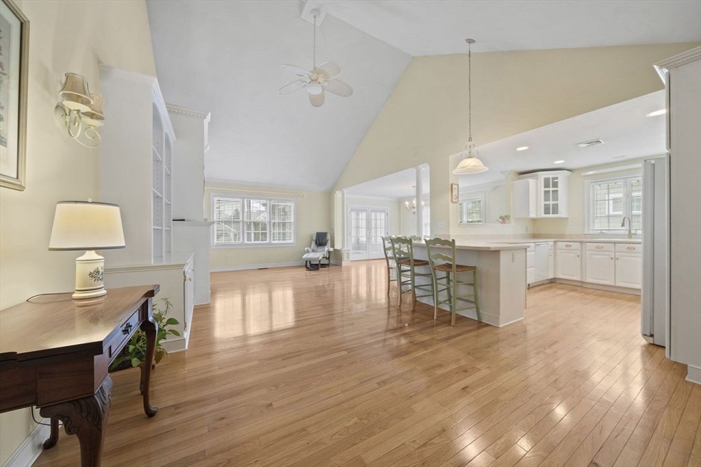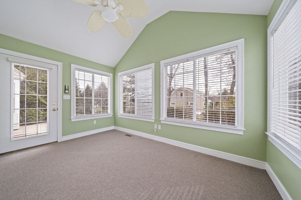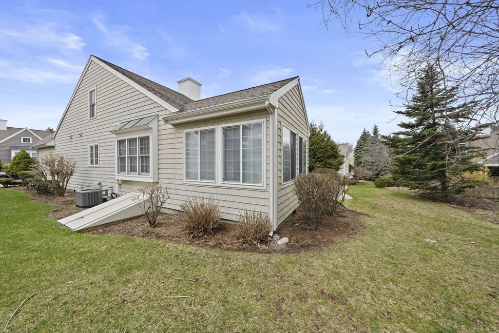 Welcome to the sought-after Villages of Weathervane, a vibrant 55+ community offering comfort, convenience, and an exceptional lifestyle. This beautifully maintained standalone home features an inviting open floor plan filled with natural light. The living room showcases custom built-ins and a gas fireplace, seamlessly flowing into the dining area and kitchen. Enjoy year-round relaxation in the four-season sunroom overlooking a private backyard, with direct access to a patio complete with a motorized awning—ideal for outdoor dining or quiet moments. The home offers two spacious bedrooms and two full baths, including a primary suite with generous his-and-hers closets. First-floor laundry adds to the ease of single-level living. Large lower level offers living area expansion possibilities. Residents enjoy access to a 9-hole golf course and a welcoming clubhouse featuring a tavern with both indoor and outdoor seating. More than just a neighborhood, this is a lifestyle.