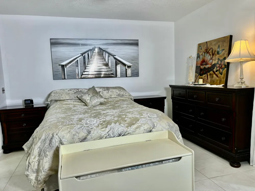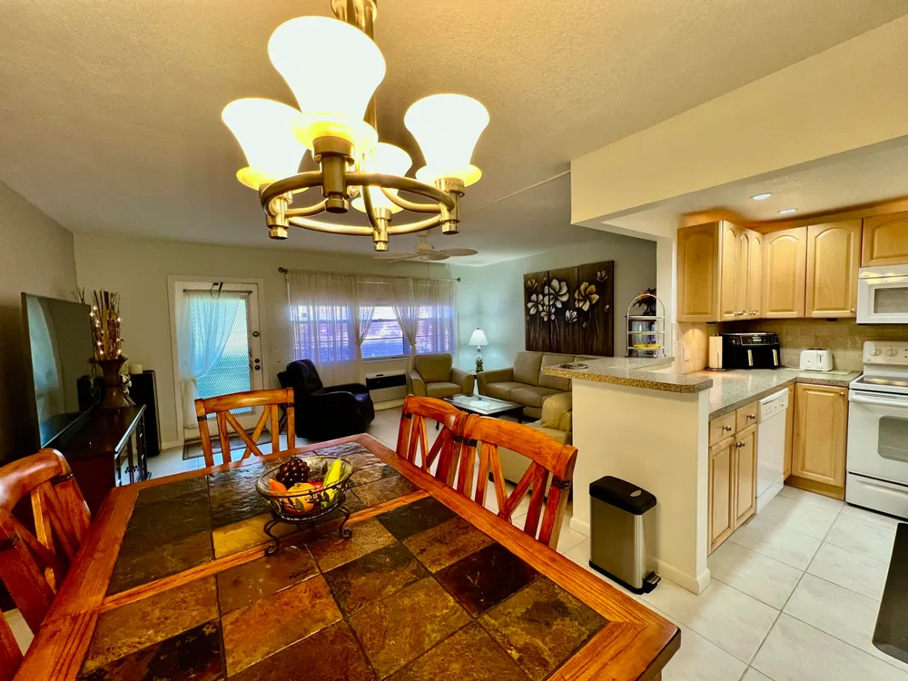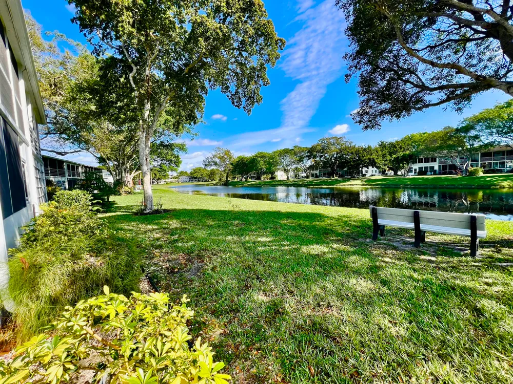 RARE FIRST-FLOOR & WATER VIEW. Experience modern comfort in this remodeled first-floor garden condo at Century Village East. This 1-bedroom, 1.5-bath unit offers a beautiful water view with a private bench by the lake and direct access to a tranquil back patio. Fully furnished and turn-key, it's rental-ready with recent updates, including a newer refrigerator and microwave (2 years old) and a new electric panel for added peace of mind.Schedule your showing today!