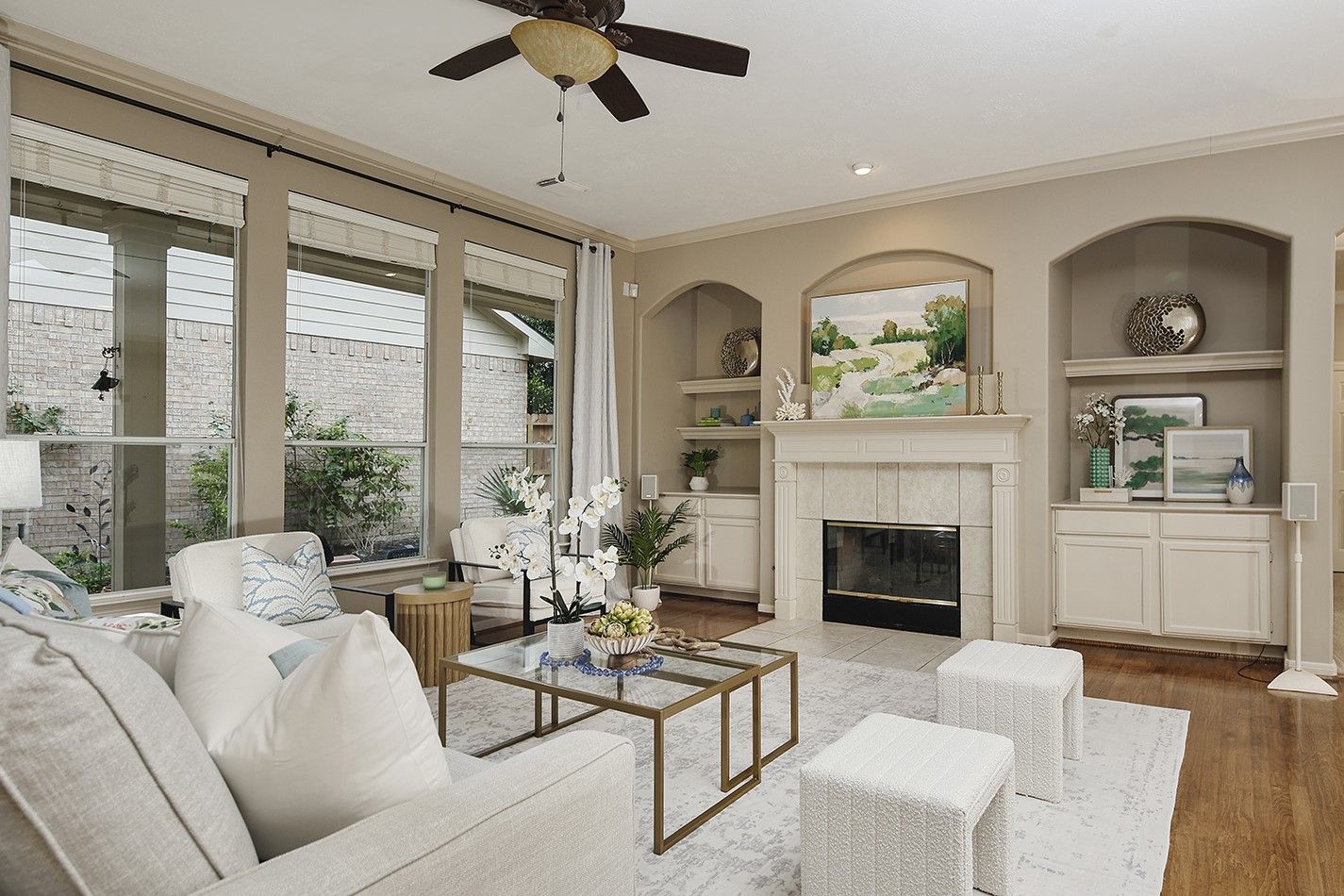 Motivated Seller..Welcome to the 55+neighborhood of Windsor Hills! Located in the master planned community of The Woodlands! This home has been meticulously cared for & it shows! Neutral colors throughout! Wood flooring in living area, study, kitchen, breakfast, & dining room! Carpet in 3 bedrooms! Wall of windows in living area! Kitchen is open to the living area w/breakfast bar. Great for entertaining! Stainless appliances too! Fireplace w/gas logs! Built-ins in living area also! Study has French doors that overlook the front yard! 5 Ton A/C is 9 years old... Roof is 12 years old. Low main. backyard. Dues cover Sprinkler repair, Ext. House Painting, Fence Replacement, Front Door Staining & more. Clubhouse amenities include: Fitness Room, Library, Pool, Hot Spa, Bocce Ball & much more. Other fun includes Bridge, Dominoes, Poker, Wii Bowling, Zumba, Water Aerobics, Chair Yoga, Mahjongg, Ping Pong & Low Impact Aerobics to name a few. Near Hospitals..99 & Hardy Toll Rd
