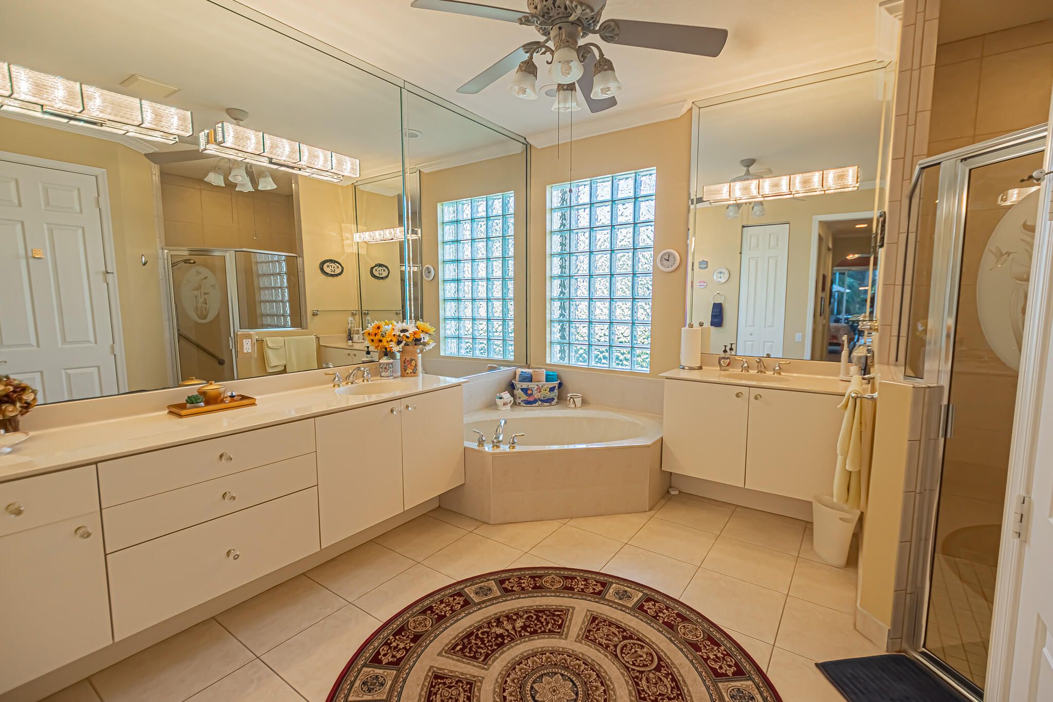 - Entry Level Living Area, Entrance Foyer, Pantry, Pull Down Attic Stairs, Garden Tub/Roman Tub, Split Bedrooms, High Ceilings, Walk-In Closet(s), Family Room, Breakfast Area, Separate/Formal Dining Room, Snack Bar, Blinds, Plantation Shutters, Sliding Window(s), Window Vertical(s), Dual Sinks, Primary Downstairs, Sitting Area In Primary Bedroom, Separate Shower, Bathtub, Storm Shutters, Washer/Dryer Hookup