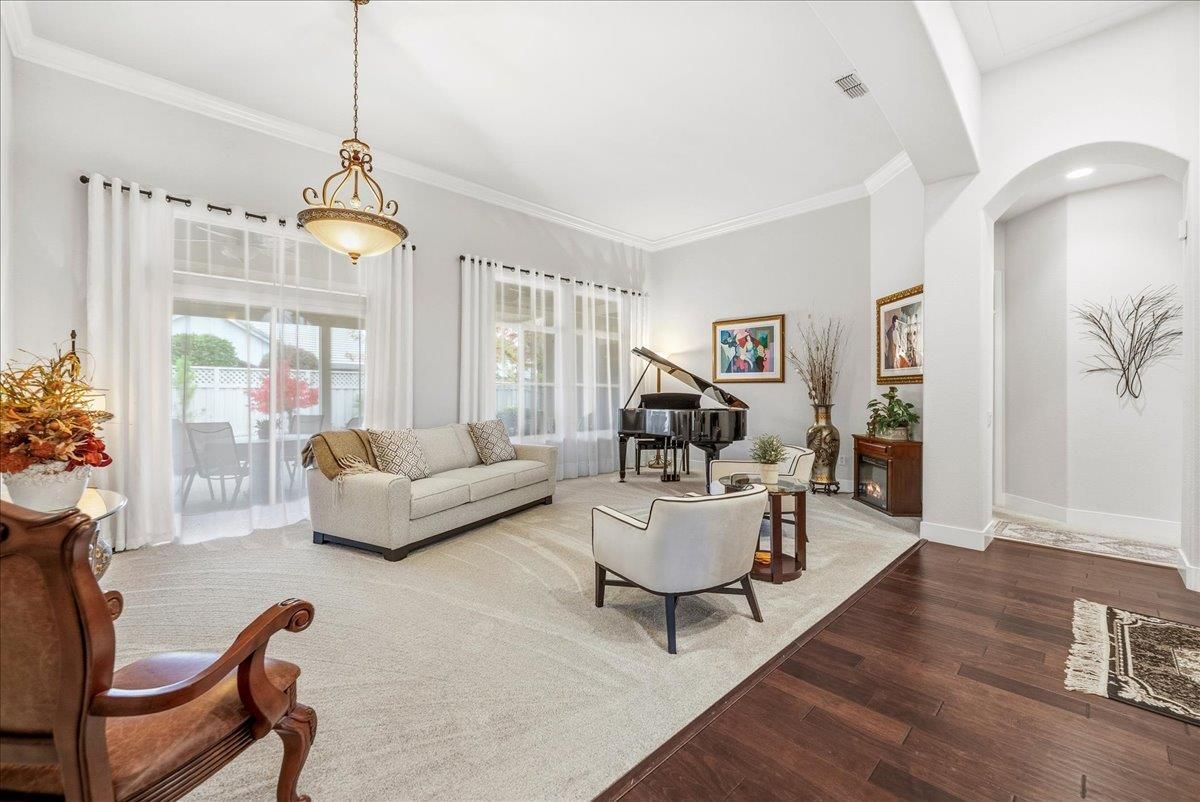 Discover the highly desired Delta Breeze Model in Sun City Roseville's premier 55+ community. This 2 bedroom plus den, 2.5-bath home features formal living and dining areas, a well-appointed kitchen that was updated in 2019 with granite countertops, under-cabinet lighting, newer SS appliances that include double ovens, gas range top and a microwave. The kitchen flows into a comfortable family room with a gas fireplace faced with stone and views of the serene backyard. The spacious primary suite includes a bay window, backyard access, dual vanities, a soaking tub, shower and a walk-in closet. Throughout the home is engineered wood flooring in the main part of the house, carpet in the bedrooms, and porcelain tile in two of the baths. Other wonderful features include the indoor laundry room, a 2 car garage plus a cart garage. The backyard is North-facing and has a large covered patio for year-round enjoyment. Sun City is fortunate to have low HOA dues and no Mello-Roos fees. Come and enjoy the Sun City Lifestyle!
